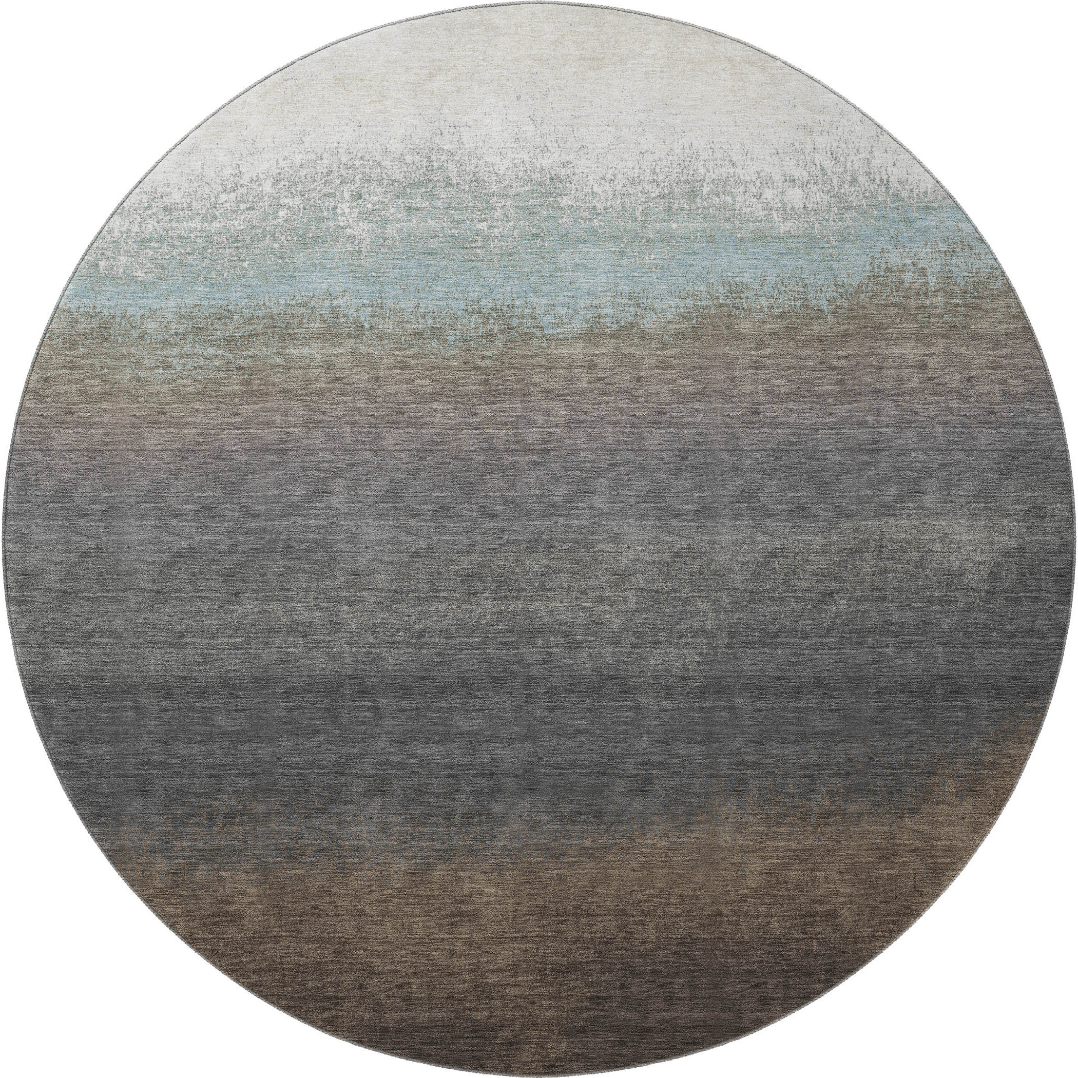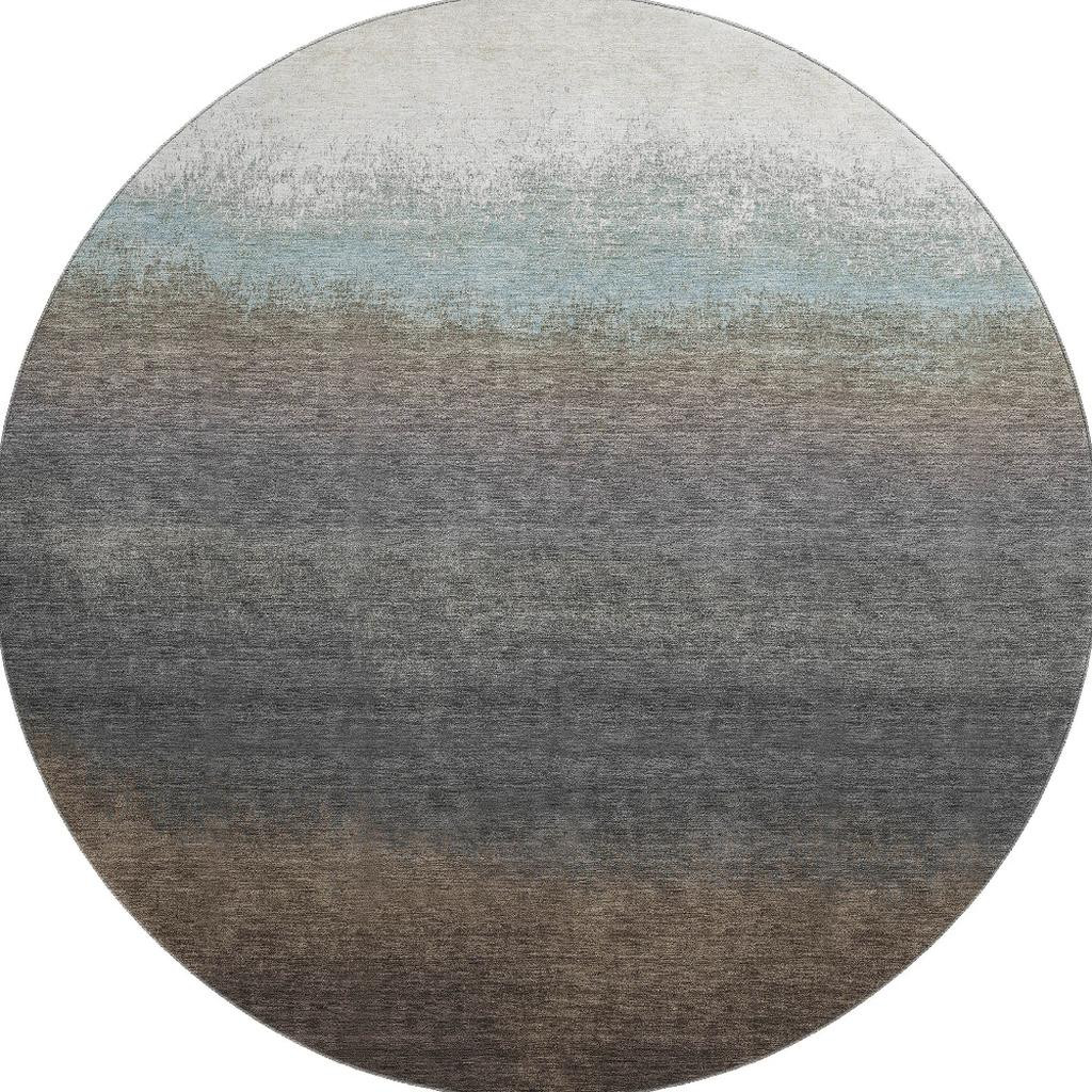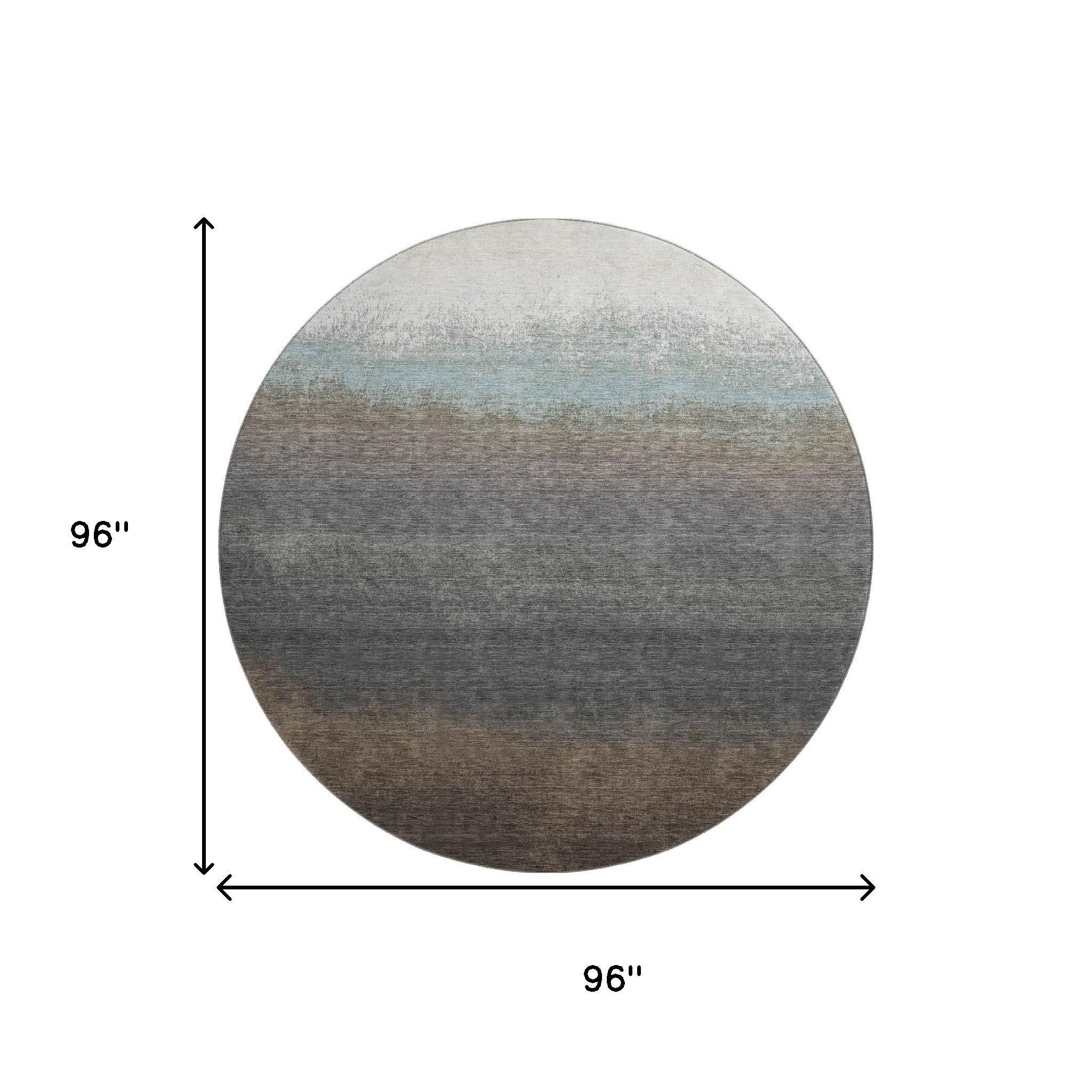 This 8-foot brown gray and silver ombre washable round rug with uv protection, is a great way to add warmth to a room. Ideal for spaces with kids and pets, this rug is stain resistant to help repel dirt and spilled liquids. Built to last, this rug crafted from polyester fibers is known for its durability and long lasting appeal. Rugs are a great way to showcase your style, hide imperfections, warm your home and reduce noise. This larger sized, transitional styled rug is ready to create a focal point or statement piece in your room. 96.00-inch h x 96.00-inch w x 0.39-inch d.