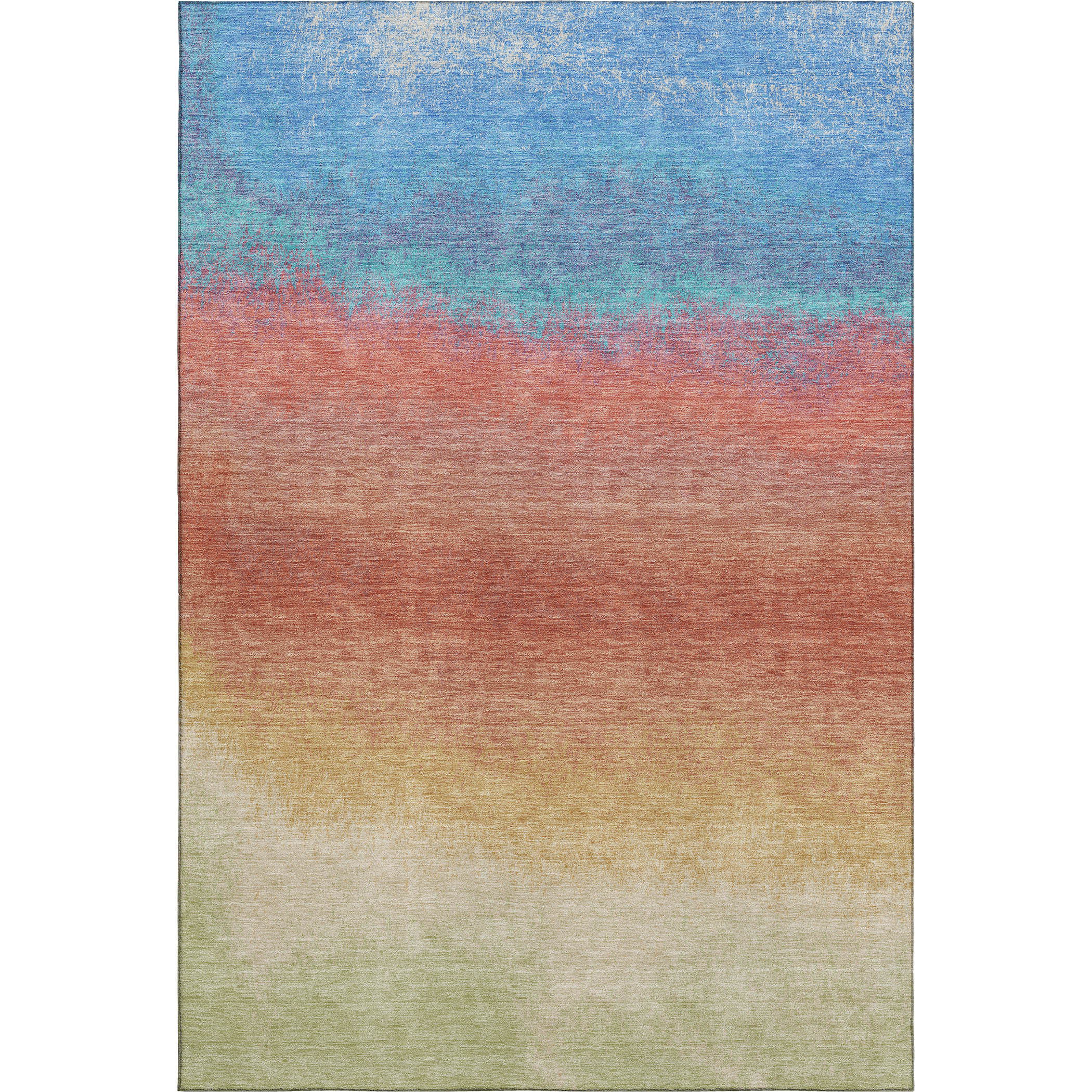 This 3-foot x 5-foot coral wheat and blue ombre washable area rug with uv protection, is a great way to add warmth to a room. Ideal for spaces with kids and pets, this rug is stain resistant to help repel dirt and spilled liquids. Built to last, this rug crafted from polyester fibers is known for its durability and long lasting appeal. Rugs are a great way to showcase your style, hide imperfections, warm your home and reduce noise. This smaller sized, transitional styled rug is just what you need for your walkway, bedside, in front of door, cabinet, refrigerator, or chair. 36.00-inch h x 60.00-inch w x 0.39-inch d.