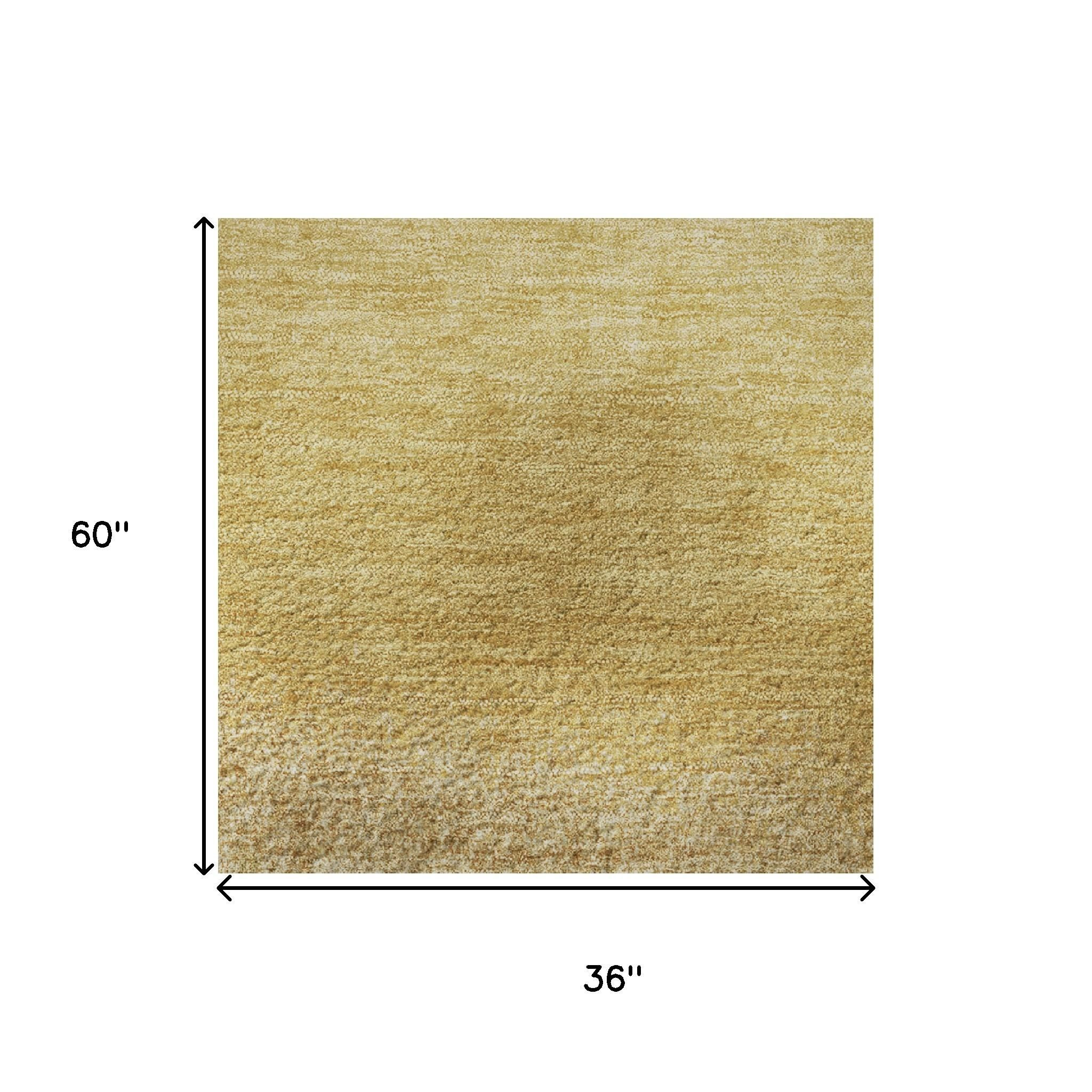 This 3-foot x 5-foot gold beige and wheat ombre washable area rug with uv protection, is a great way to add warmth to a room. Ideal for spaces with kids and pets, this rug is stain resistant to help repel dirt and spilled liquids. Built to last, this rug crafted from polyester fibers is known for its durability and long lasting appeal. Rugs are a great way to showcase your style, hide imperfections, warm your home and reduce noise. This smaller sized, transitional styled rug is just what you need for your walkway, bedside, in front of door, cabinet, refrigerator, or chair. 36.00-inch h x 60.00-inch w x 0.39-inch d.