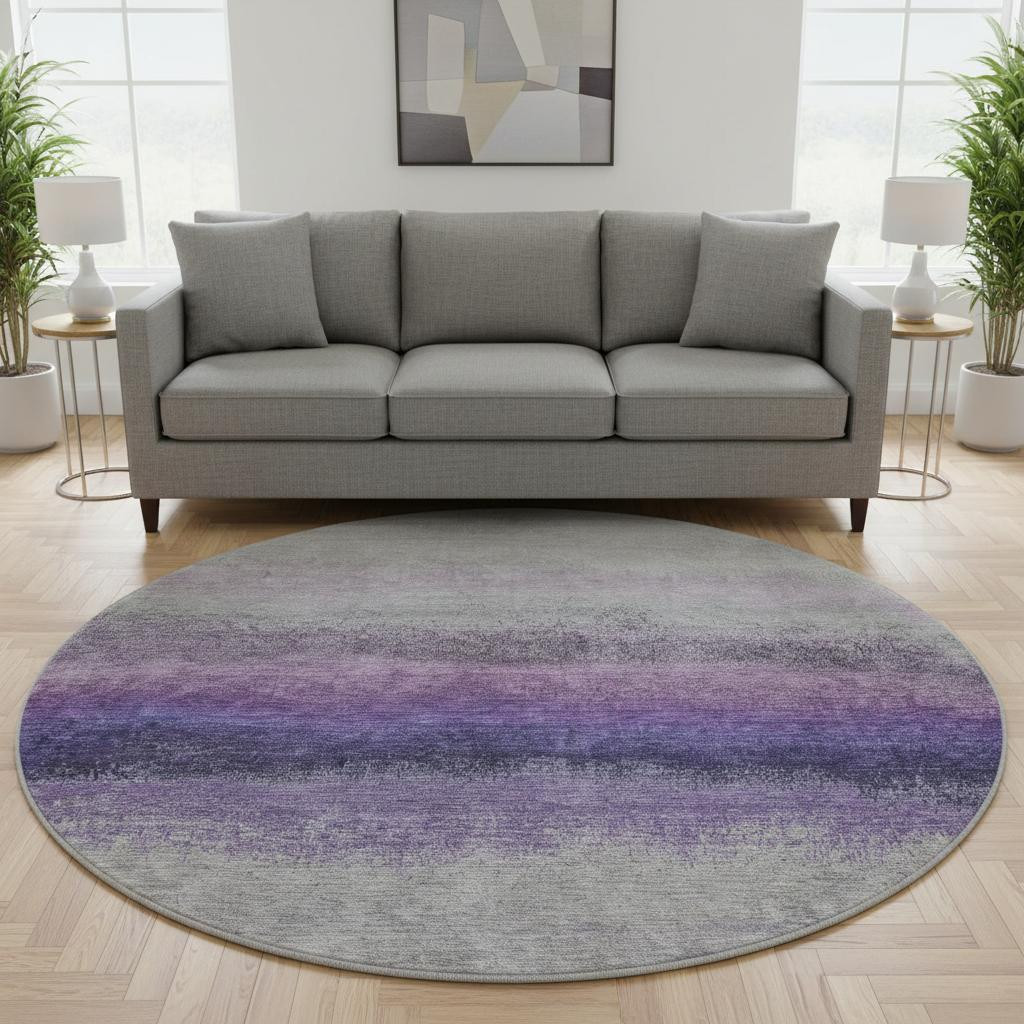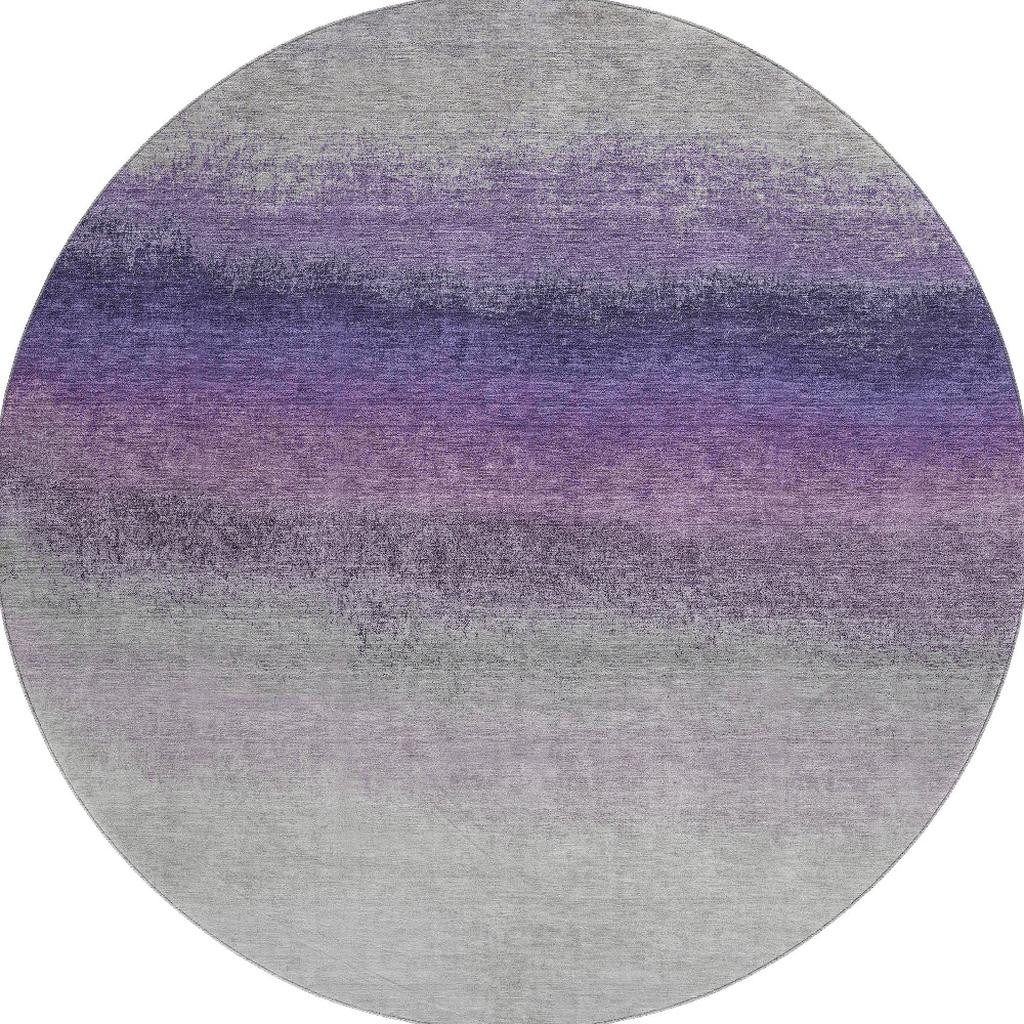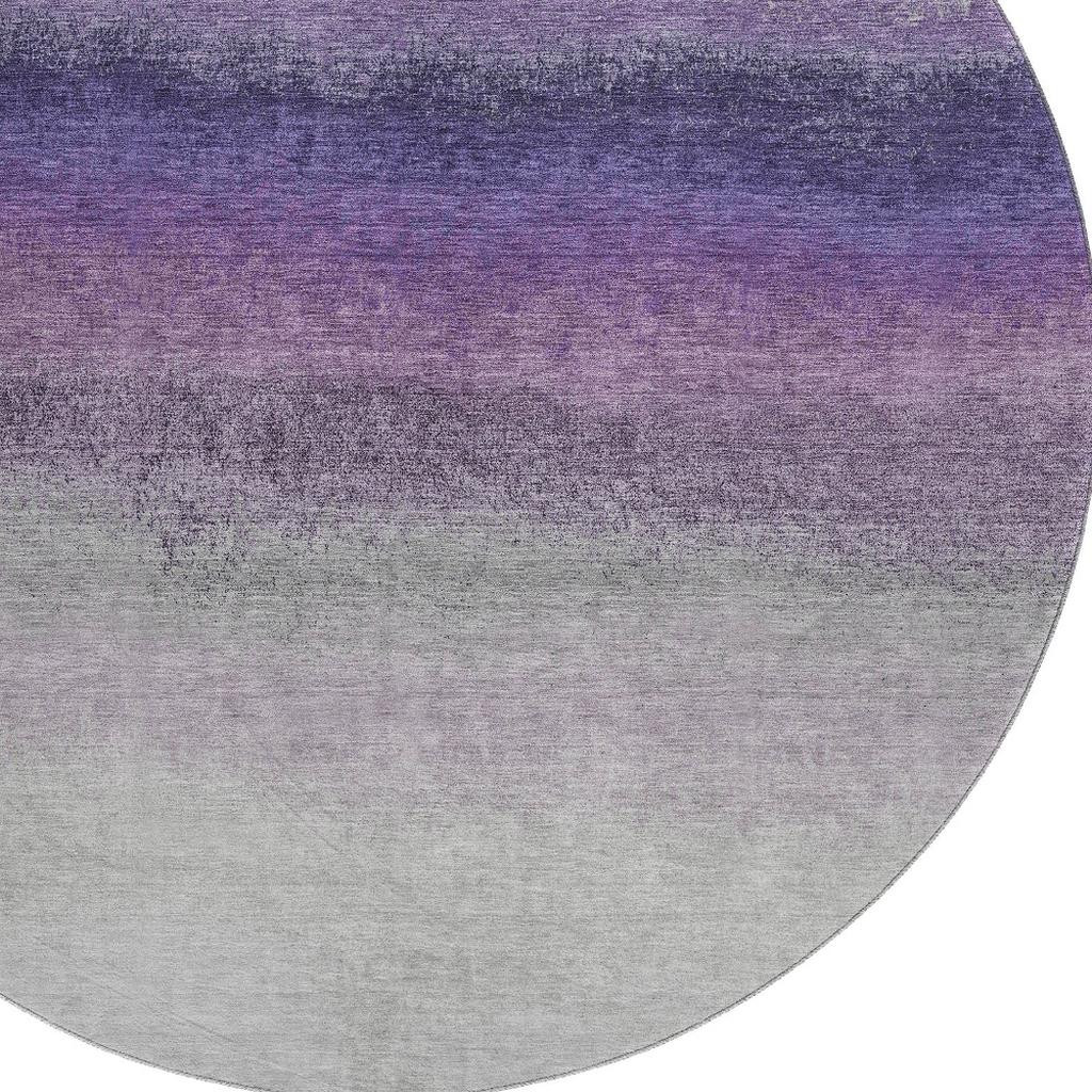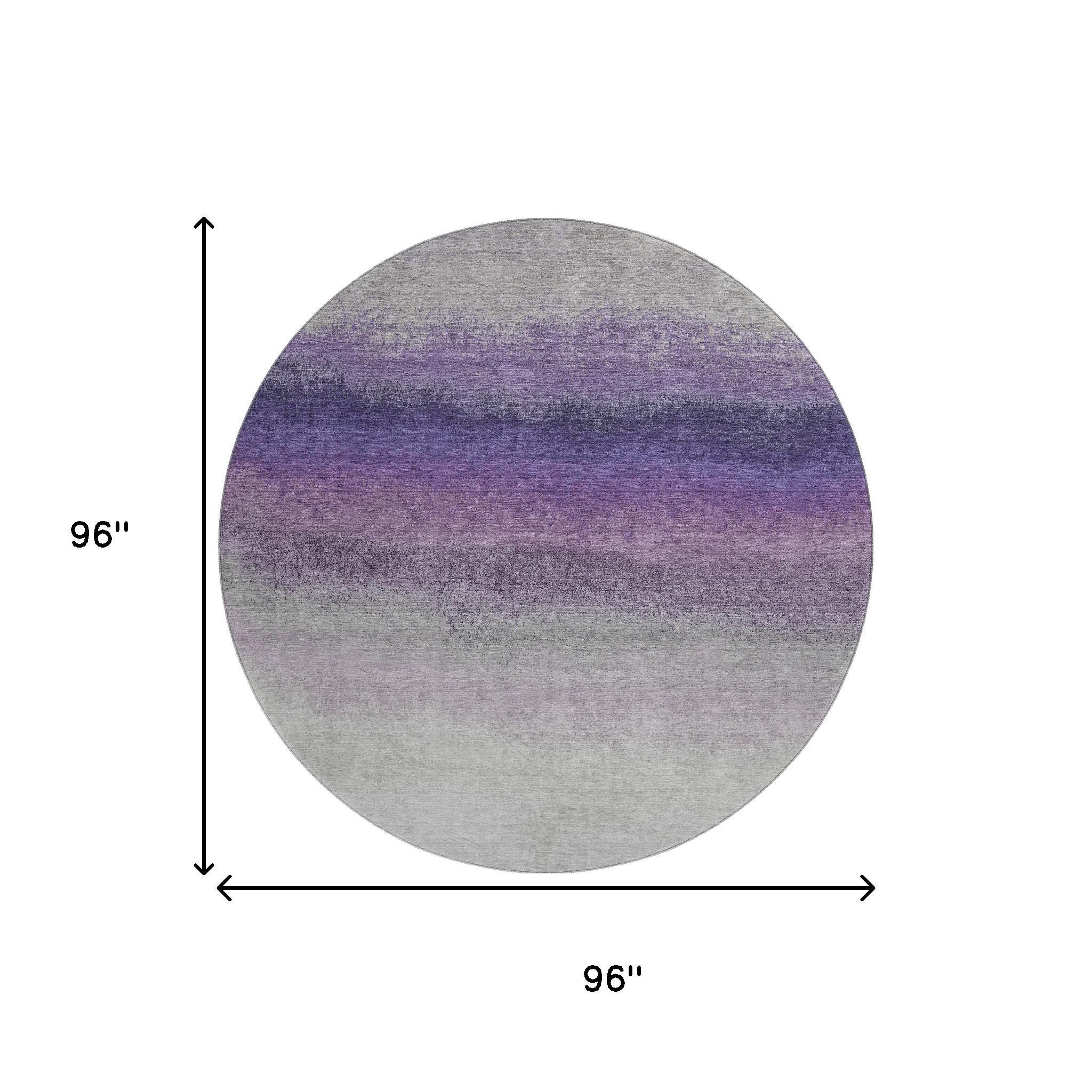 This 8-foot lavender gray and silver ombre washable round rug with uv protection, is a great way to add warmth to a room. Ideal for spaces with kids and pets, this rug is stain resistant to help repel dirt and spilled liquids. Built to last, this rug crafted from polyester fibers is known for its durability and long lasting appeal. Rugs are a great way to showcase your style, hide imperfections, warm your home and reduce noise. This larger sized, transitional styled rug is ready to create a focal point or statement piece in your room. 96.00-inch h x 96.00-inch w x 0.39-inch d.