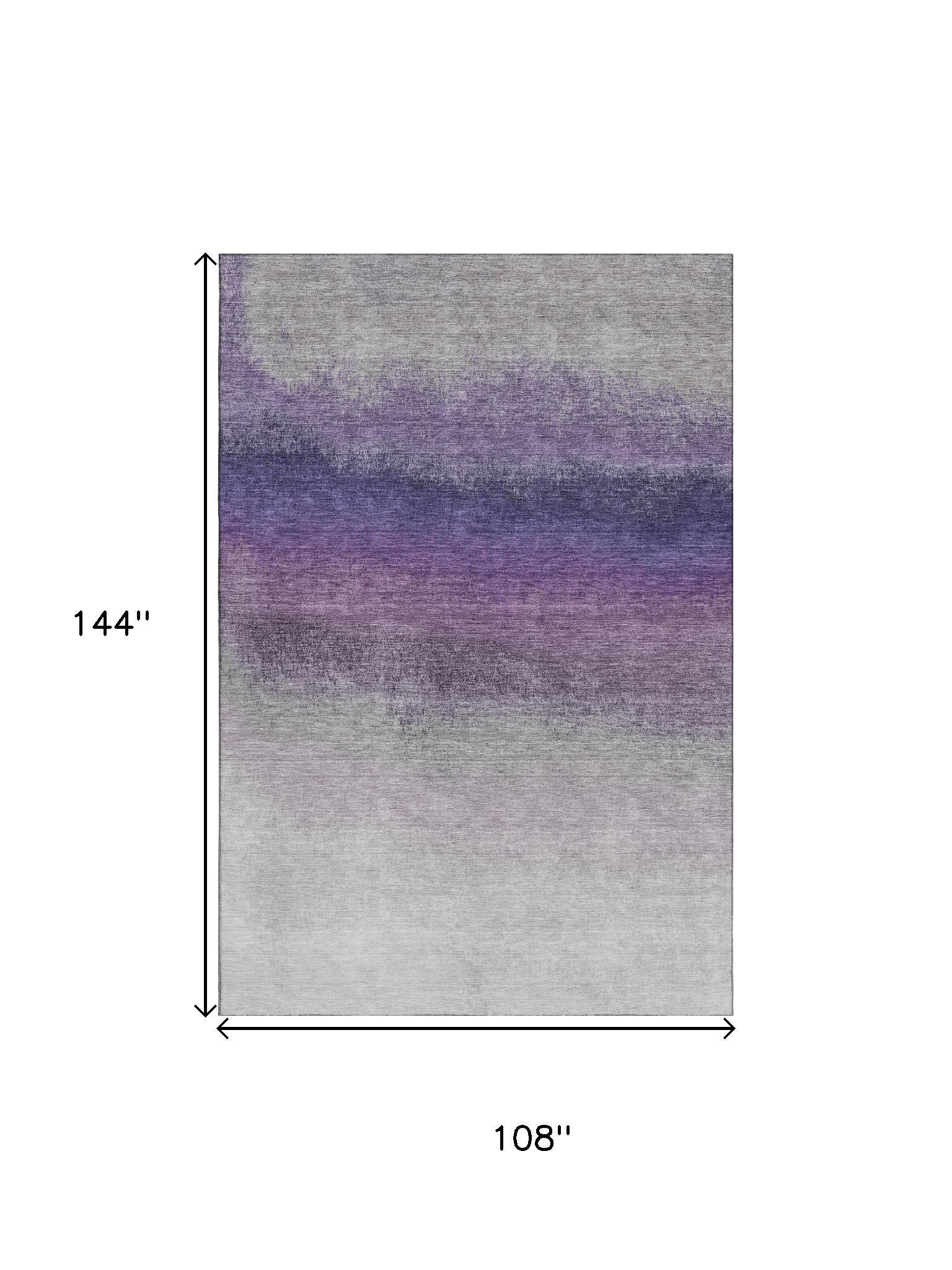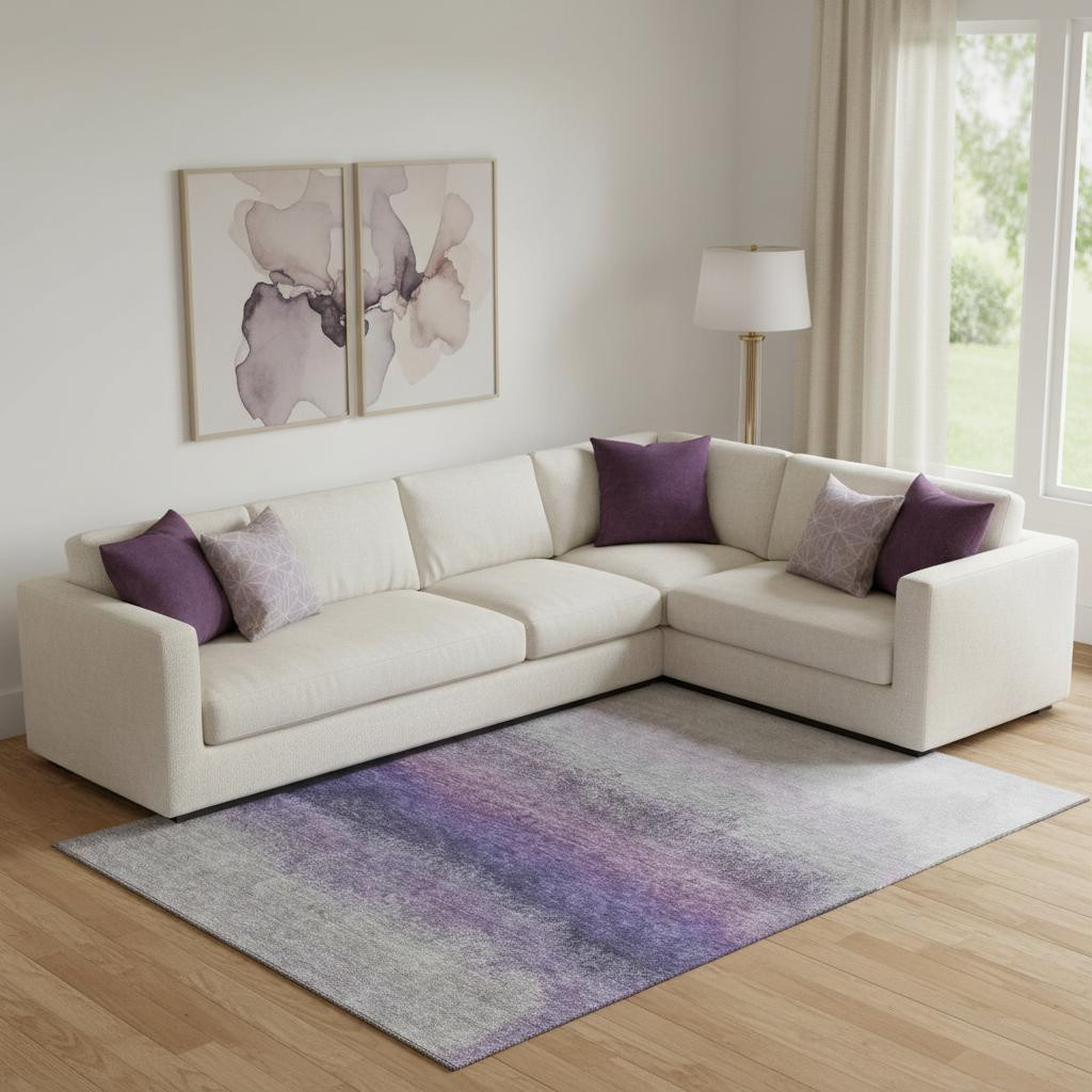 This 9-foot x 12-foot lavender gray and silver ombre washable area rug with uv protection, is a great way to add warmth to a room. Ideal for spaces with kids and pets, this rug is stain resistant to help repel dirt and spilled liquids. Built to last, this rug crafted from polyester fibers is known for its durability and long lasting appeal. Rugs are a great way to showcase your style, hide imperfections, warm your home and reduce noise. This larger sized, transitional styled rug is ready to create a focal point or statement piece in your room. 108.00-inch h x 144.00-inch w x 0.39-inch d.