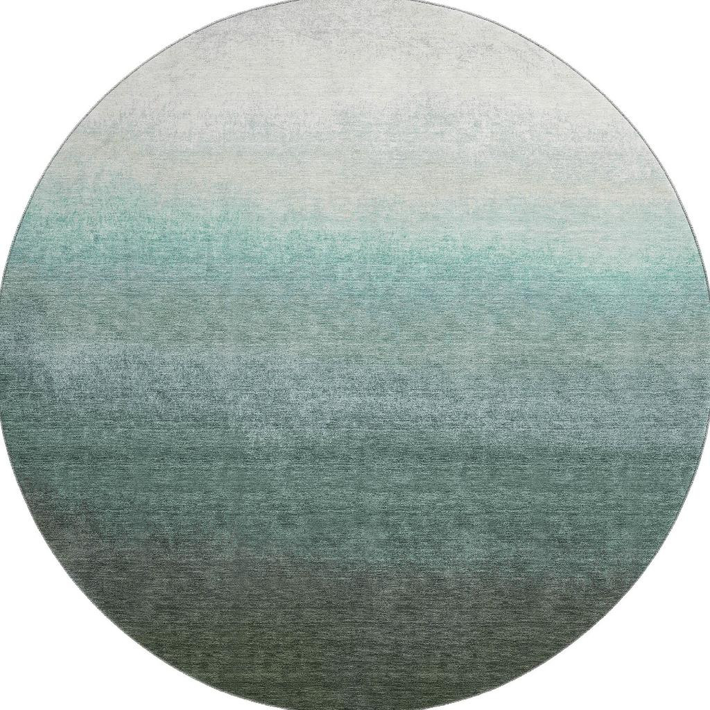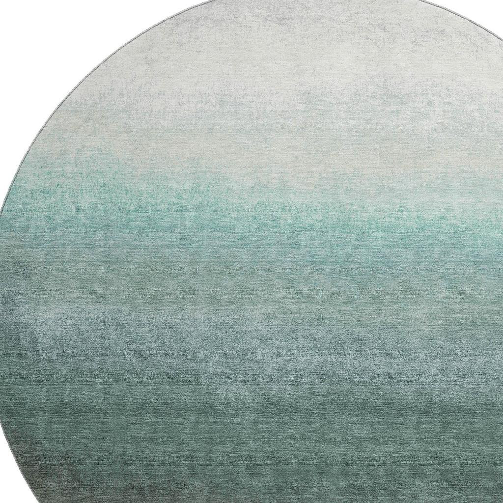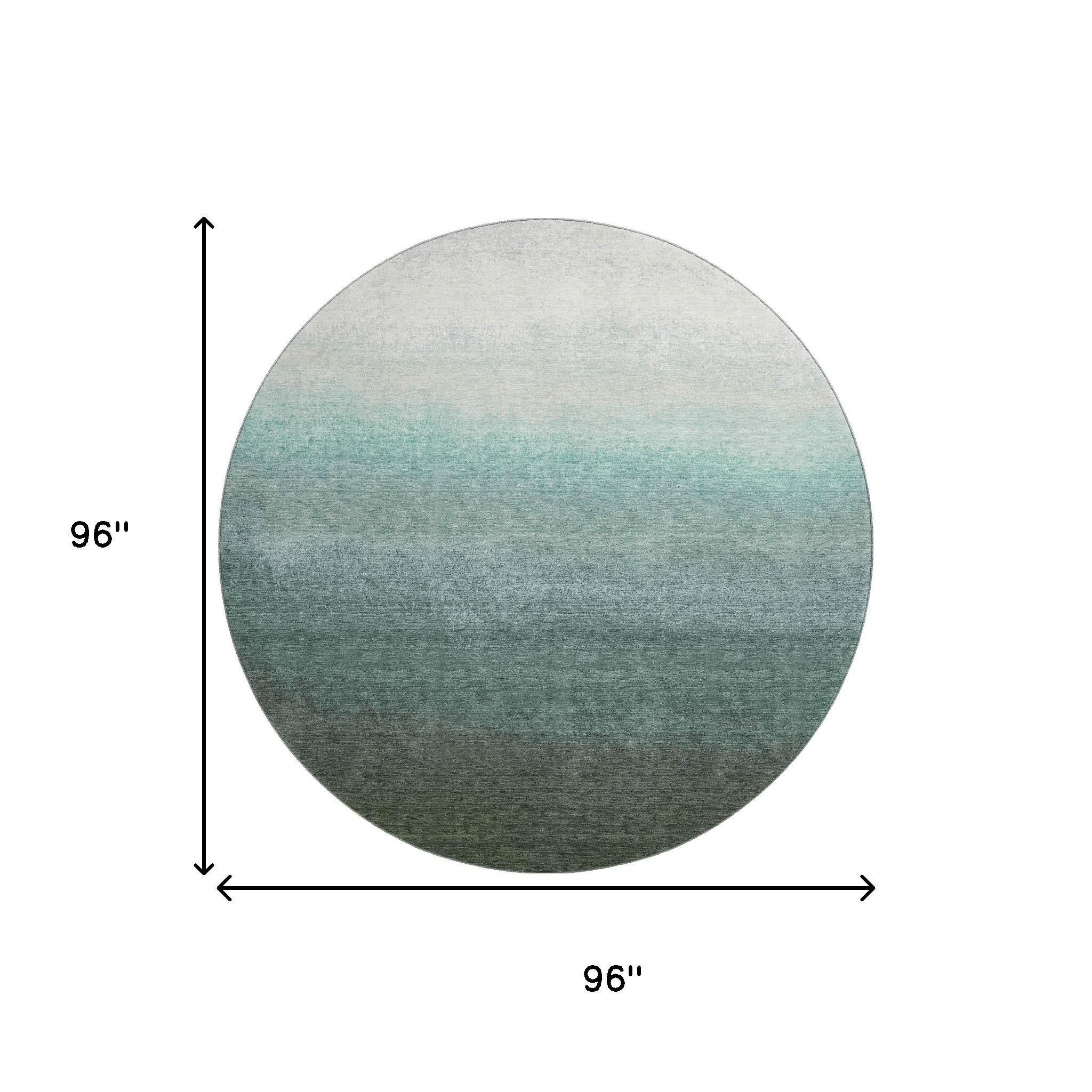 Set an inviting tone in your space with this 8-foot pale aqua gray and ivory ombre washable round rug with uv protection. Ideal for spaces with kids and pets, this rug is stain resistant to help repel dirt and spilled liquids. Built to last, this rug crafted from polyester fibers is known for its durability and long lasting appeal. Rugs are a great way to showcase your style, hide imperfections, warm your home and reduce noise. This larger sized, transitional styled rug is ready to create a focal point or statement piece in your room. 96.00-inch h x 96.00-inch w x 0.39-inch d.
