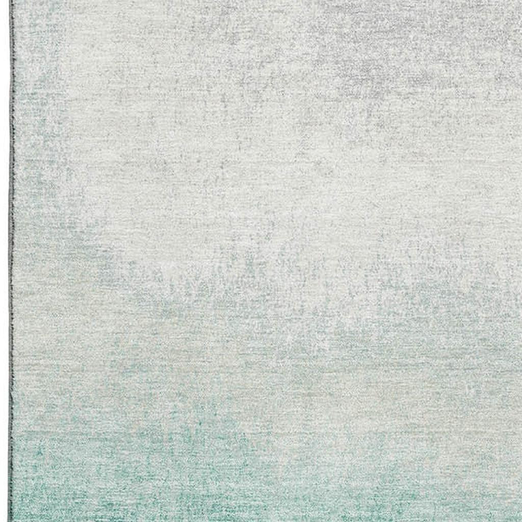 This 8-foot x 10-foot pale aqua gray and ivory ombre washable area rug with uv protection, is a great way to add warmth to a room. Ideal for spaces with kids and pets, this rug is stain resistant to help repel dirt and spilled liquids. Built to last, this rug crafted from polyester fibers is known for its durability and long lasting appeal. Rugs are a great way to showcase your style, hide imperfections, warm your home and reduce noise. This larger sized, transitional styled rug is ready to create a focal point or statement piece in your room. 96.00-inch h x 120.00-inch w x 0.39-inch d.