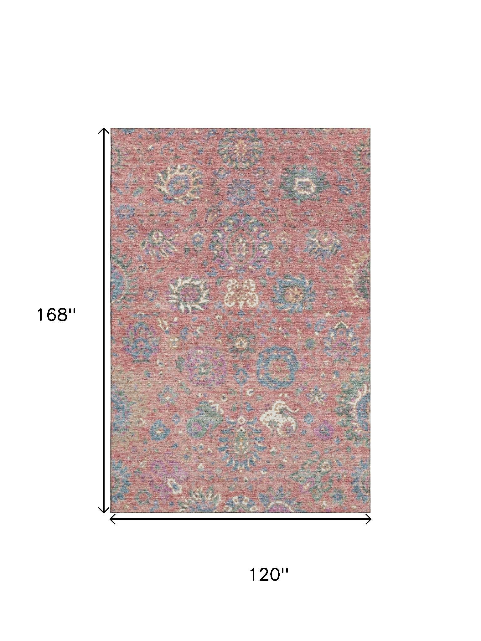 Add some artistry to your room with this 10-foot x 14-foot coral blue and ivory oriental washable area rug with uv protection. Ideal for spaces with kids and pets, this rug is stain resistant to help repel dirt and spilled liquids. Built to last, this rug crafted from polyester fibers is known for its durability and long lasting appeal. Rugs are a great way to showcase your style, hide imperfections, warm your home and reduce noise. This larger sized, traditional styled rug is ready to create a focal point or statement piece in your room. 120.00-inch h x 168.00-inch w x 0.39-inch d.