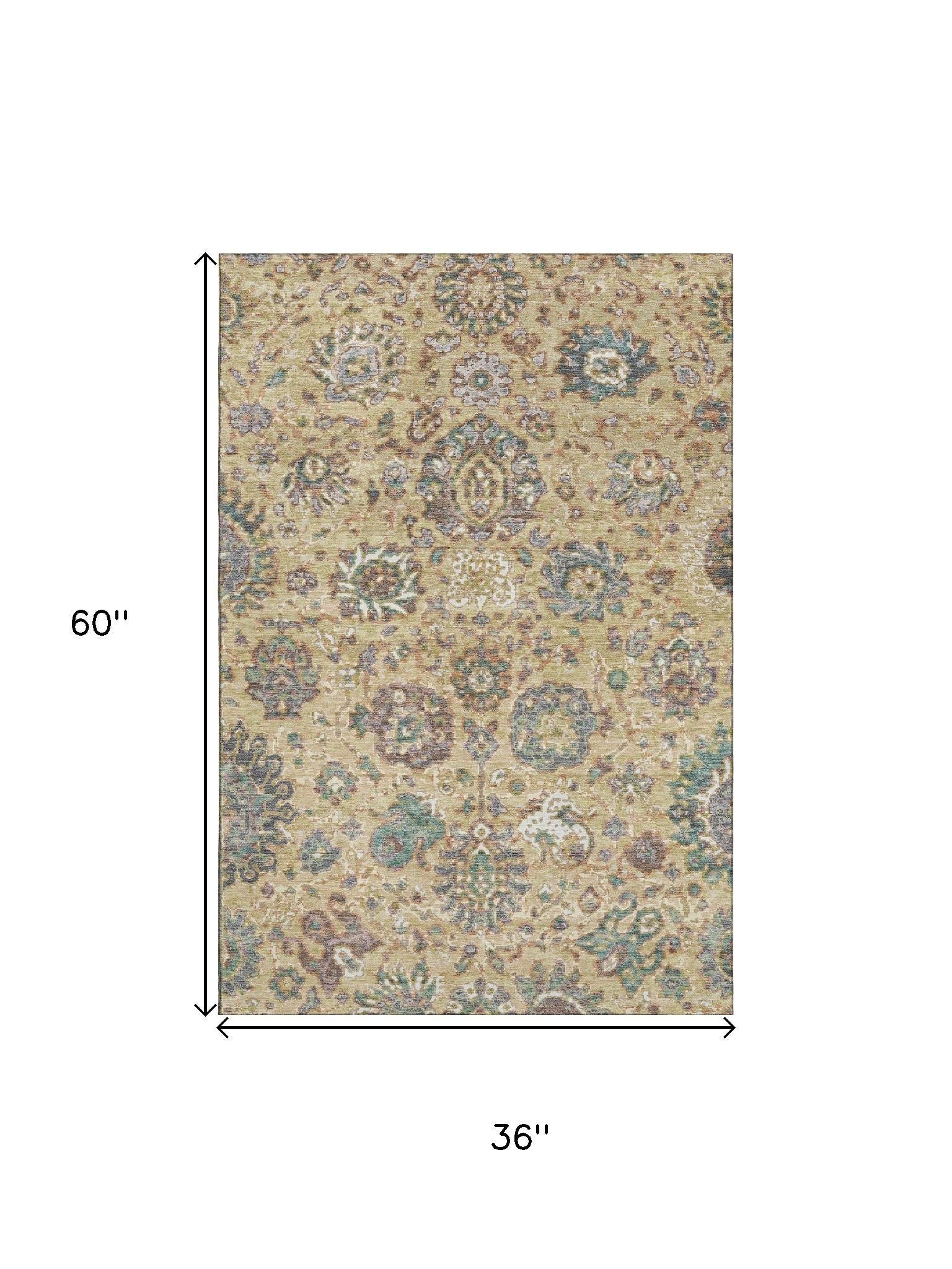 Set an inviting tone in your space with this 3-foot x 5-foot gold gray and ivory oriental washable area rug with uv protection. Ideal for spaces with kids and pets, this rug is stain resistant to help repel dirt and spilled liquids. Built to last, this rug crafted from polyester fibers is known for its durability and long lasting appeal. Rugs are a great way to showcase your style, hide imperfections, warm your home and reduce noise. This smaller sized, traditional styled rug is just what you need for your walkway, bedside, in front of door, cabinet, refrigerator, or chair. 36.00-inch h x 60.00-inch w x 0.39-inch d.