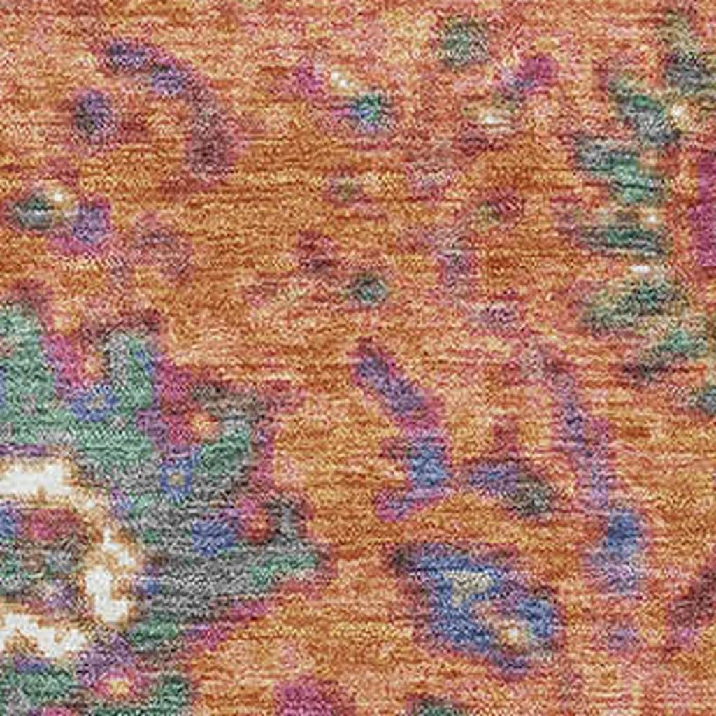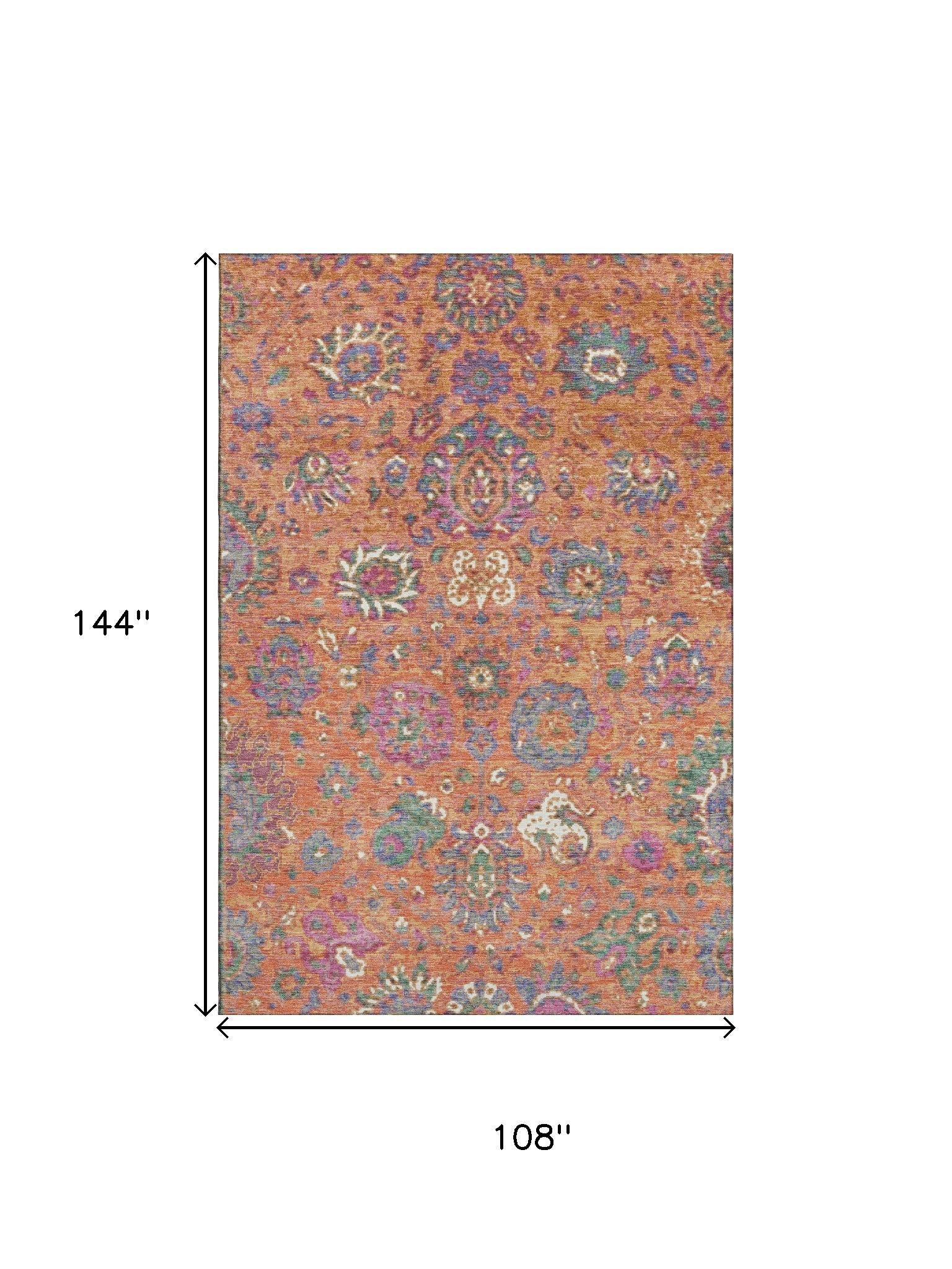 Set an inviting tone in your space with this 9-foot x 12-foot orange blue and pink oriental washable area rug with uv protection. Ideal for spaces with kids and pets, this rug is stain resistant to help repel dirt and spilled liquids. Built to last, this rug crafted from polyester fibers is known for its durability and long lasting appeal. Rugs are a great way to showcase your style, hide imperfections, warm your home and reduce noise. This larger sized, traditional styled rug is ready to create a focal point or statement piece in your room. 108.00-inch h x 144.00-inch w x 0.39-inch d.
