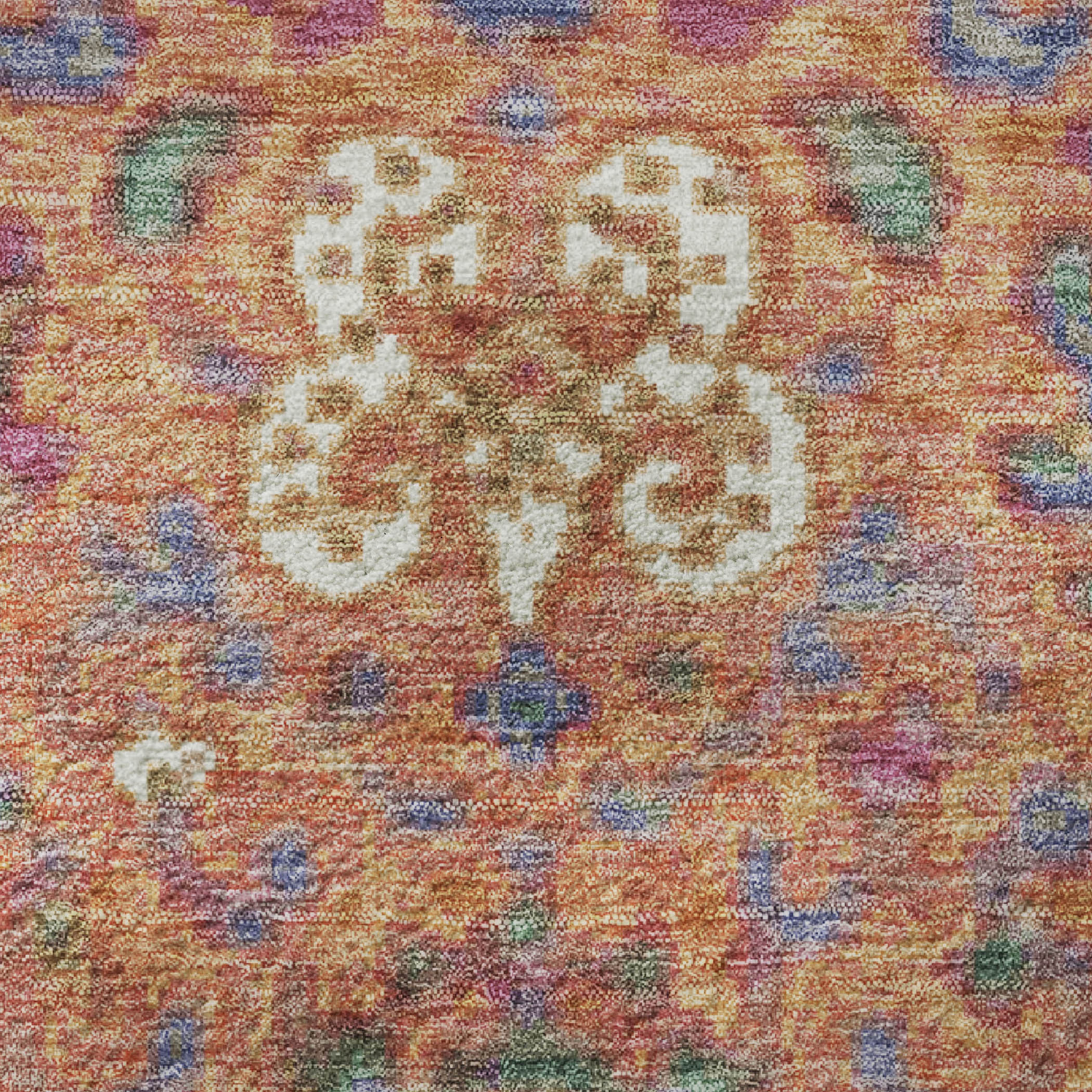Set an inviting tone in your space with this 10-foot x 14-foot orange blue and pink oriental washable area rug with uv protection. Ideal for spaces with kids and pets, this rug is stain resistant to help repel dirt and spilled liquids. Built to last, this rug crafted from polyester fibers is known for its durability and long lasting appeal. Rugs are a great way to showcase your style, hide imperfections, warm your home and reduce noise. This larger sized, traditional styled rug is ready to create a focal point or statement piece in your room. 120.00-inch h x 168.00-inch w x 0.39-inch d.