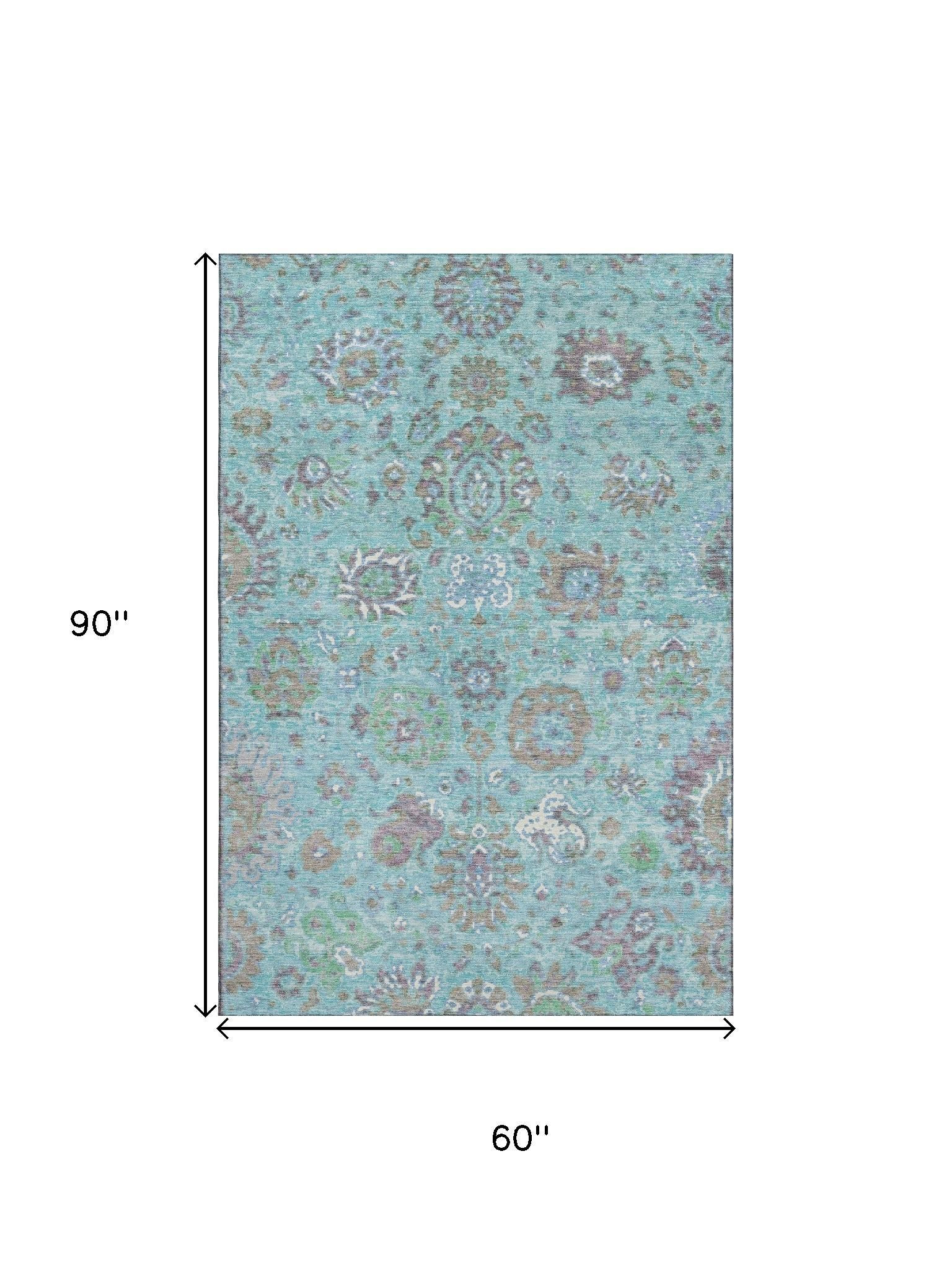 Add great coloration and comfortable texture to your space with this 5-foot x 8-foot teal gray and ivory oriental washable area rug with uv protection. Ideal for spaces with kids and pets, this rug is stain resistant to help repel dirt and spilled liquids. Built to last, this rug crafted from polyester fibers is known for its durability and long lasting appeal. Rugs are a great way to showcase your style, hide imperfections, warm your home and reduce noise. This larger sized, traditional styled rug is ready to create a focal point or statement piece in your room. 60.00-inch h x 90.00-inch w x 0.39-inch d.