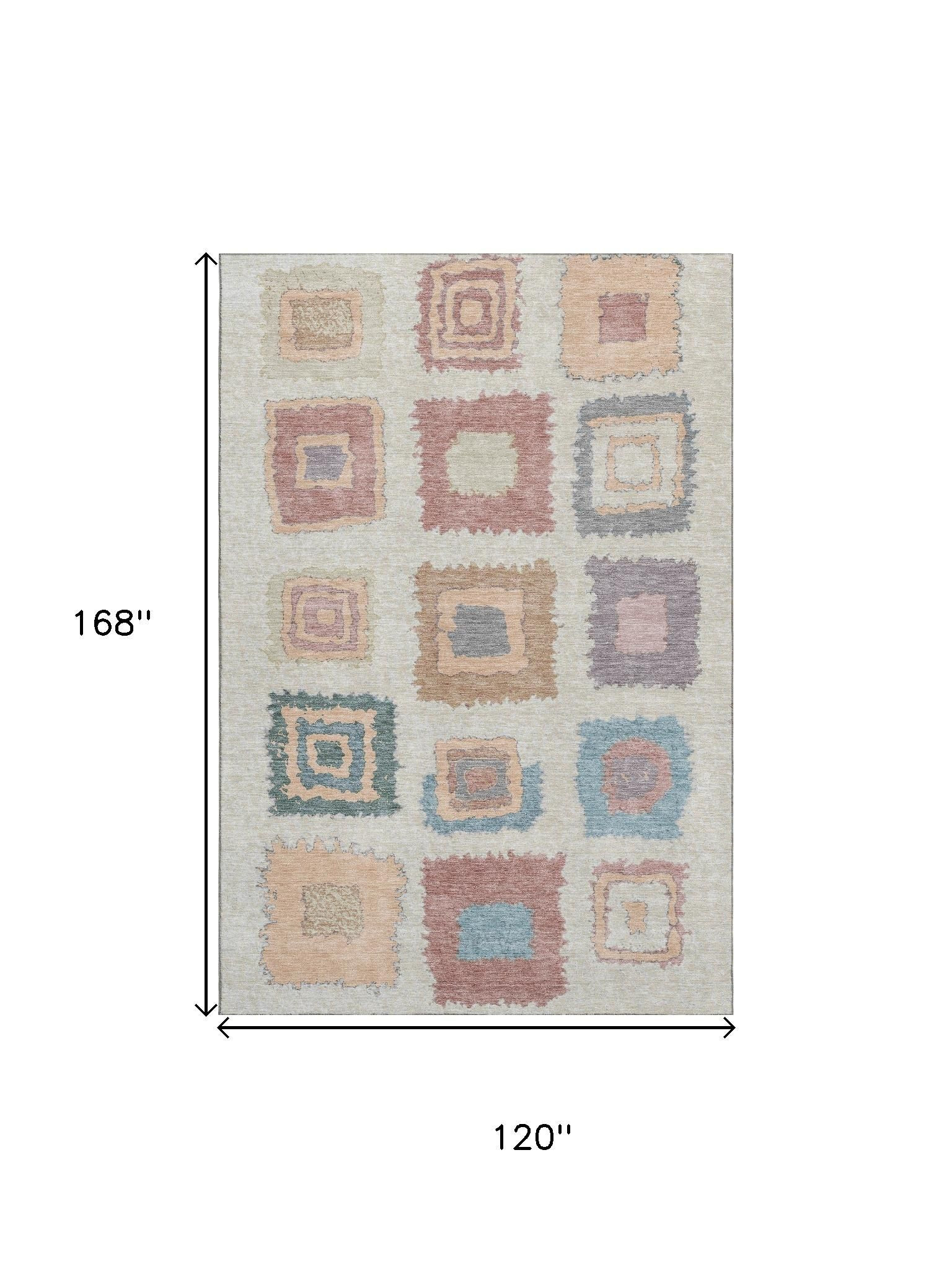 Add great coloration and comfortable texture to your space with this 10-foot x 14-foot peach ivory and blue geometric washable area rug with uv protection. Ideal for spaces with kids and pets, this rug is stain resistant to help repel dirt and spilled liquids. Built to last, this rug crafted from polyester fibers is known for its durability and long lasting appeal. Rugs are a great way to showcase your style, hide imperfections, warm your home and reduce noise. This larger sized, transitional styled rug is ready to create a focal point or statement piece in your room. 120.00-inch h x 168.00-inch w x 0.39-inch d.