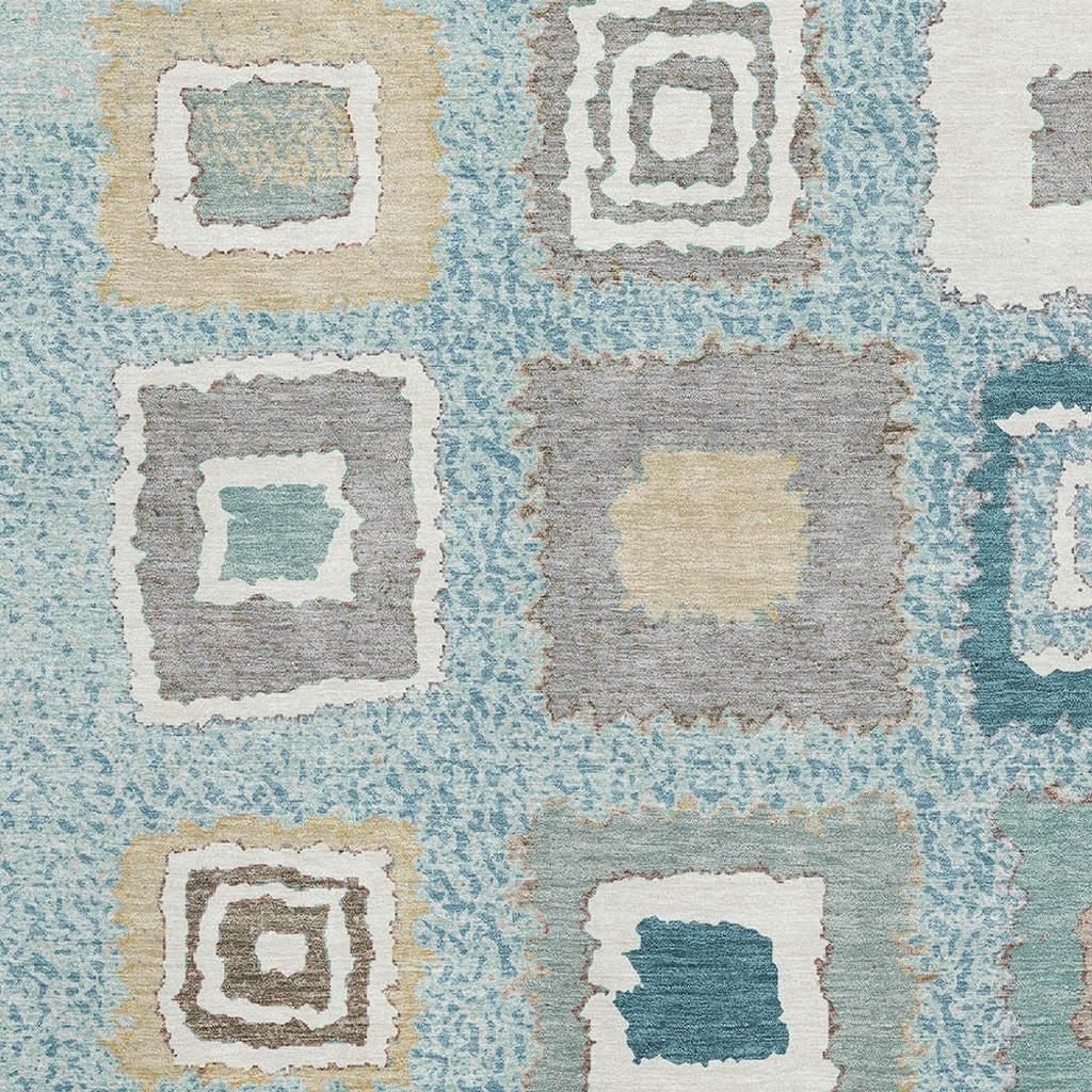 Add some artistry to your room with this 10-foot x 14-foot teal ivory and beige geometric washable area rug with uv protection. Ideal for spaces with kids and pets, this rug is stain resistant to help repel dirt and spilled liquids. Built to last, this rug crafted from polyester fibers is known for its durability and long lasting appeal. Rugs are a great way to showcase your style, hide imperfections, warm your home and reduce noise. This larger sized, transitional styled rug is ready to create a focal point or statement piece in your room. 120.00-inch h x 168.00-inch w x 0.39-inch d.