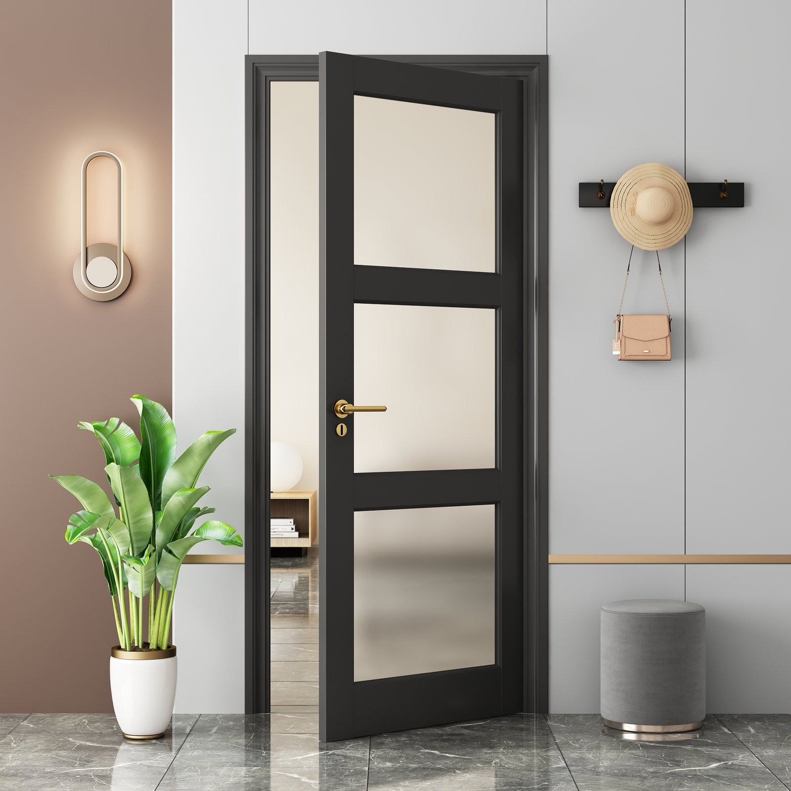 80-inch black glass french doors offer a stunning blend of elegance and sophistication for any space. Crafted from high-quality glass, these doors create an inviting atmosphere while maximizing natural light. The sleek black finish adds a modern touch, making them a perfect fit for contemporary interiors. Their generous height enhances the feeling of openness, ideal for both residential and commercial environments. Easy to maintain, these doors ensure lasting beauty and functionality. With a stylish design, they provide a seamless connection between indoor and outdoor areas, transforming your living space into a chic haven. Elevate your home decor with these striking french doors that embody both style and practicality. 80.00-inch h x 30.00-inch w x 1.38-inch d.