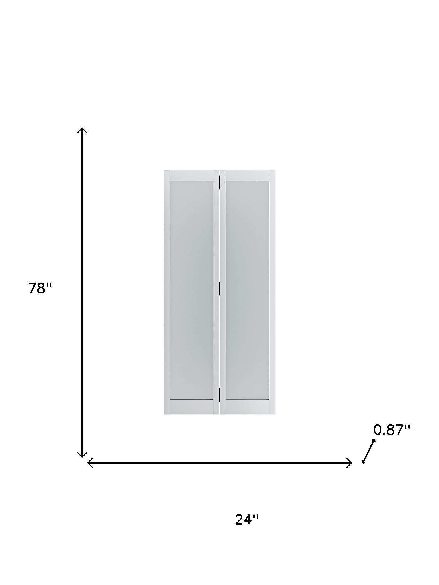 The set of two 78-inch white glass bi-fold door offers a sleek and modern touch to your living space. Crafted from high-quality glass, these doors provide an elegant solution for enhancing natural light flow. Their bi-fold design allows for easy operation and saves space, making them ideal for tight areas. The contemporary white finish complements a variety of decor styles, seamlessly integrating into any room. With a height of 78 inches, they are designed to fit standard openings while providing a stylish focal point. Upgrade your interiors with this versatile set that combines functionality and aesthetic appeal. Each door transforms the ambience, making your home feel more inviting and open. 78.00-inch h x 24.00-inch w x 0.87-inch d.