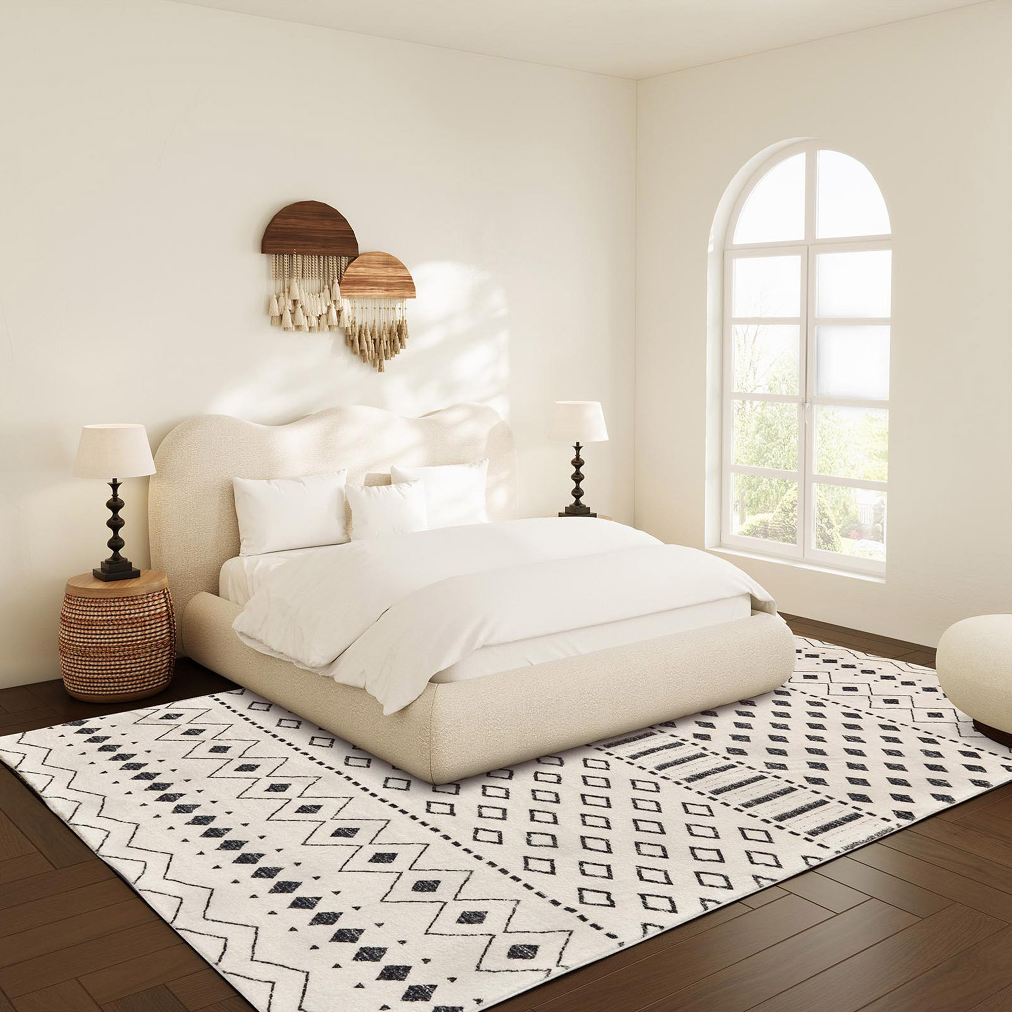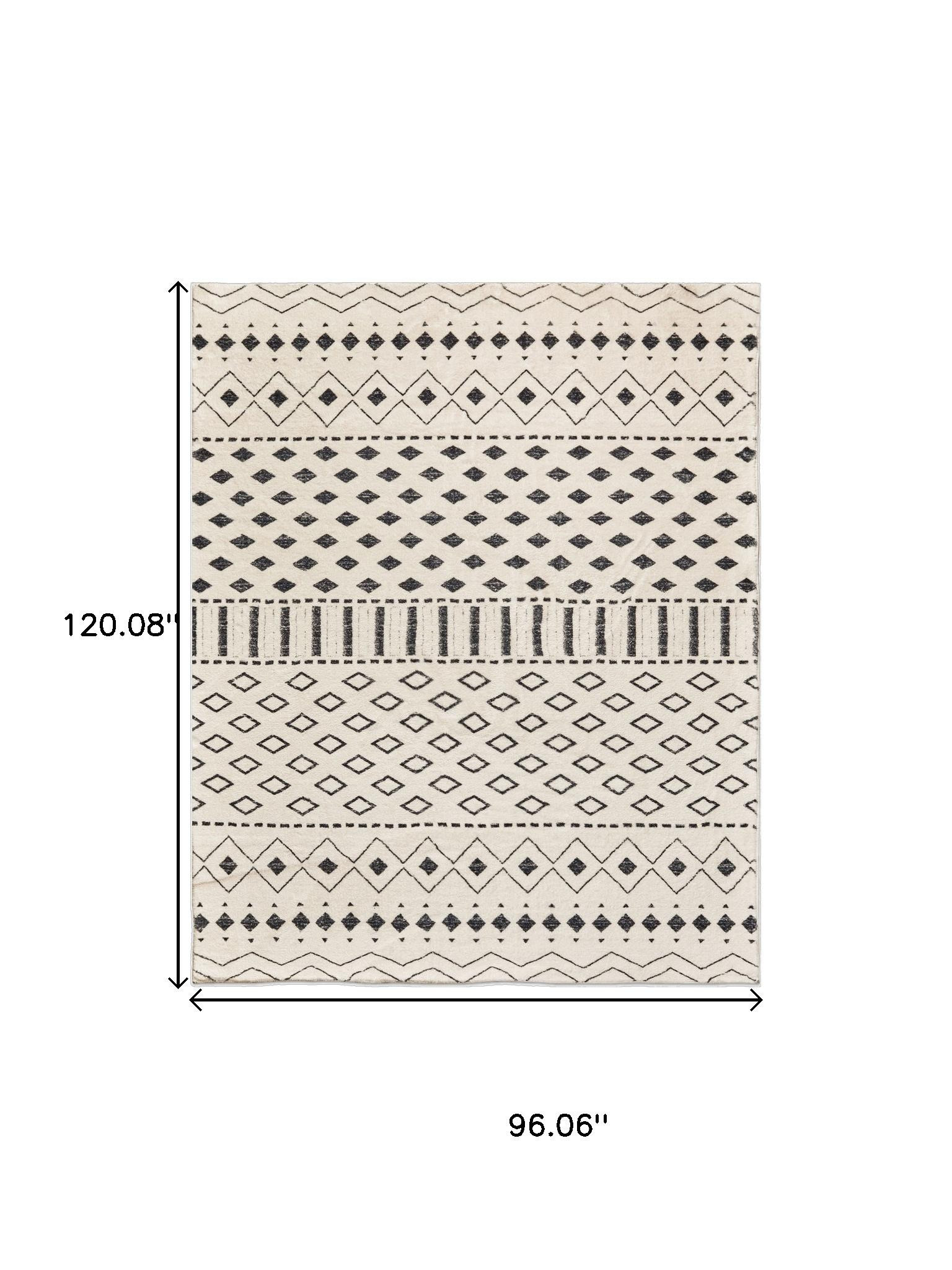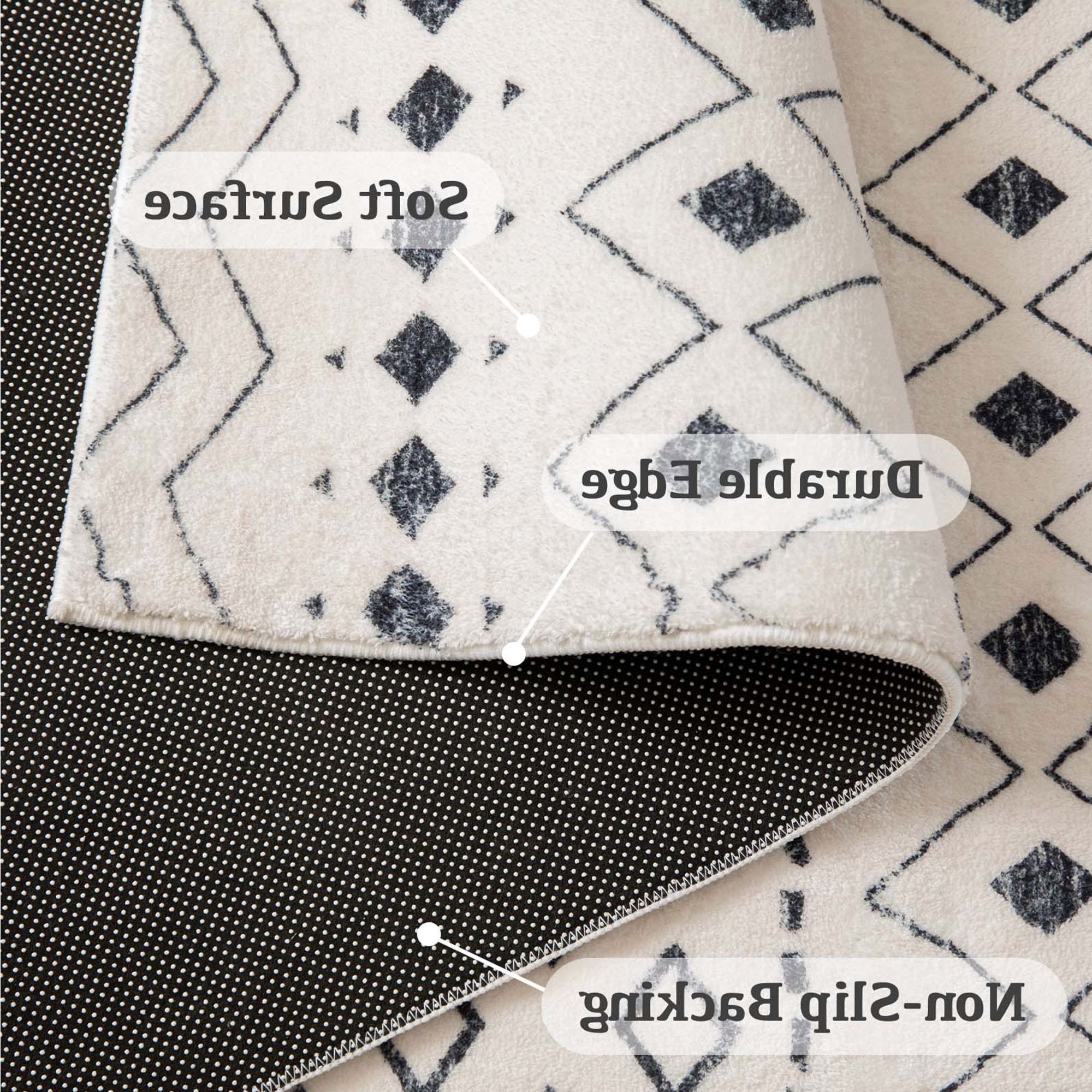 Add great coloration and comfortable texture to your space with this 3-foot x 5-foot white and charcoal geometric area rug. Ideal for spaces with kids and pets, this rug is stain resistant to help repel dirt and spilled liquids. Rugs are a great way to showcase your style, hide imperfections, warm your home and reduce noise. This larger sized, modern and contemporary styled rug is ready to create a focal point or statement piece in your room. 120.08-inch h x 96.06-inch w x 0.17-inch d.