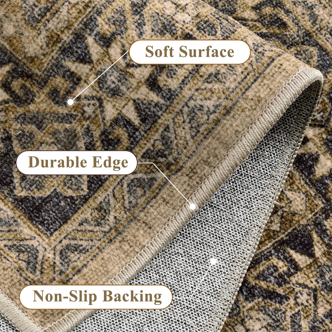 tan medallion washable area rug, medallion washable area rug, washable area rug, brown tan medallion washable area, 9' X 12' brown tan medallion washable |