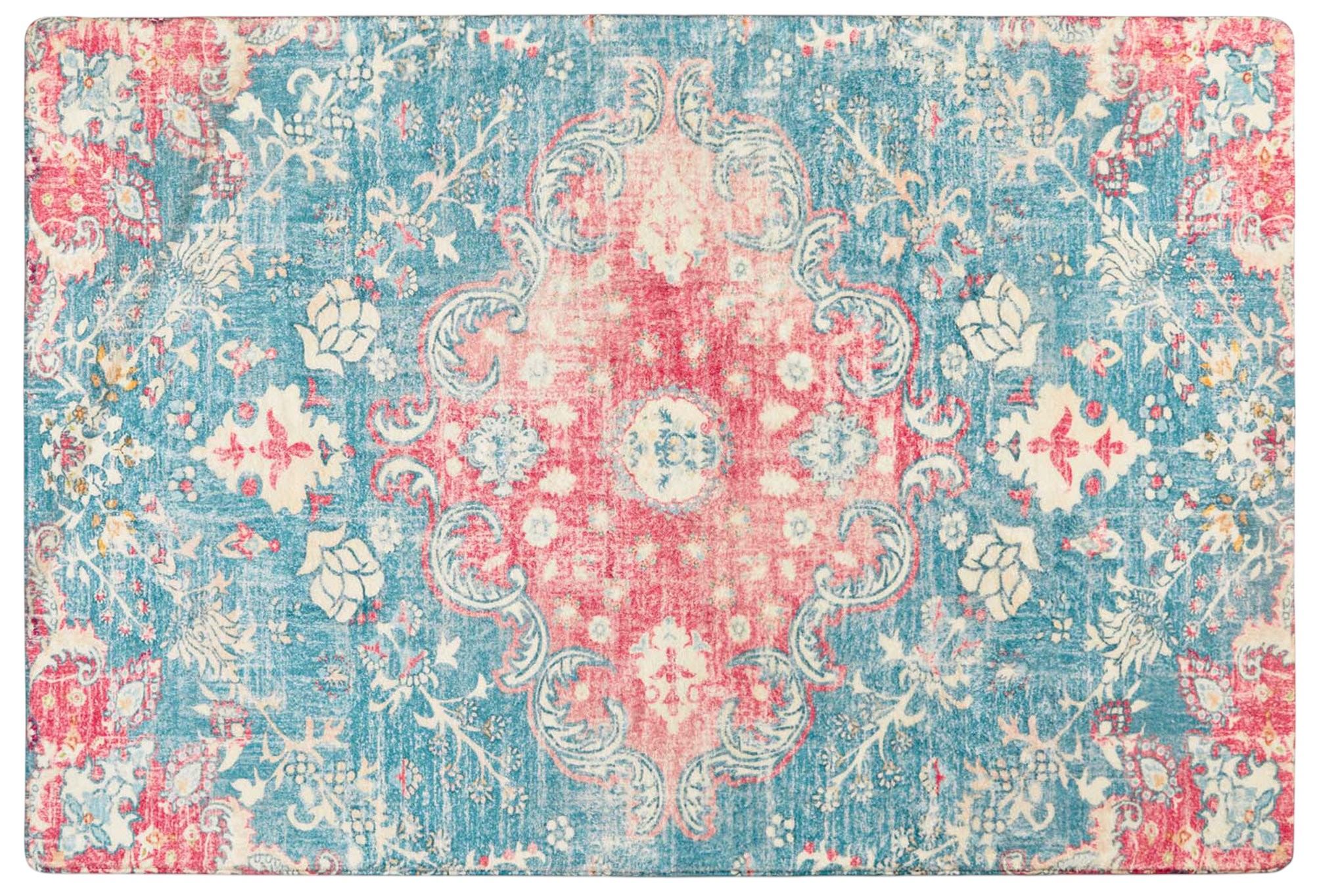 medallion distressed washable area rug, distressed washable area rug, washable area rug, ivory pink aqua medallion distressed, 8' X 10' ivory pink aqua |