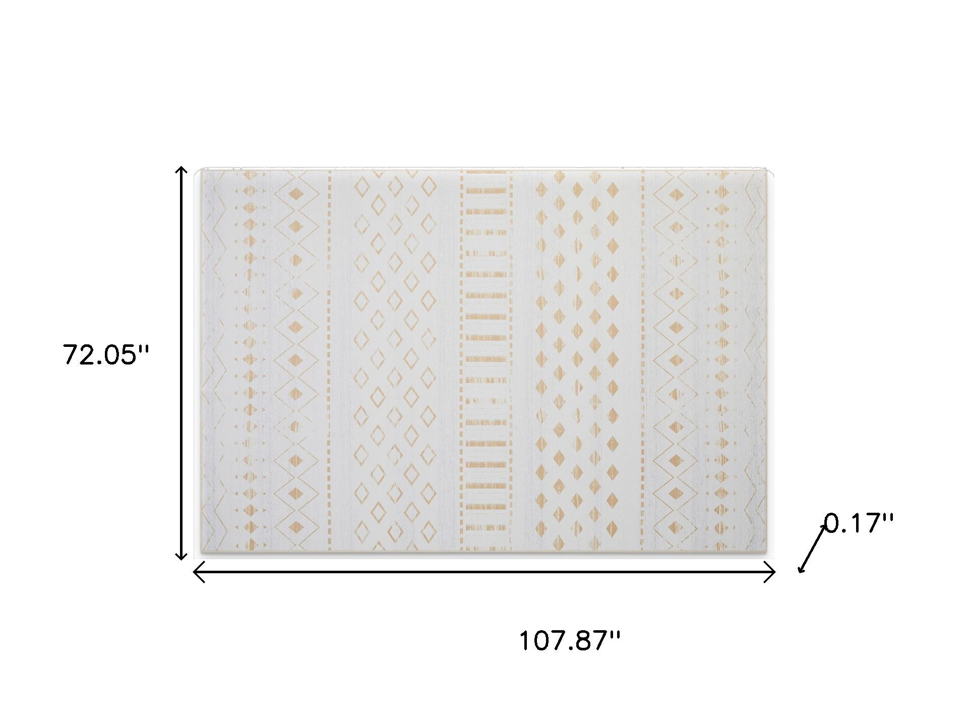 Set an inviting tone in your space with this 6-foot x 9-foot gold and white abstract geometric washable area rug. Ideal for spaces with kids and pets, this rug is stain resistant to help repel dirt and spilled liquids. Rugs are a great way to showcase your style, hide imperfections, warm your home and reduce noise. This larger sized, casual styled rug is ready to create a focal point or statement piece in your room. 72.05-inch h x 107.87-inch w x 0.17-inch d.