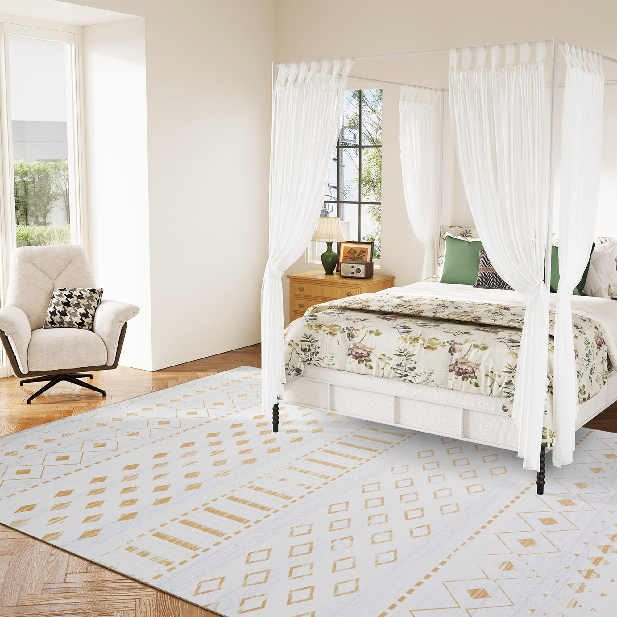 abstract geometric washable area rug, geometric washable area rug, washable area rug, white abstract geometric washable area, gold white abstract geometric washable |