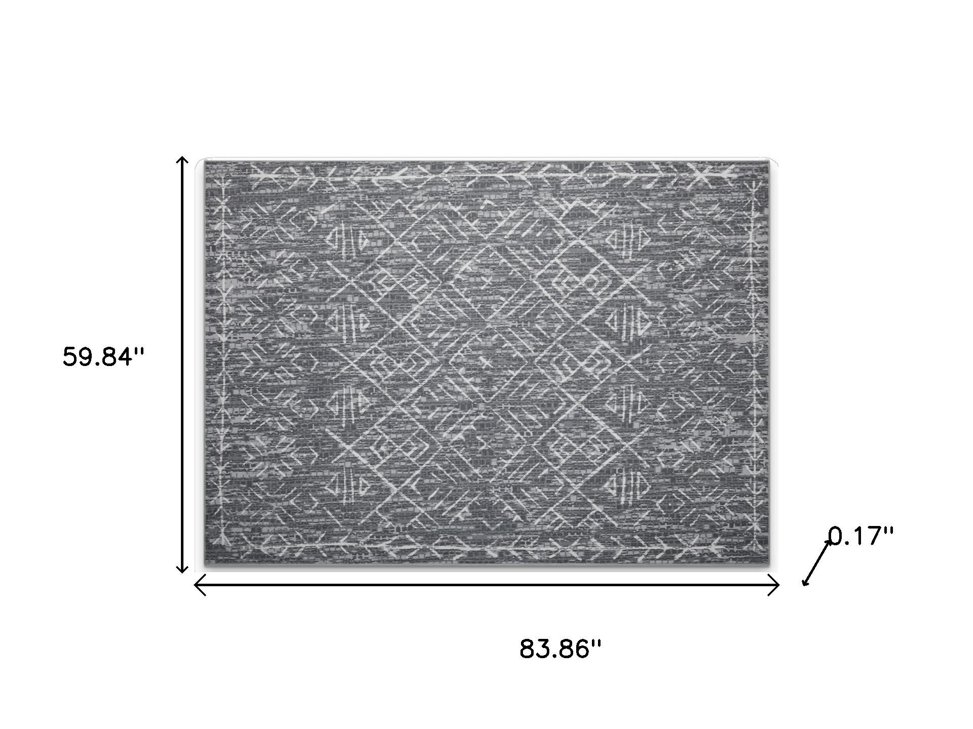 Add some artistry to your room with this 5-foot x 7-foot gray and off white abstract geometric washable area rug. Ideal for spaces with kids and pets, this rug is stain resistant to help repel dirt and spilled liquids. Rugs are a great way to showcase your style, hide imperfections, warm your home and reduce noise. This larger sized, casual styled rug is ready to create a focal point or statement piece in your room. 59.84-inch h x 83.86-inch w x 0.17-inch d.