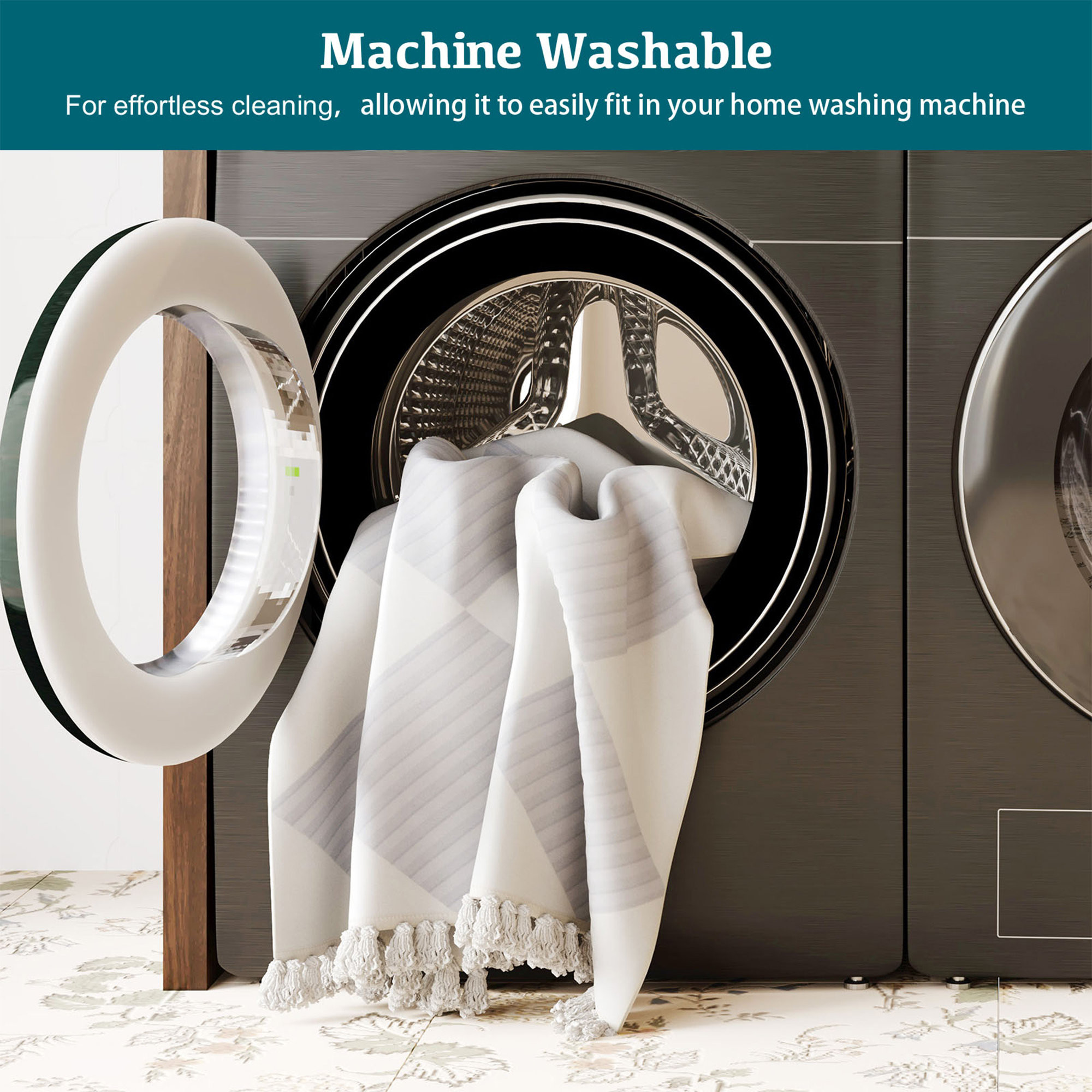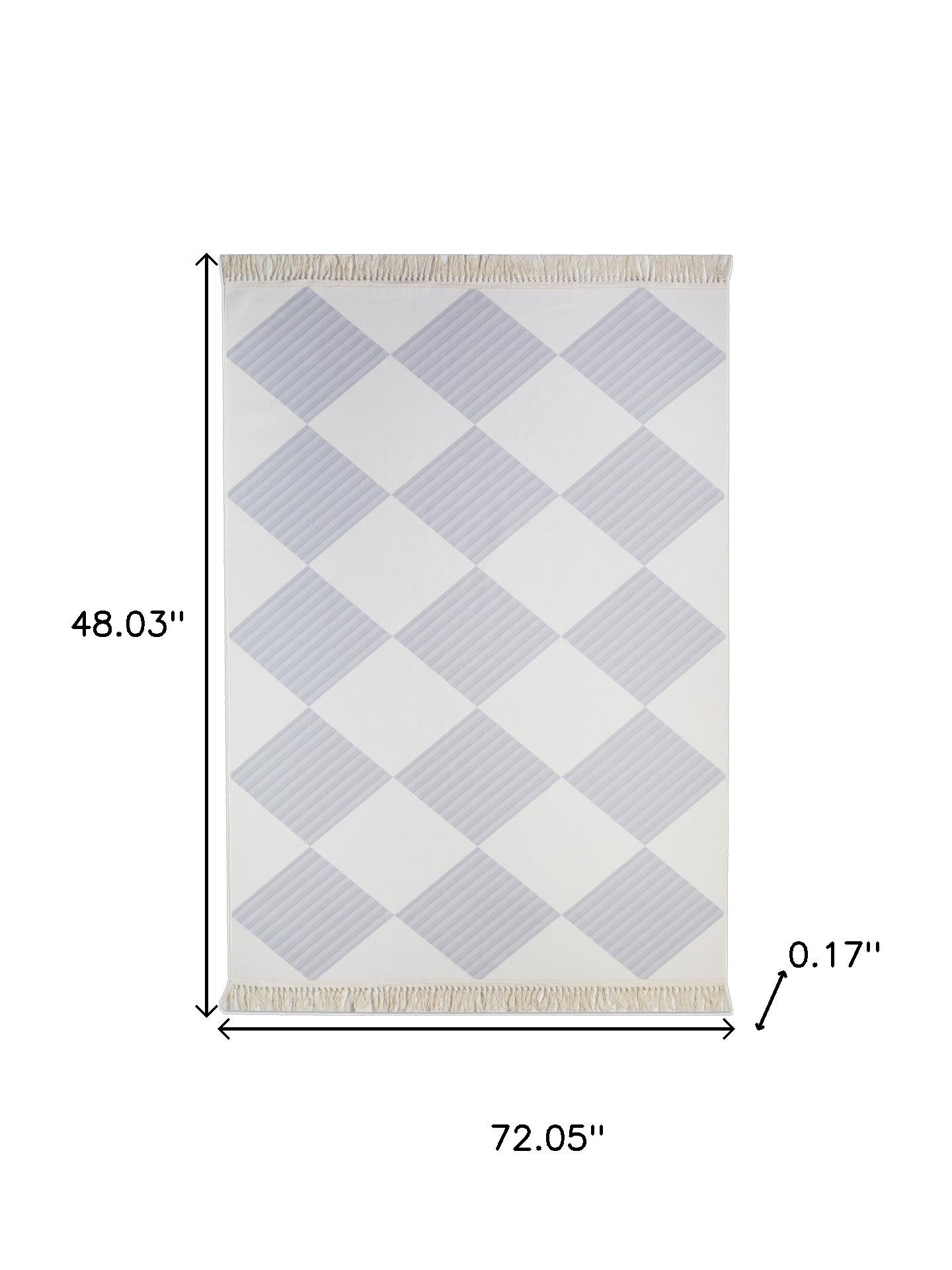 This 4-foot x 6-foot lavender and ivory geometric washable area rug with fringe, is a great way to add warmth to a room. Ideal for spaces with kids and pets, this rug is stain resistant to help repel dirt and spilled liquids. Rugs are a great way to showcase your style, hide imperfections, warm your home and reduce noise. Tassel ends bring a timeless and fashionable look to your interior. This smaller sized, modern and contemporary styled rug is just what you need for your walkway, bedside, in front of door, cabinet, refrigerator, or chair. 48.03-inch h x 72.05-inch w x 0.17-inch d.