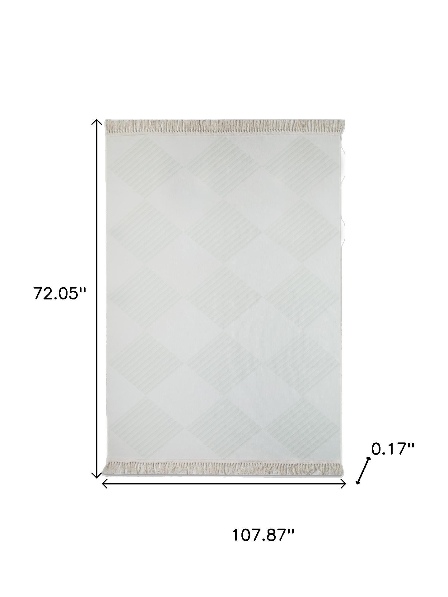 Set an inviting tone in your space with this 6-foot x 9-foot green and ivory geometric washable area rug. Ideal for spaces with kids and pets, this rug is stain resistant to help repel dirt and spilled liquids. Rugs are a great way to showcase your style, hide imperfections, warm your home and reduce noise. This larger sized, casual styled rug is ready to create a focal point or statement piece in your room. 72.05-inch h x 107.87-inch w x 0.17-inch d.