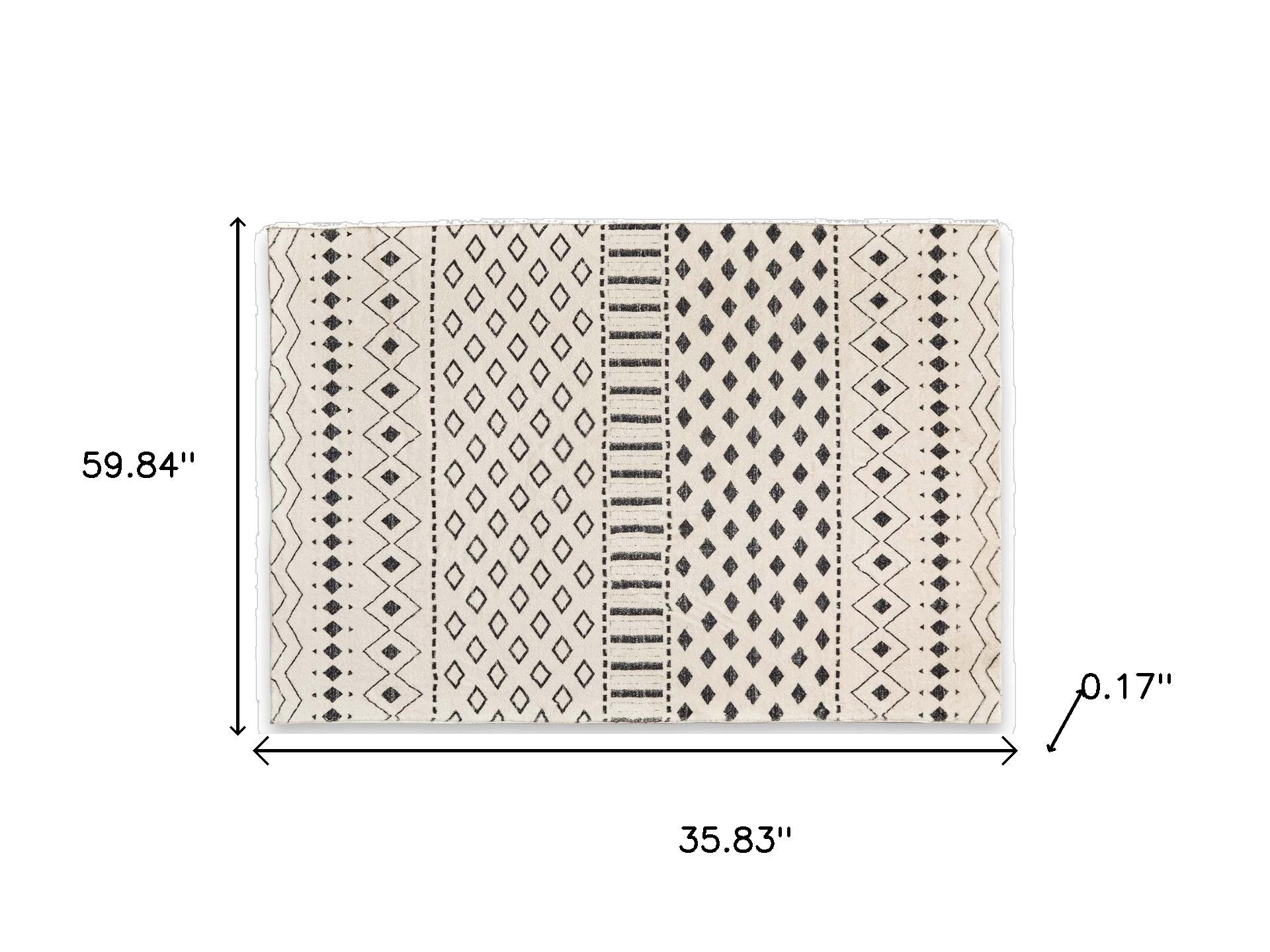 This 4-foot x 6-foot beige and black geometric washable area rug, is a great way to add warmth to a room. Ideal for spaces with kids and pets, this rug is stain resistant to help repel dirt and spilled liquids. Rugs are a great way to showcase your style, hide imperfections, warm your home and reduce noise. This larger sized, modern and contemporary styled rug is ready to create a focal point or statement piece in your room. 59.84-inch h x 35.83-inch w x 0.17-inch d.