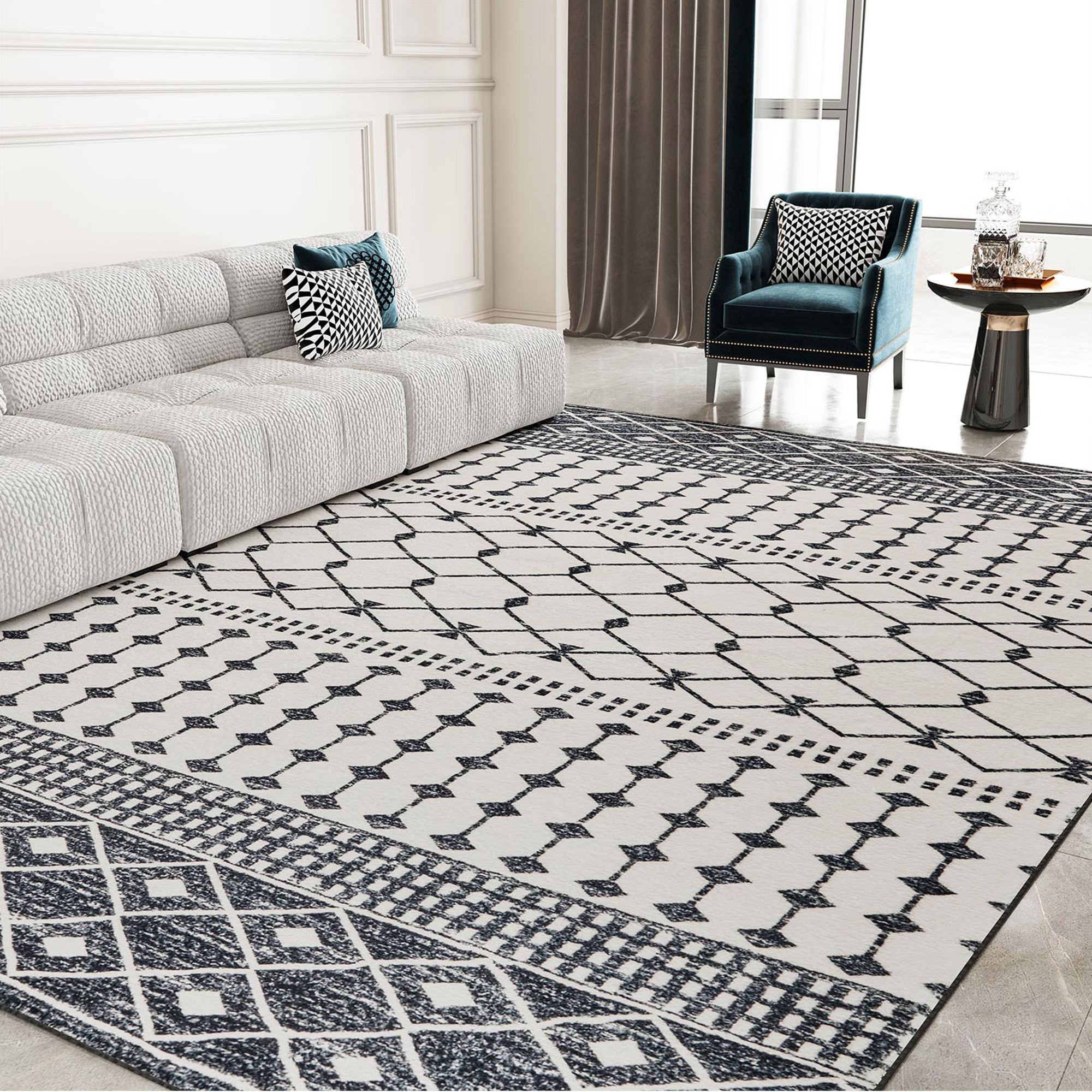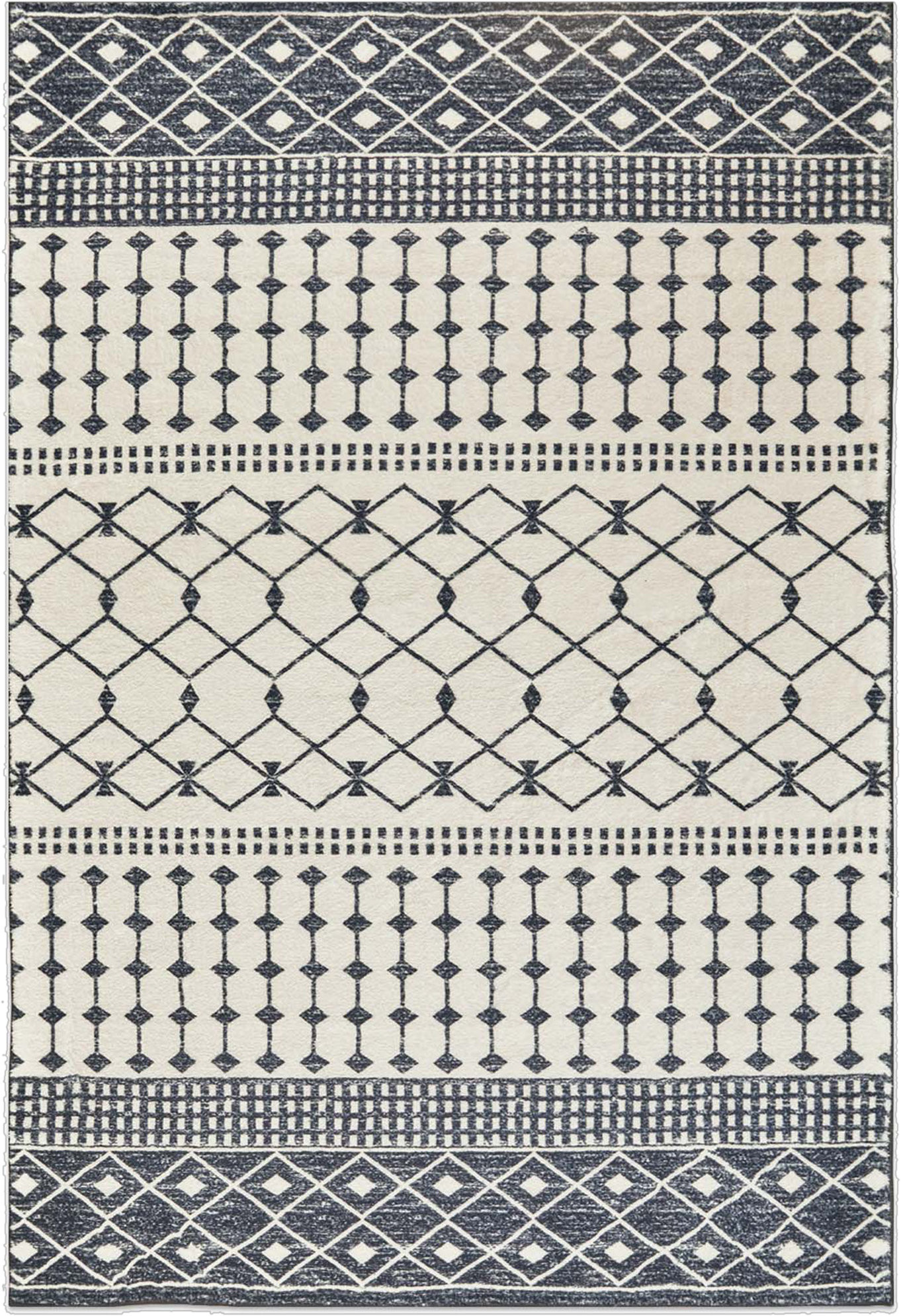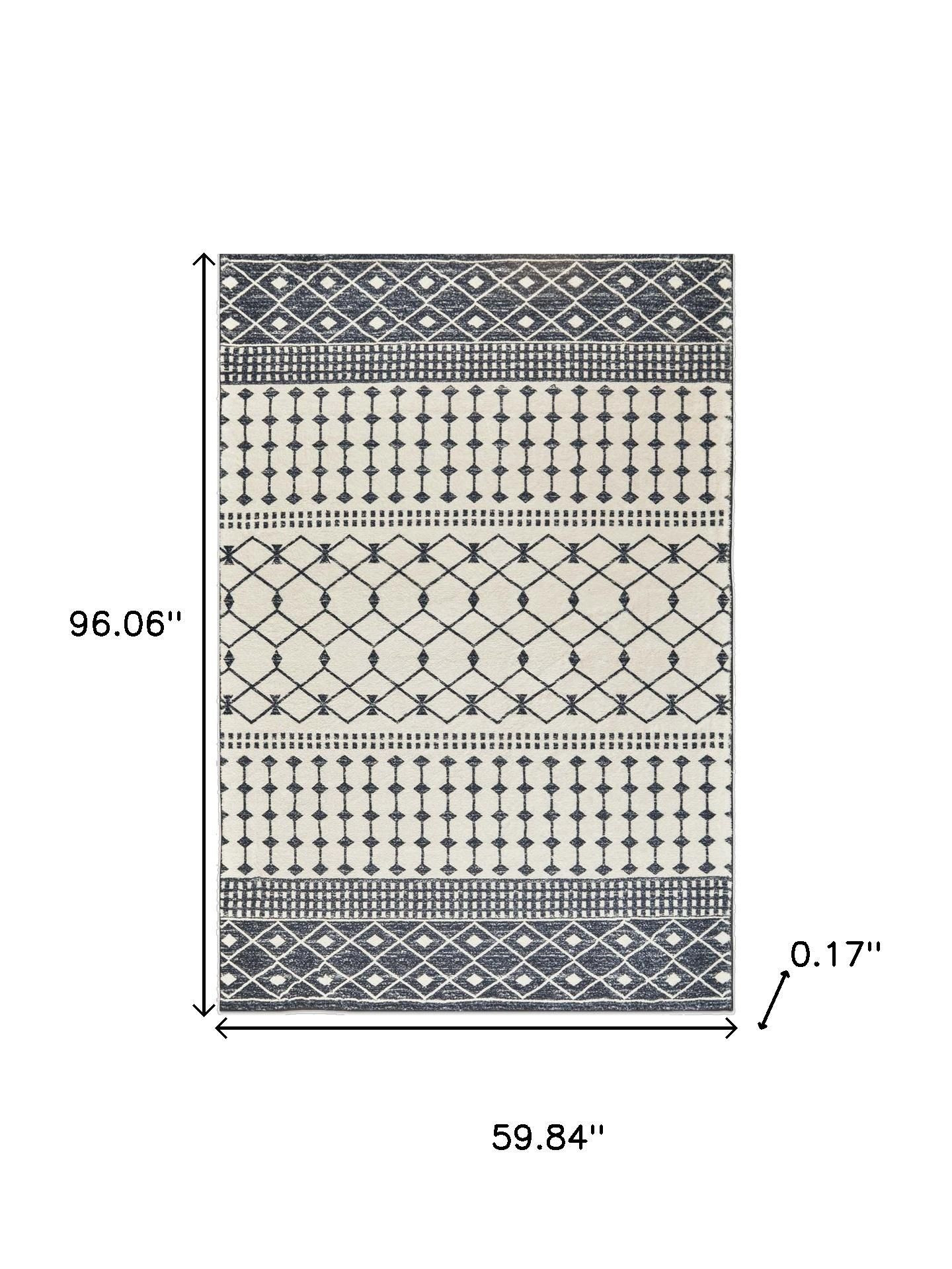 Set an inviting tone in your space with this 5-foot x 8-foot dark gray and white geometric distressed washable area rug. Ideal for spaces with kids and pets, this rug is stain resistant to help repel dirt and spilled liquids. Rugs are a great way to showcase your style, hide imperfections, warm your home and reduce noise. This larger sized, modern and contemporary styled rug is ready to create a focal point or statement piece in your room. 96.06-inch h x 59.84-inch w x 0.17-inch d.