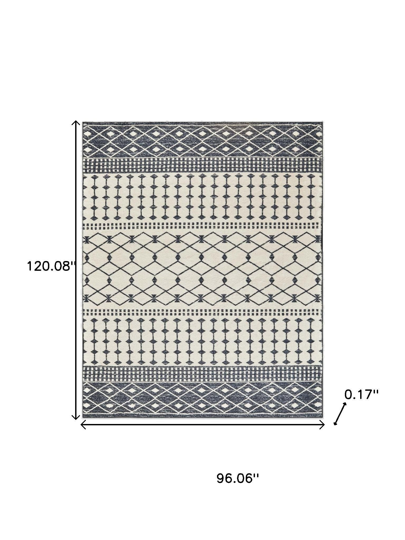 Add great coloration and comfortable texture to your space with this 8-foot x 10-foot dark gray and white geometric distressed washable area rug. Ideal for spaces with kids and pets, this rug is stain resistant to help repel dirt and spilled liquids. Rugs are a great way to showcase your style, hide imperfections, warm your home and reduce noise. This larger sized, modern and contemporary styled rug is ready to create a focal point or statement piece in your room. 120.08-inch h x 96.06-inch w x 0.17-inch d.