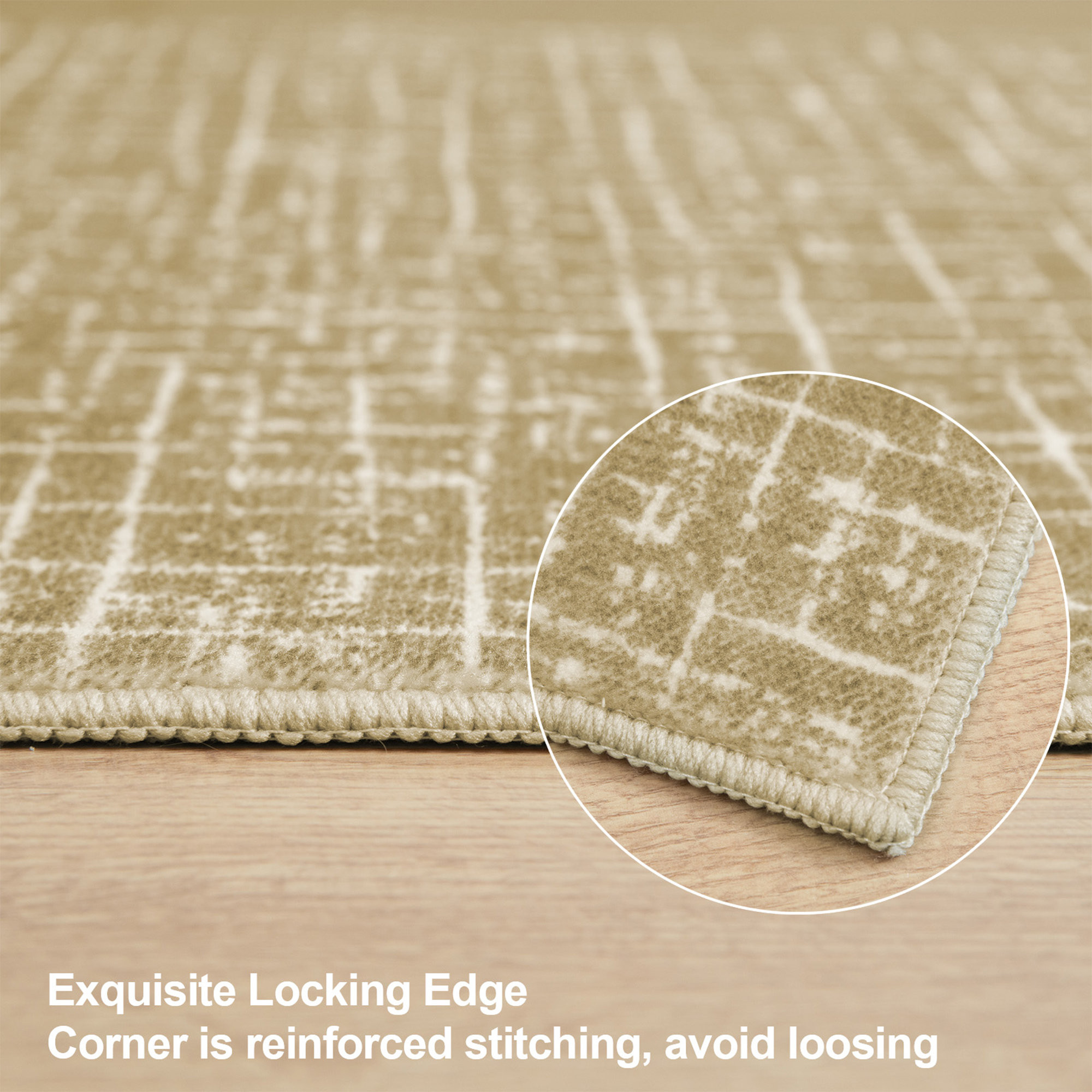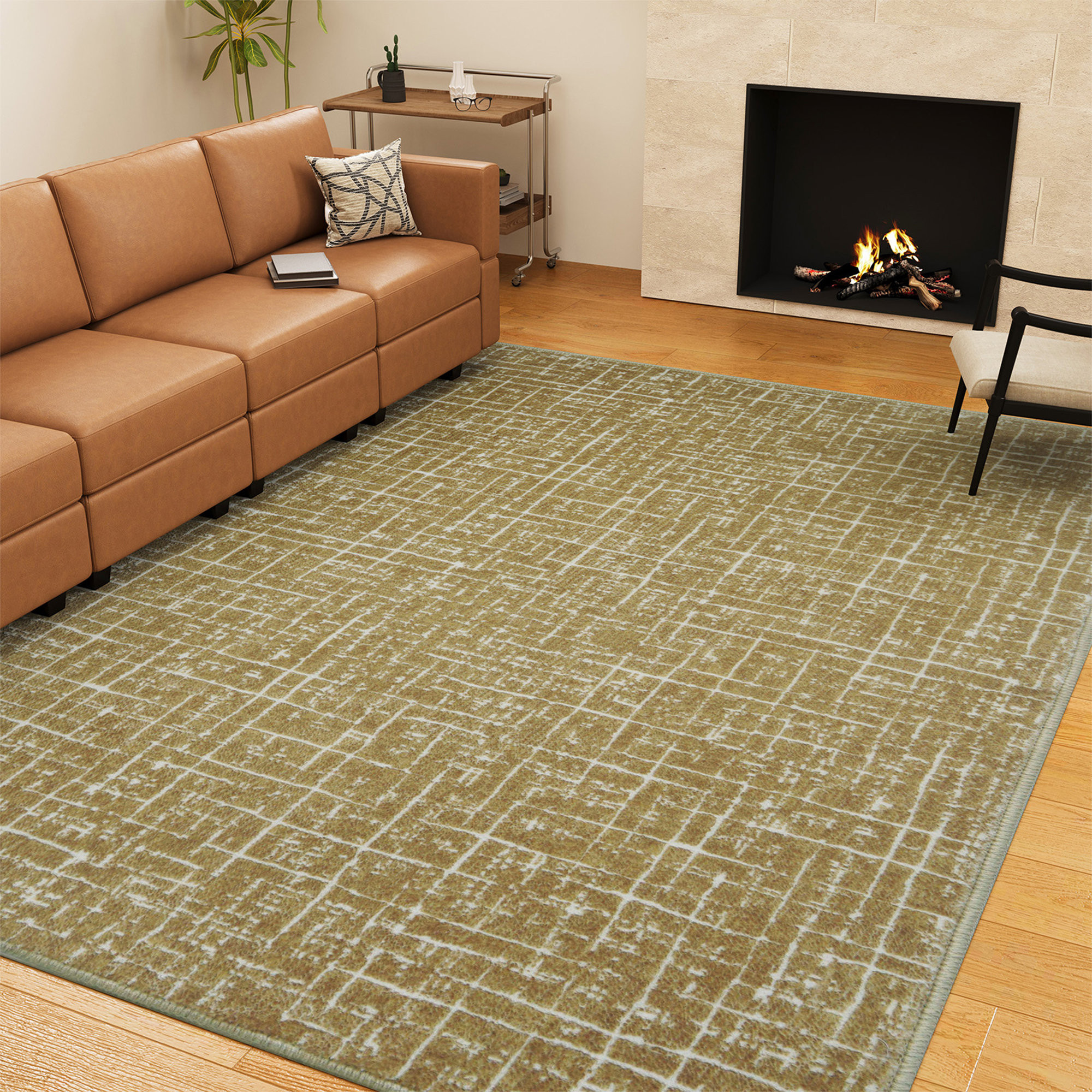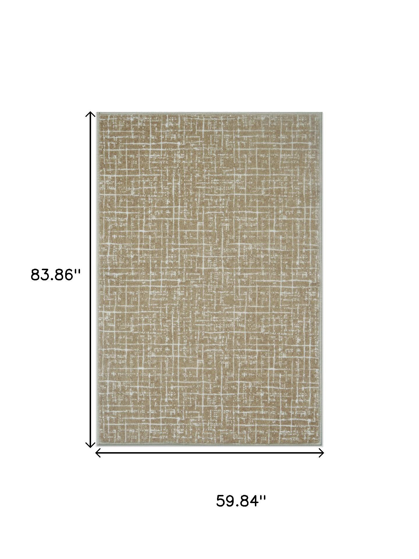 Add some artistry to your room with this 5-foot x 7-foot gold and ivory abstract geometric distressed washable area rug. Ideal for spaces with kids and pets, this rug is stain resistant to help repel dirt and spilled liquids. Rugs are a great way to showcase your style, hide imperfections, warm your home and reduce noise. This larger sized, modern and contemporary styled rug is ready to create a focal point or statement piece in your room. 83.86-inch h x 59.84-inch w x 0.17-inch d.