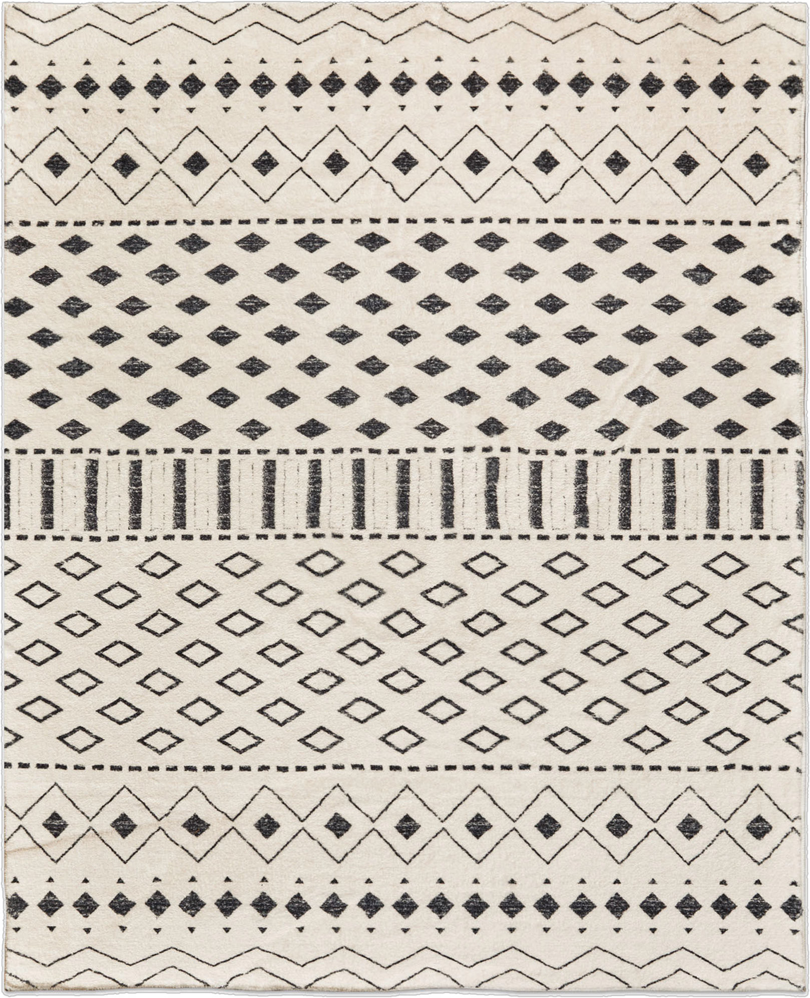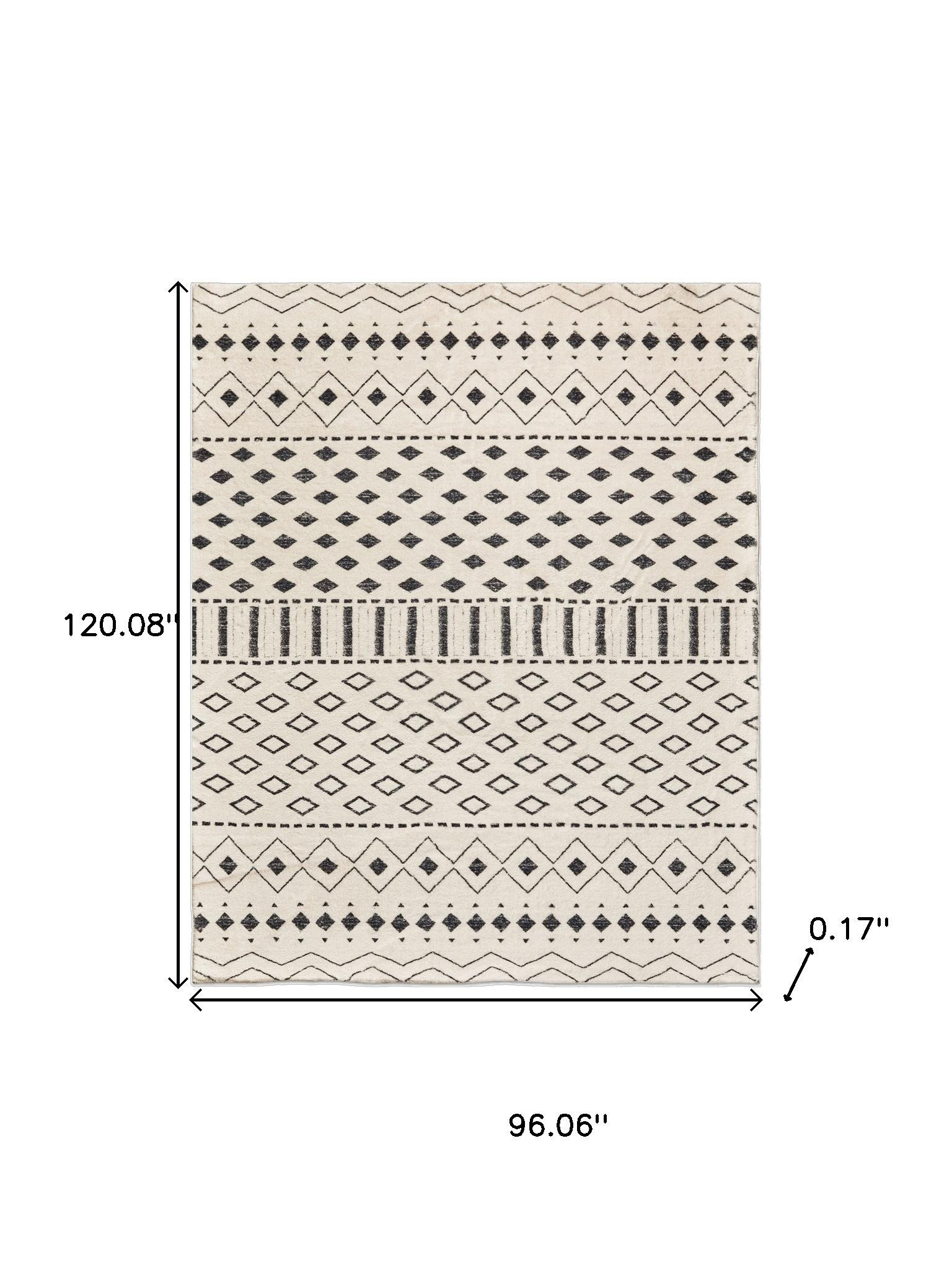 This 3-foot x 5-foot beige and black tribal washable area rug, is a great way to add warmth to a room. Ideal for spaces with kids and pets, this rug is stain resistant to help repel dirt and spilled liquids. Rugs are a great way to showcase your style, hide imperfections, warm your home and reduce noise. This larger sized, modern and contemporary styled rug is ready to create a focal point or statement piece in your room. 120.08-inch h x 96.06-inch w x 0.17-inch d.