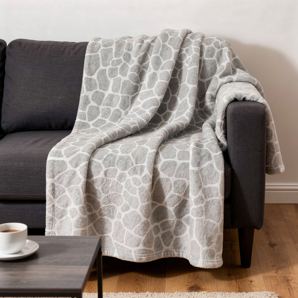 Bring warmth, comfort and style to your space with this 50-inch x 70-inch gray and ivory giraffe microfiber plush throw blanket. This ultra-soft plush blanket is designed for ultimate softness. Features a stylish giraffe design that offers sumptuous softness and texture that you'll cherish for years to come. Made from microfiber this blanket will make a great addition to any room it's added to. Layering your furnishings with a decorative throw has the ability to awaken a tired living room or elevate the design of your bedroom simply by providing elements of color and texture that weren't there before. This cozy throw blanket makes the perfect add-on to movie nights and lazy afternoons. 70.00-inch h x 50.00-inch w x 0.50-inch d.