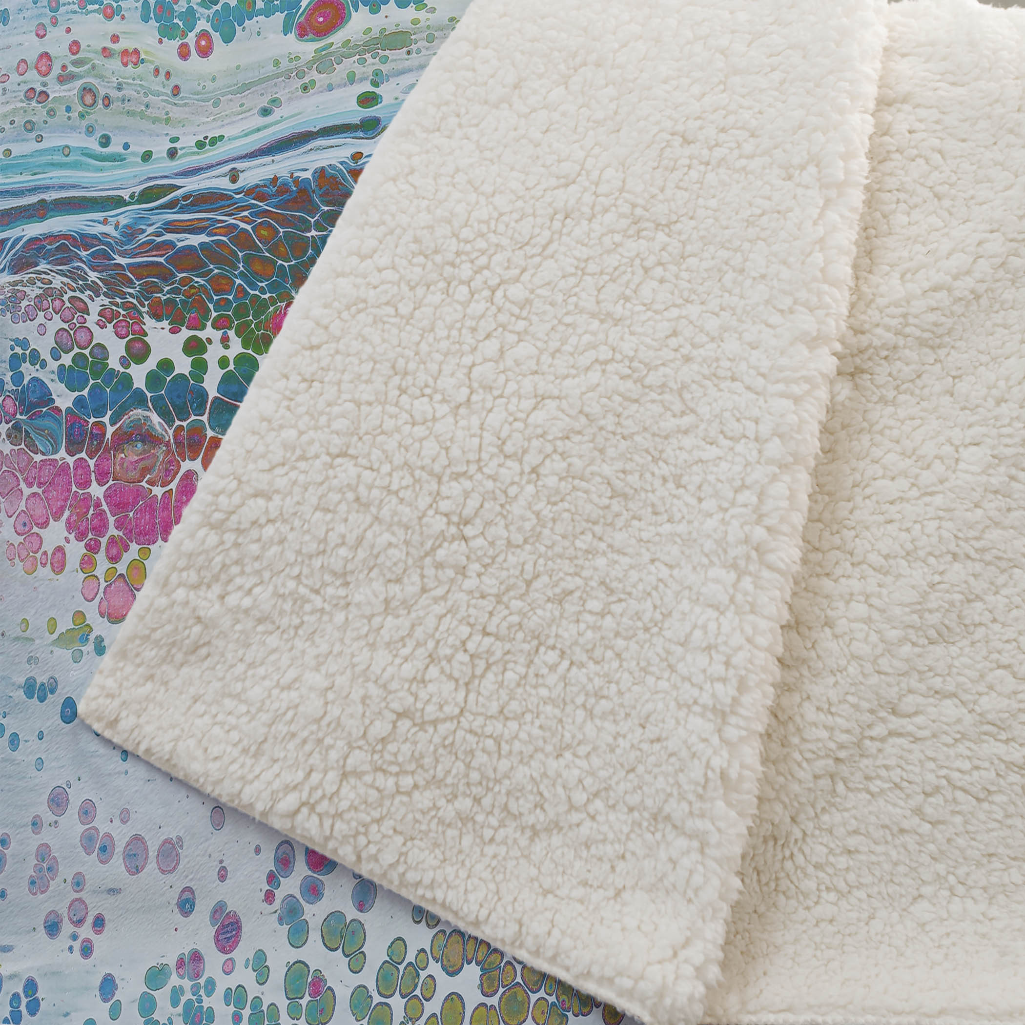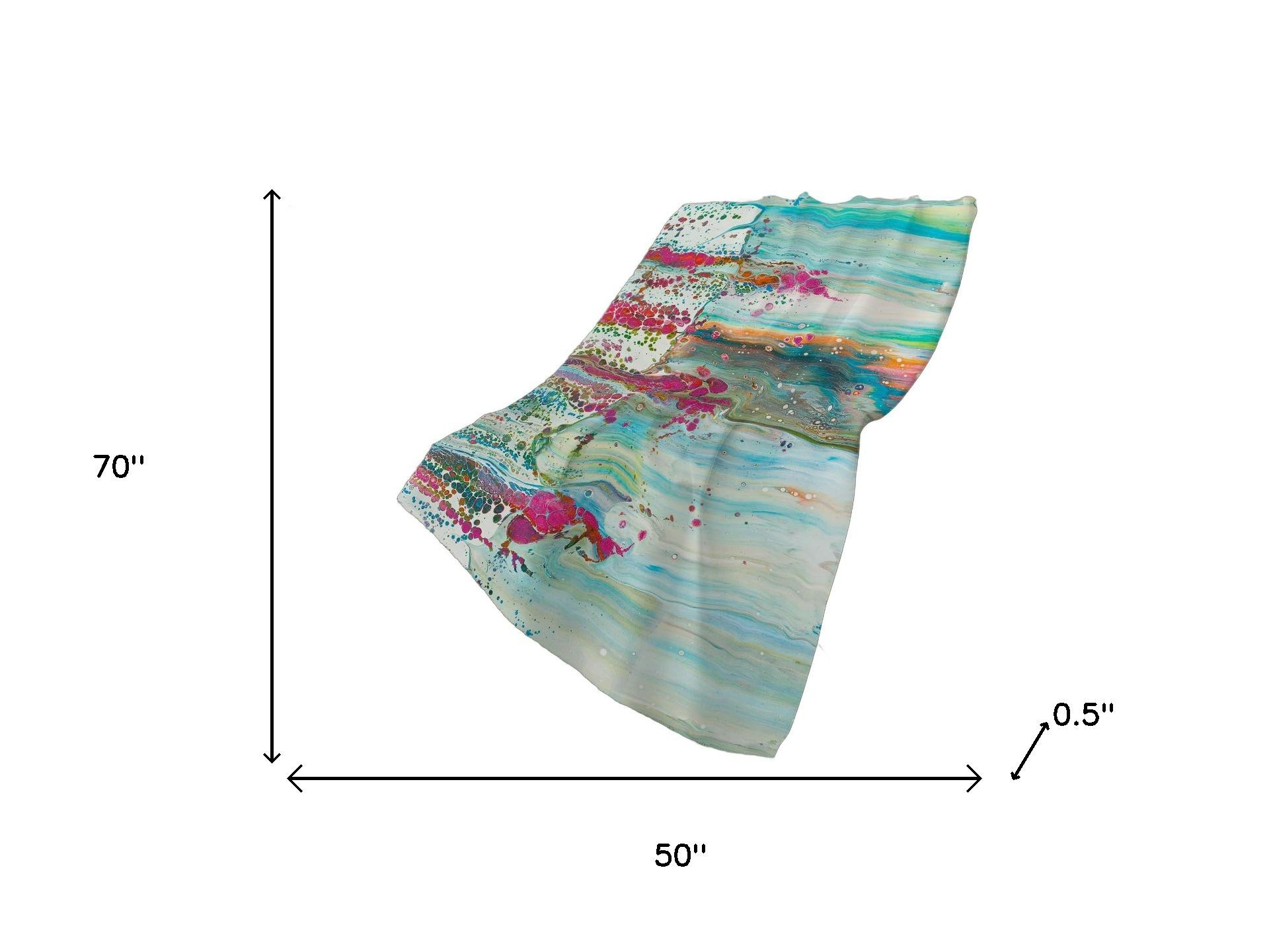 This 50-inch x 70-inch ivory pink and teal abstract polyester woven plush throw blanket is the best (and most stylish) way to wrap you and your loved ones in the epitome of cozy all year long. This ultra-soft plush blanket is designed for ultimate softness. Features a woven abstract design that offers sumptuous softness and texture that you'll cherish for years to come. Made from polyester this blanket will make a great addition to any room it's added to. Layering your furnishings with a decorative throw has the ability to awaken a tired living room or elevate the design of your bedroom simply by providing elements of color and texture that weren't there before. Perfect for your favorite chair, bed or lounging on the couch, this blanket helps bring a warm and fashionable flair to your space. 70.00-inch h x 50.00-inch w x 0.50-inch d.