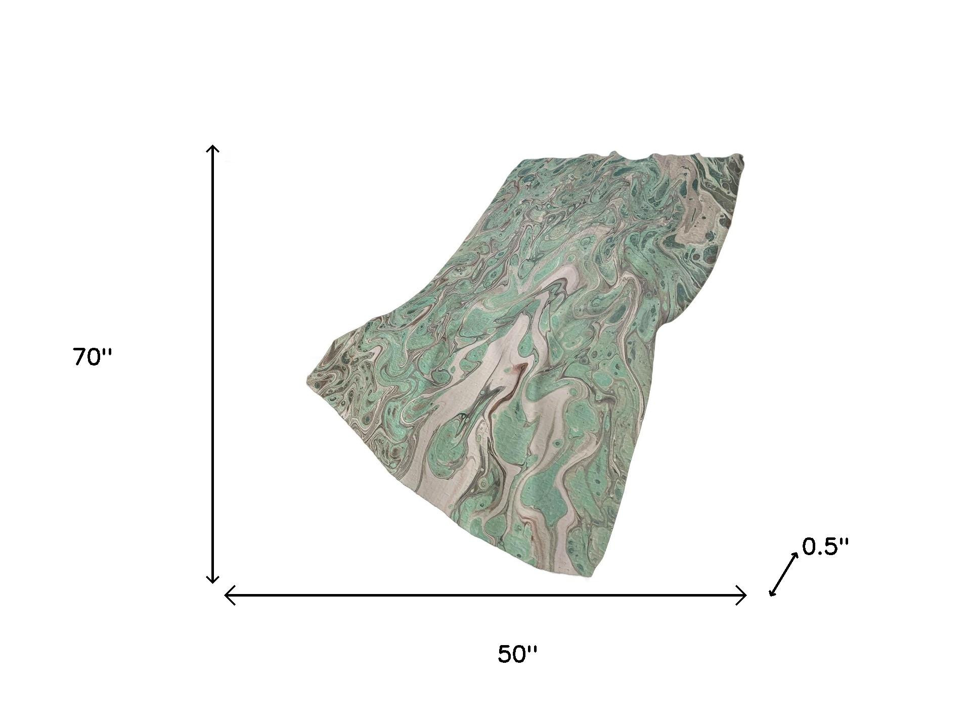 This 50-inch x 70-inch mint green and ivory abstract polyester woven plush throw blanket is the perfect accent you've been searching for. This plush throw is cozy soft beyond belief and oh-so-giftable. Features a woven abstract design that offers sumptuous softness and texture that you'll cherish for years to come. Made from polyester this blanket will make a great addition to any room it's added to. Layering your furnishings with a decorative throw has the ability to awaken a tired living room or elevate the design of your bedroom simply by providing elements of color and texture that weren't there before. This cozy throw blanket makes the perfect add-on to movie nights and lazy afternoons. 70.00-inch h x 50.00-inch w x 0.50-inch d.