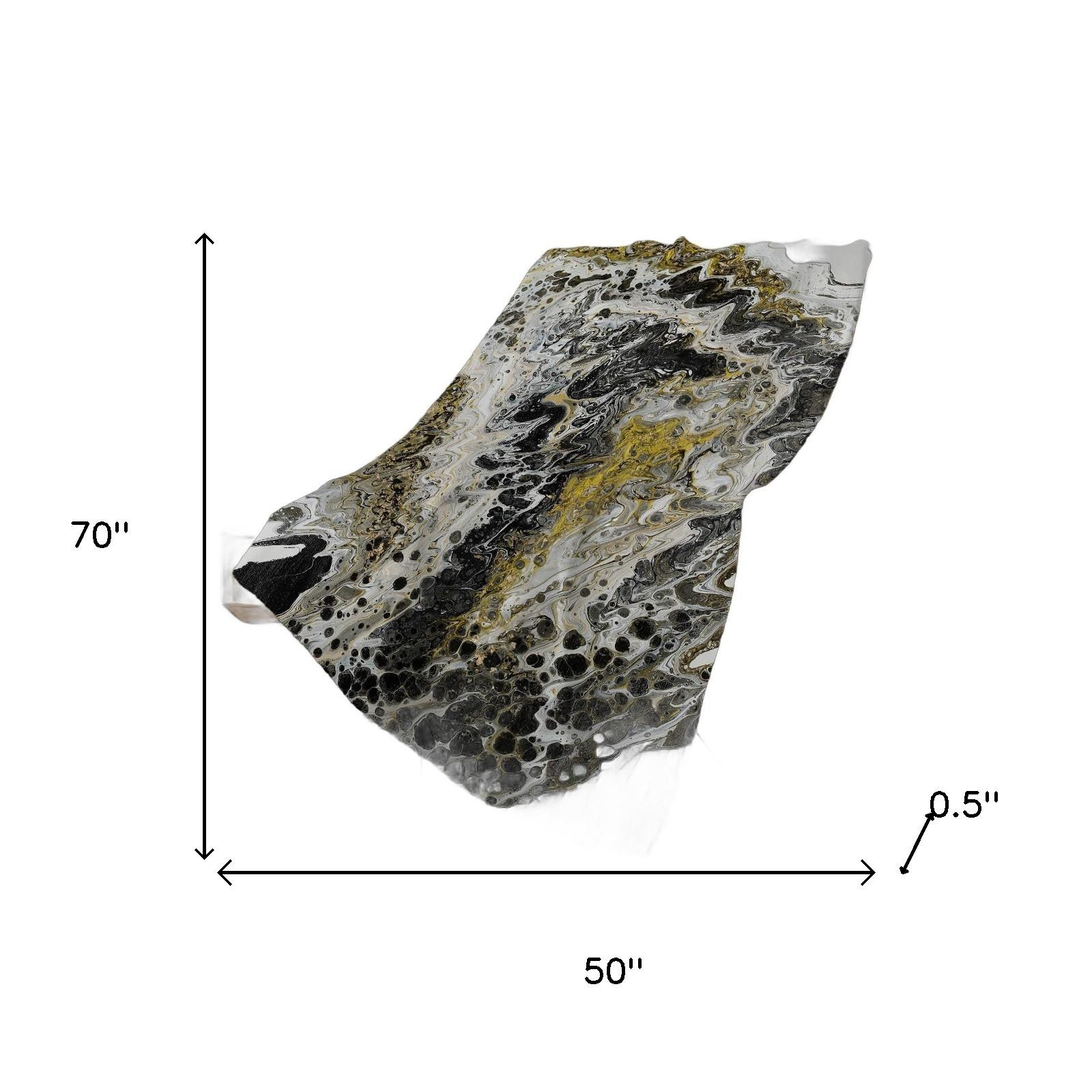 This 50-inch x 70-inch ivory black and gold abstract polyester woven plush throw blanket brings a classic, refined style to your space. This ultra-soft plush blanket is designed for ultimate softness. Features a woven abstract design that offers sumptuous softness and texture that you'll cherish for years to come. Made from polyester this blanket will make a great addition to any room it's added to. Add extra texture to your decor and turn your room into an inviting space. Perfect for your favorite chair, bed or lounging on the couch, this blanket helps bring a warm and fashionable flair to your space. 70.00-inch h x 50.00-inch w x 0.50-inch d.