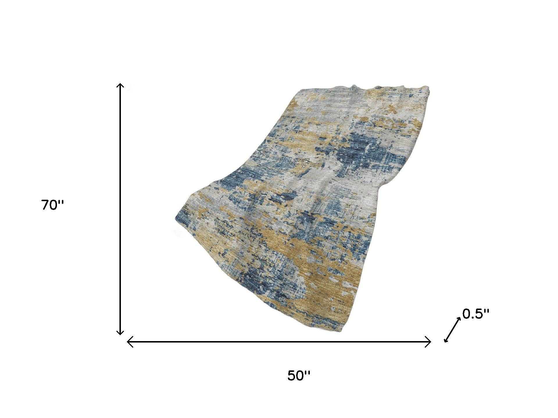 Whether you're curling up for movie night or you need an extra layer of warmth as you drift off to sleep, this 50-inch x 70-inch blue gold and ivory abstract polyester woven plush throw blanket is the perfect solution. This ultra-soft plush blanket is designed for ultimate softness. Features a woven abstract design that offers sumptuous softness and texture that you'll cherish for years to come. Made from polyester this blanket will make a great addition to any room it's added to. Layering your furnishings with a decorative throw has the ability to awaken a tired living room or elevate the design of your bedroom simply by providing elements of color and texture that weren't there before. This cozy throw blanket is sure to become your go-to couch companion. 70.00-inch h x 50.00-inch w x 0.50-inch d.