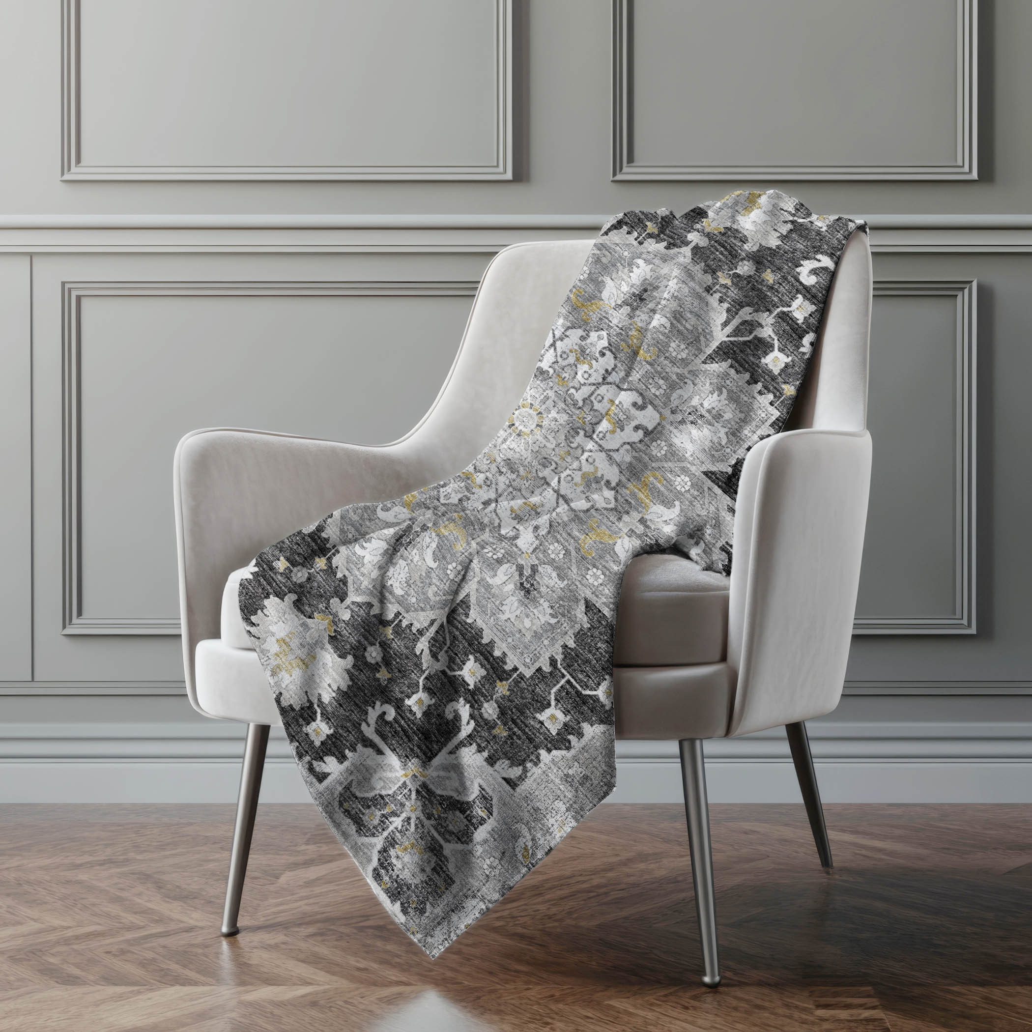 This 50-inch x 70-inch charcoal gold and gray floral polyester woven plush throw blanket is an essential for any cozy abode. This ultra-soft plush blanket is designed for ultimate softness. Features a woven floral design that offers sumptuous softness and texture that you'll cherish for years to come. Made from polyester this blanket will make a great addition to any room it's added to. Layering your furnishings with a decorative throw has the ability to awaken a tired living room or elevate the design of your bedroom simply by providing elements of color and texture that weren't there before. This cozy throw blanket is sure to become your go-to couch companion. 70.00-inch h x 50.00-inch w x 0.50-inch d.