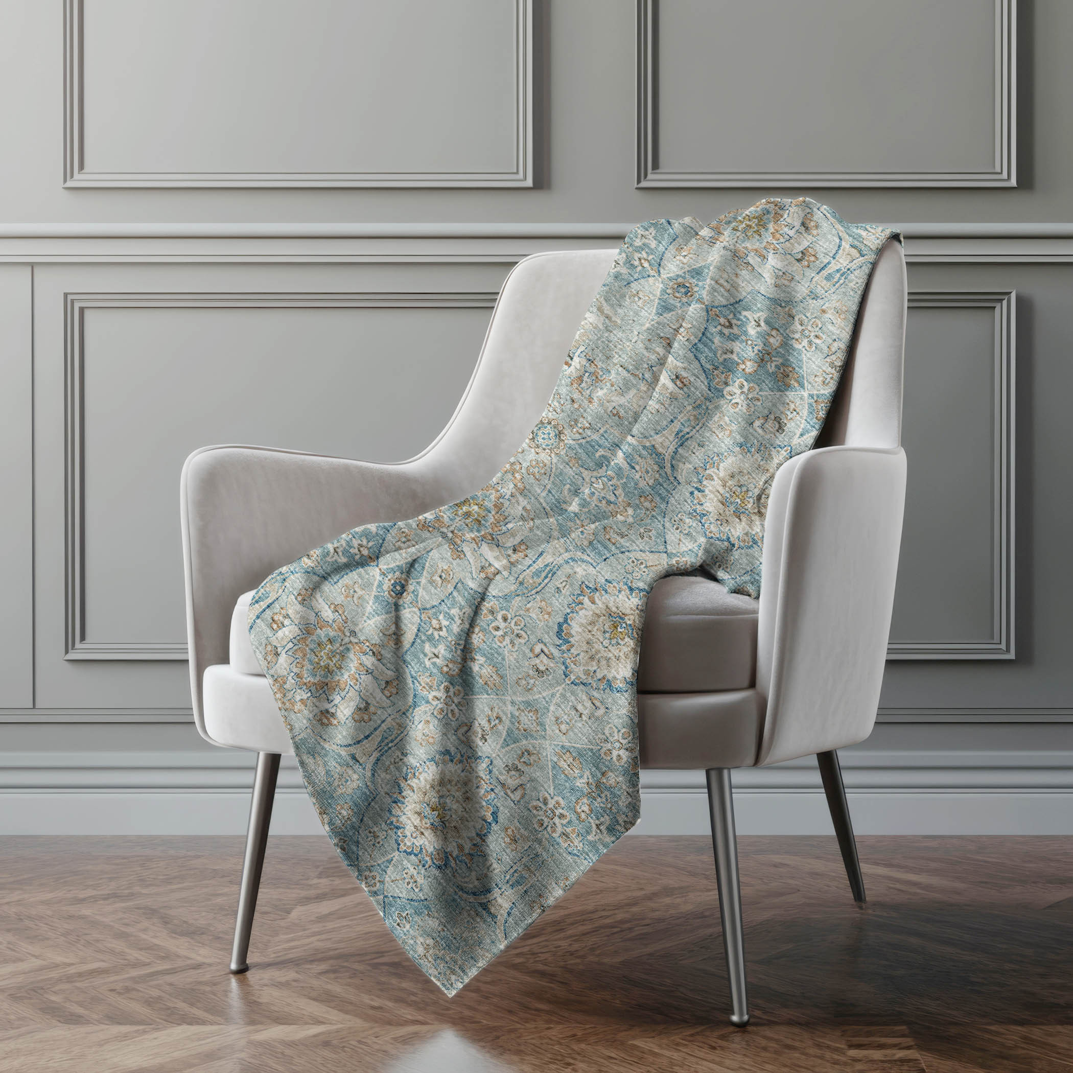 This 50-inch x 70-inch ivory coffee and teal damask polyester woven plush throw blanket is a stylish addition to any sofa. This ultra-soft plush blanket is designed for ultimate softness. Features a woven damask design that offers sumptuous softness and texture that you'll cherish for years to come. Made from polyester this blanket will make a great addition to any room it's added to. Layering your furnishings with a decorative throw has the ability to awaken a tired living room or elevate the design of your bedroom simply by providing elements of color and texture that weren't there before. This cozy throw blanket makes the perfect add-on to movie nights and lazy afternoons. 70.00-inch h x 50.00-inch w x 0.50-inch d.