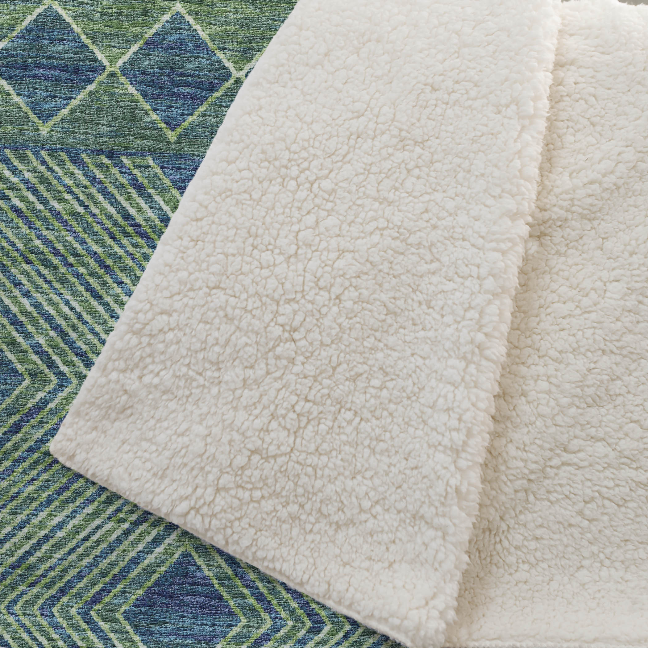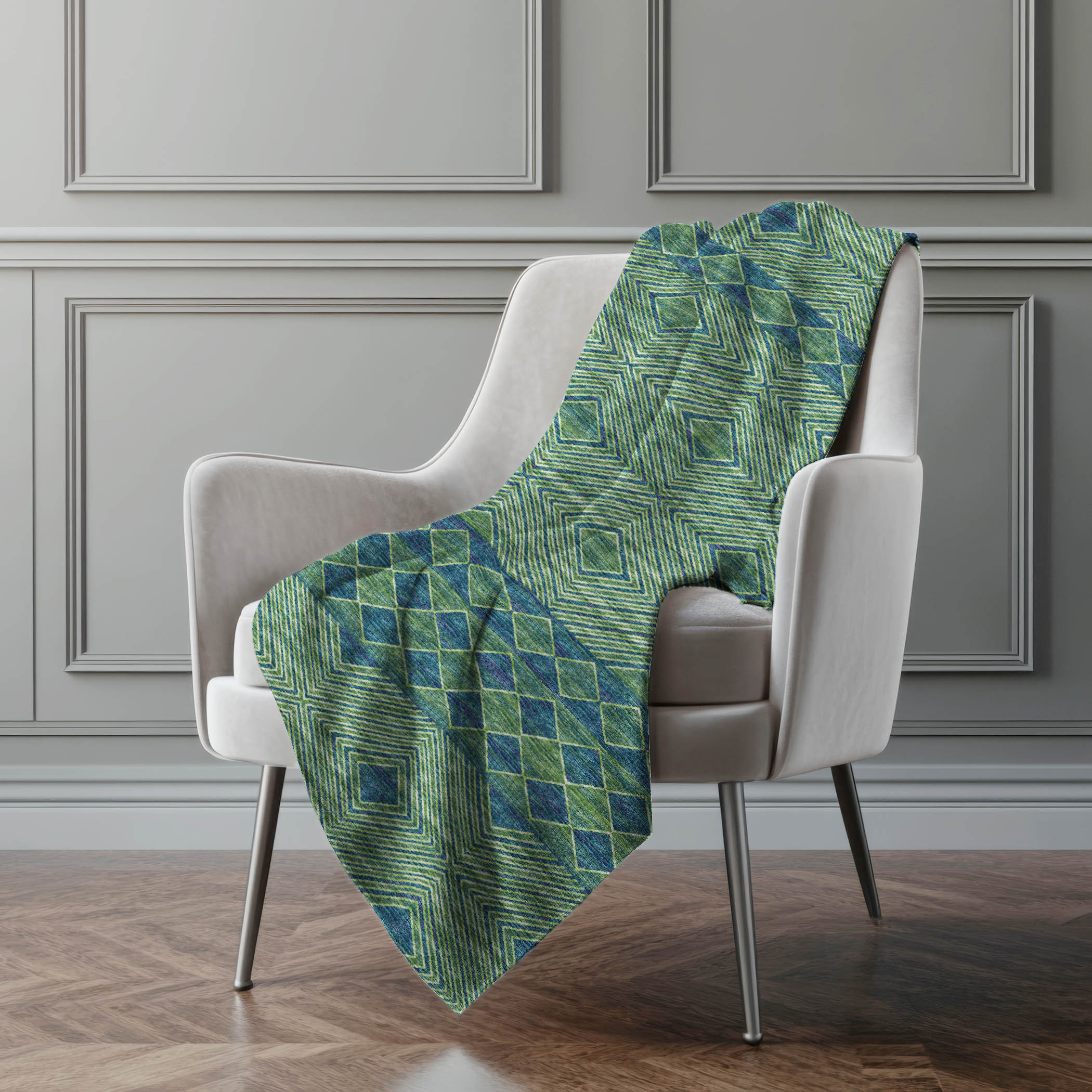 Bring warmth, comfort and style to your space with this 50-inch x 70-inch green and blue geometric polyester woven plush throw blanket. This ultra-soft plush blanket is designed for ultimate softness. Features a woven geometric design that offers sumptuous softness and texture that you'll cherish for years to come. Made from polyester this blanket will make a great addition to any room it's added to. Add extra texture to your decor and turn your room into an inviting space. This cozy throw blanket makes the perfect add-on to movie nights and lazy afternoons. 70.00-inch h x 50.00-inch w x 0.50-inch d.