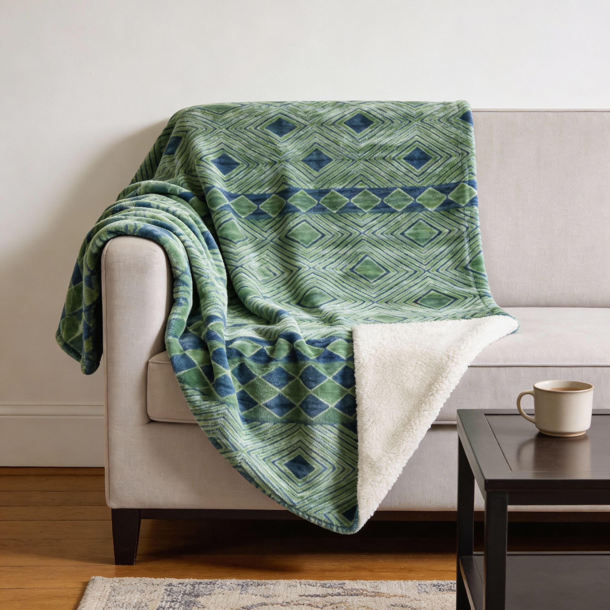 geometric microfiber plush throw blanket, microfiber plush throw blanket, plush throw blanket, green blue geometric microfiber plush, blue geometric microfiber plush throw |