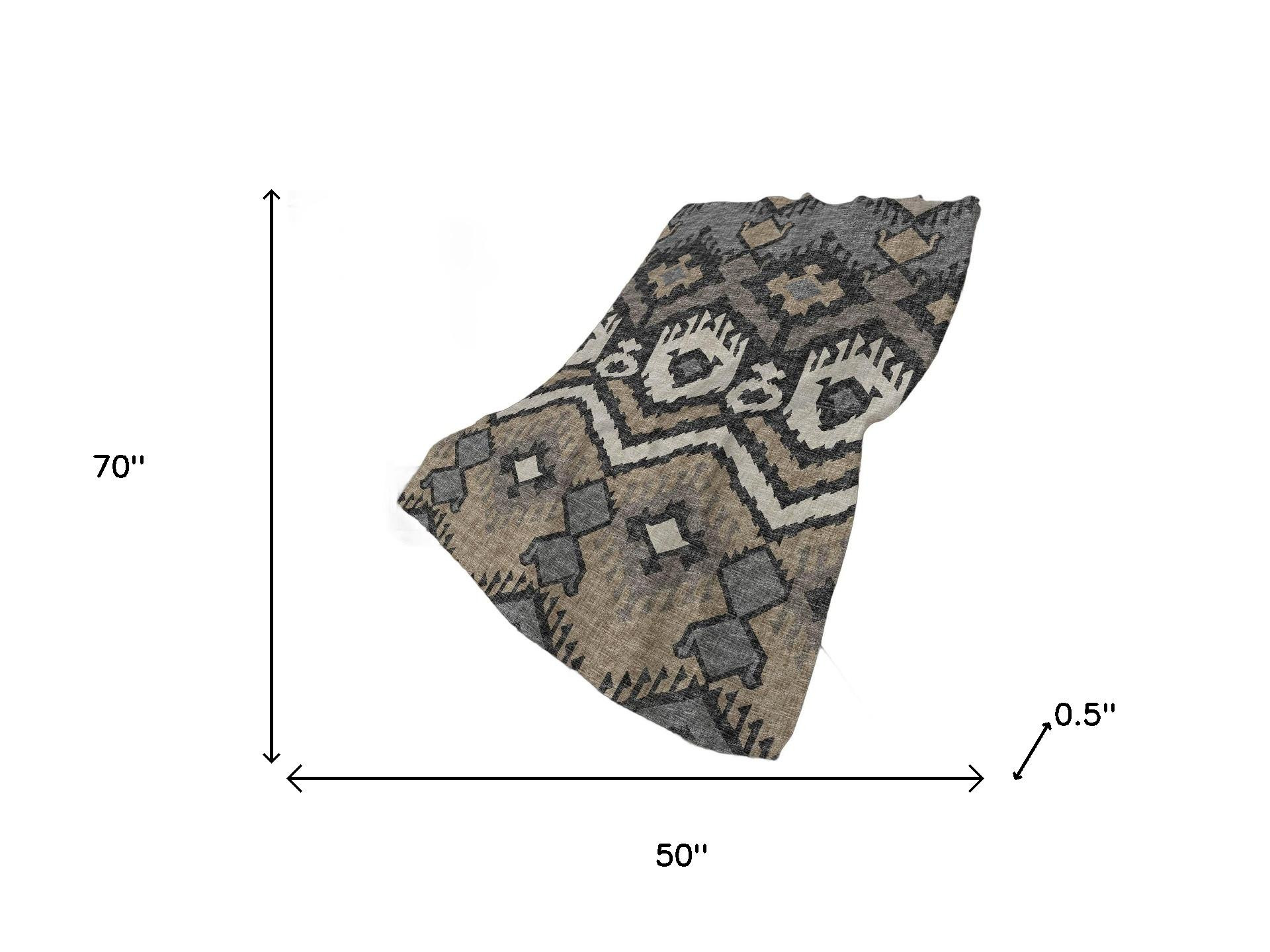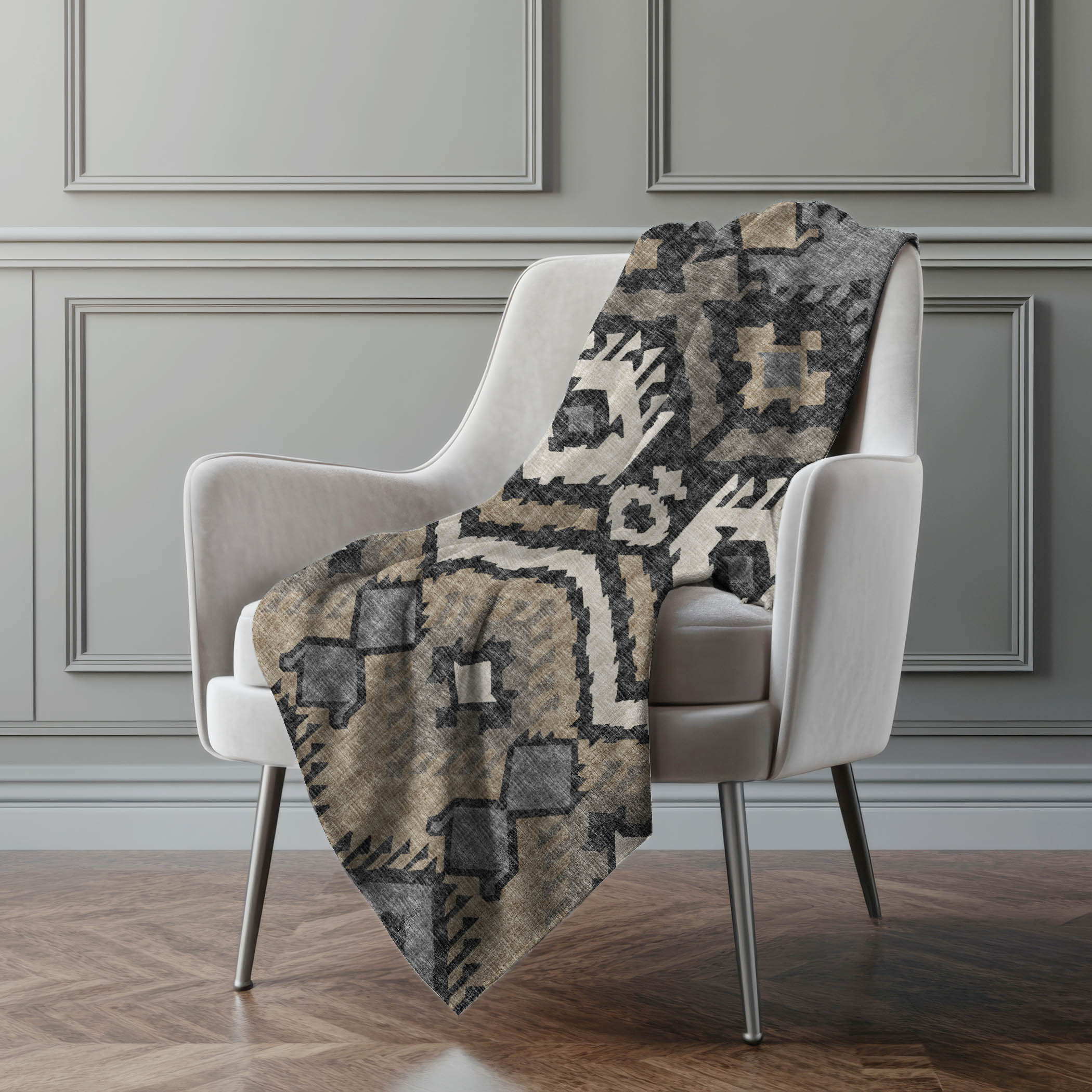 Bring warmth, comfort and style to your space with this 50-inch x 70-inch sand ivory and gray ikat polyester woven plush throw blanket. This plush throw is cozy soft beyond belief and oh-so-giftable. Features a woven ikat design that offers sumptuous softness and texture that you'll cherish for years to come. Made from polyester this blanket will make a great addition to any room it's added to. Layering your furnishings with a decorative throw has the ability to awaken a tired living room or elevate the design of your bedroom simply by providing elements of color and texture that weren't there before. This cozy throw blanket is sure to become your go-to couch companion. 70.00-inch h x 50.00-inch w x 0.50-inch d.