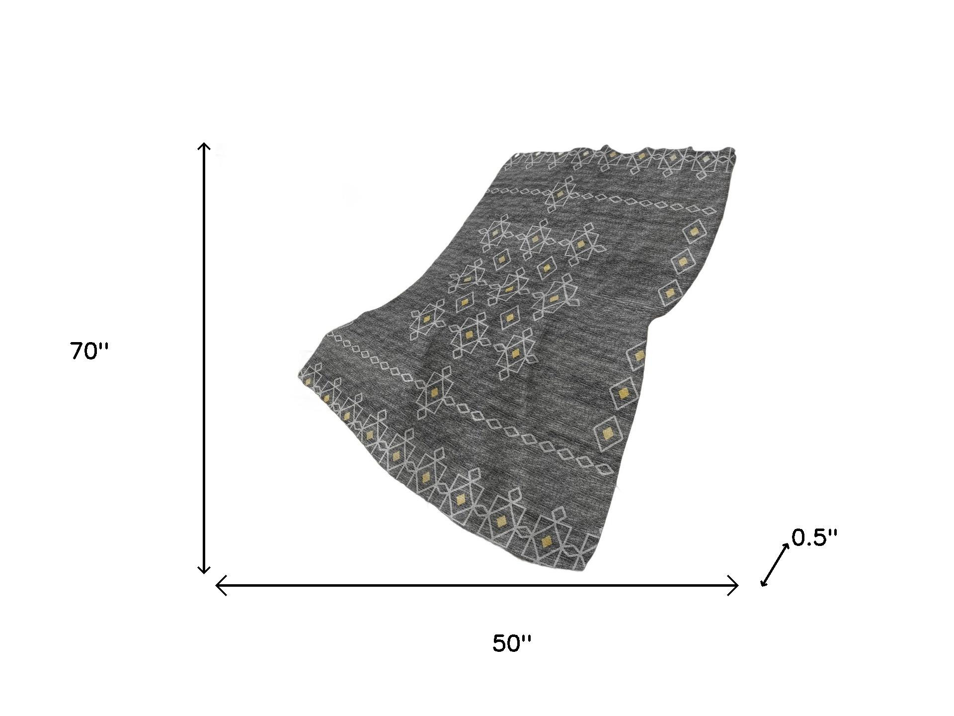 This 50-inch x 70-inch gray and gold geometric polyester woven plush throw blanket is the perfect accent you've been searching for. This plush throw is cozy soft beyond belief and oh-so-giftable. Features a woven geometric design that offers sumptuous softness and texture that you'll cherish for years to come. Made from polyester this blanket will make a great addition to any room it's added to. Layering your furnishings with a decorative throw has the ability to awaken a tired living room or elevate the design of your bedroom simply by providing elements of color and texture that weren't there before. Perfect for your favorite chair, bed or lounging on the couch, this blanket helps bring a warm and fashionable flair to your space. 70.00-inch h x 50.00-inch w x 0.50-inch d.