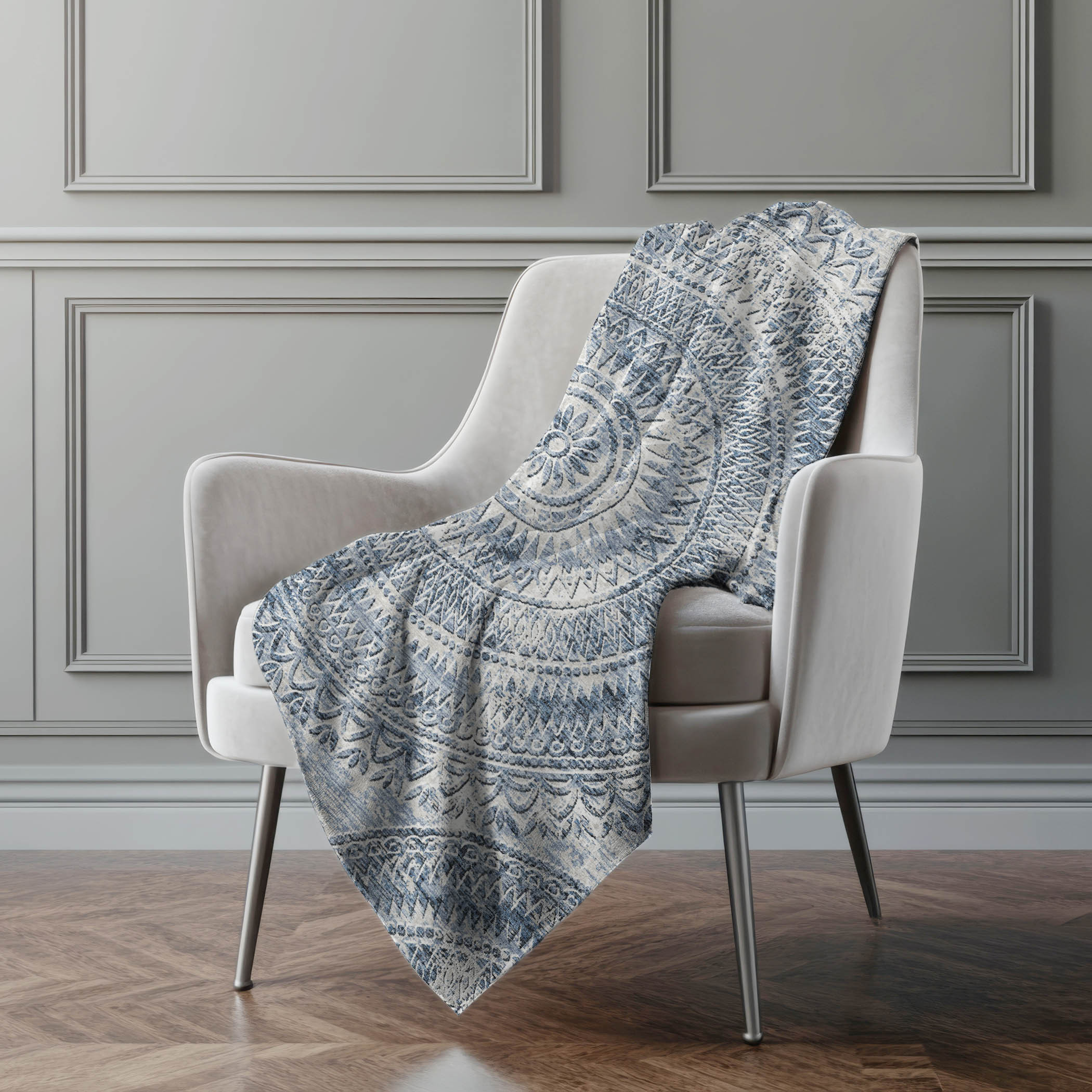 This 50-inch x 70-inch blue and ivory floral polyester woven plush throw blanket is the perfect accent you've been searching for. This ultra-soft plush blanket is designed for ultimate softness. Features a woven floral design that offers sumptuous softness and texture that you'll cherish for years to come. Made from polyester this blanket will make a great addition to any room it's added to. Add extra texture to your decor and turn your room into an inviting space. Perfect for your favorite chair, bed or lounging on the couch, this blanket helps bring a warm and fashionable flair to your space. 70.00-inch h x 50.00-inch w x 0.50-inch d.
