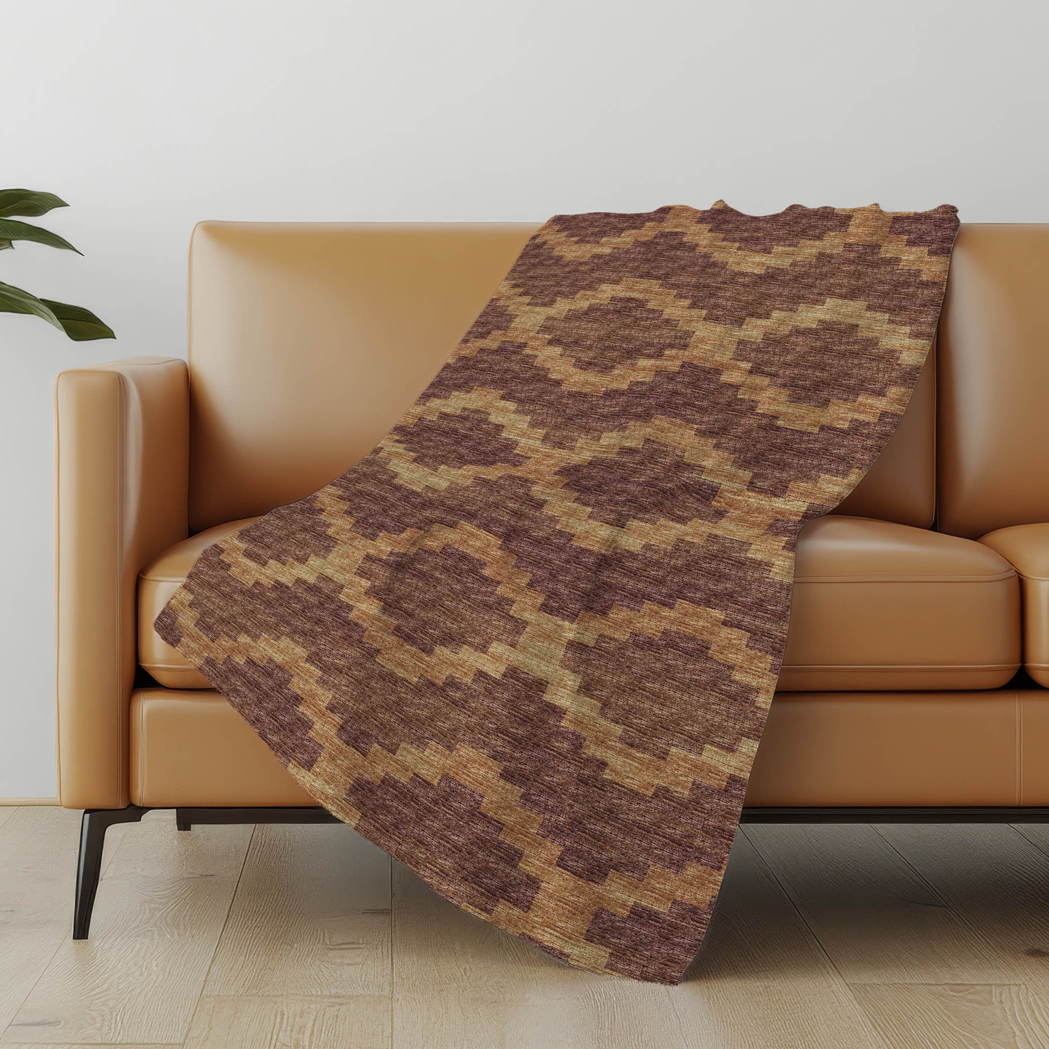 Bring warmth, comfort and style to your space with this 50-inch x 70-inch rust and gold geometric polyester woven plush throw blanket. This ultra-soft plush blanket is designed for ultimate softness. Features a woven geometric design that offers sumptuous softness and texture that you'll cherish for years to come. Made from polyester this blanket will make a great addition to any room it's added to. Add extra texture to your decor and turn your room into an inviting space. This cozy throw blanket makes the perfect add-on to movie nights and lazy afternoons. 70.00-inch h x 50.00-inch w x 0.50-inch d.