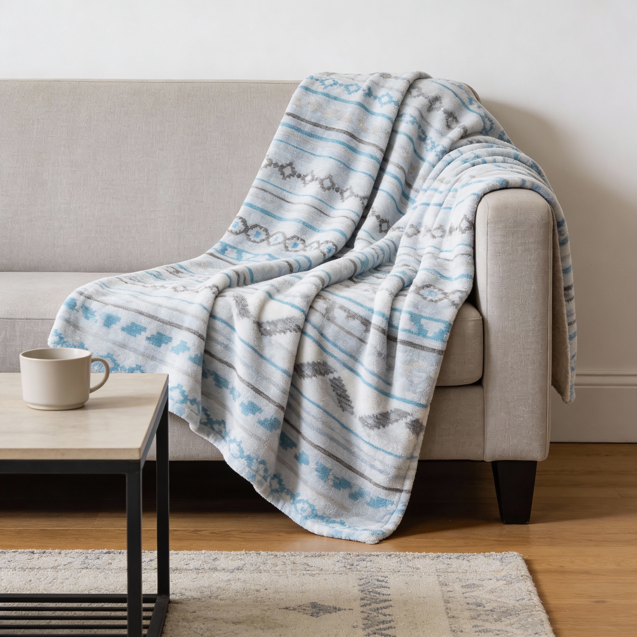 geometric microfiber plush throw blanket, microfiber plush throw blanket, turquoise gray geometric microfiber plush, plush throw blanket, gray geometric microfiber plush throw |