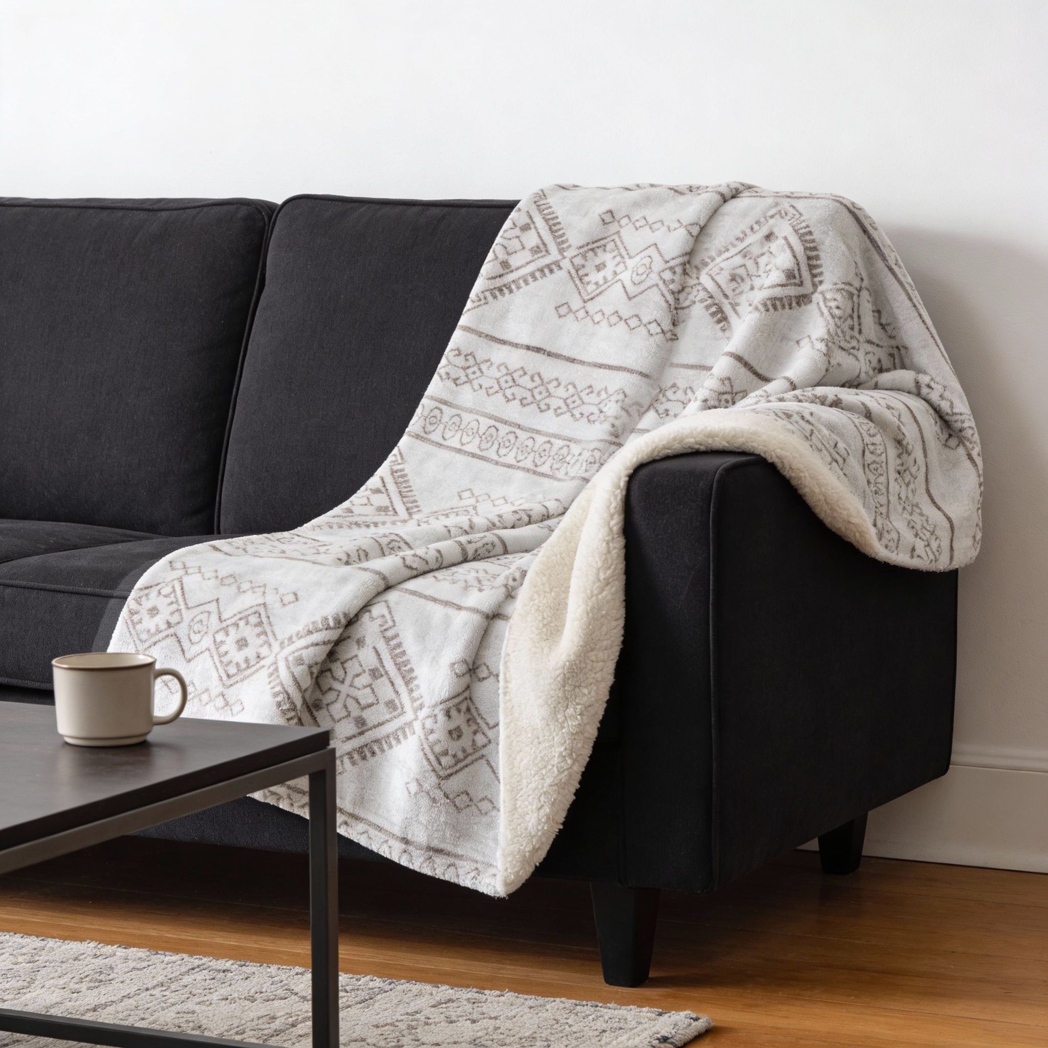 geometric microfiber plush throw blanket, microfiber plush throw blanket, plush throw blanket, ivory geometric microfiber plush throw, taupe ivory geometric microfiber plush |