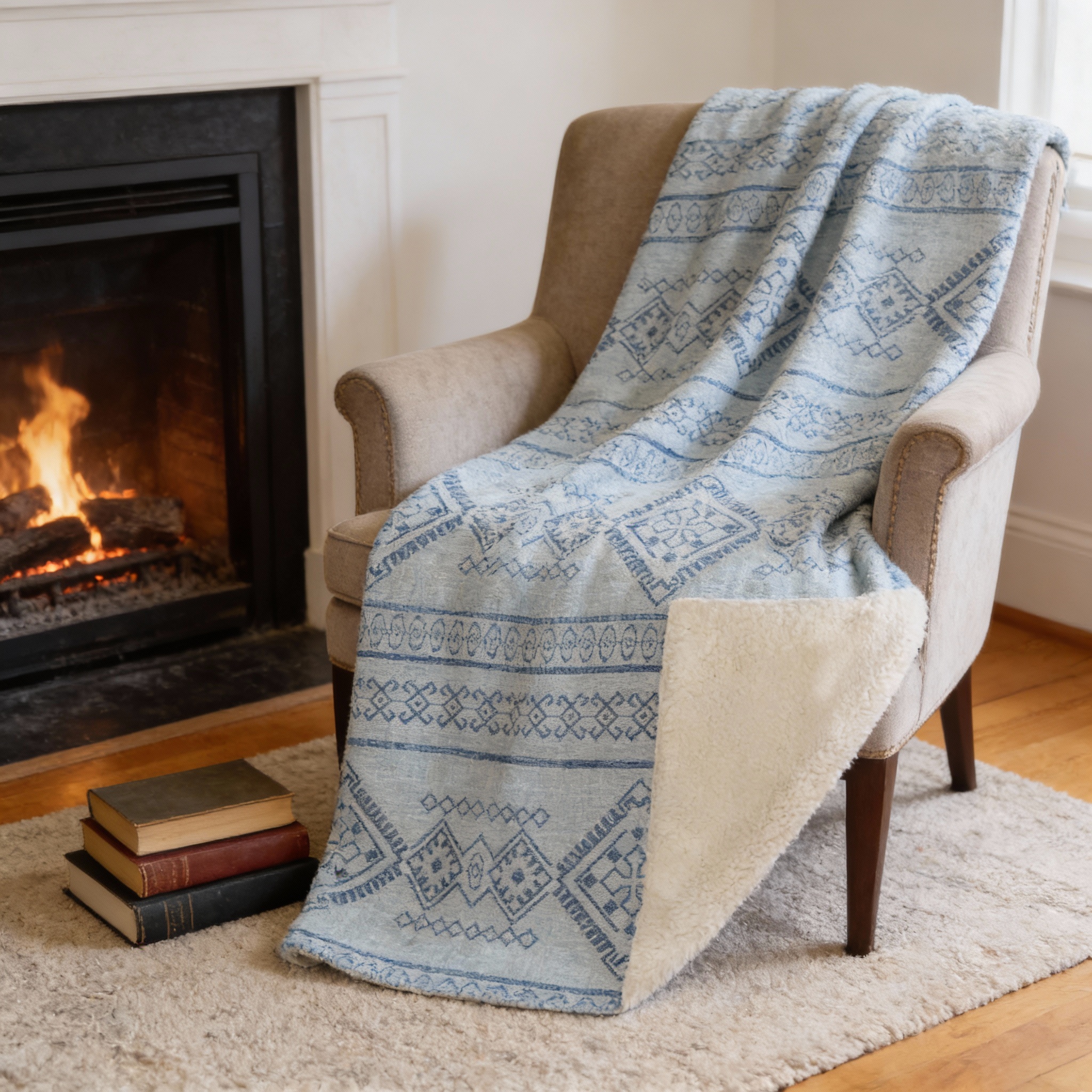 geometric microfiber plush throw blanket, microfiber plush throw blanket, light blue geometric microfiber plush, blue geometric microfiber plush throw, plush throw blanket |