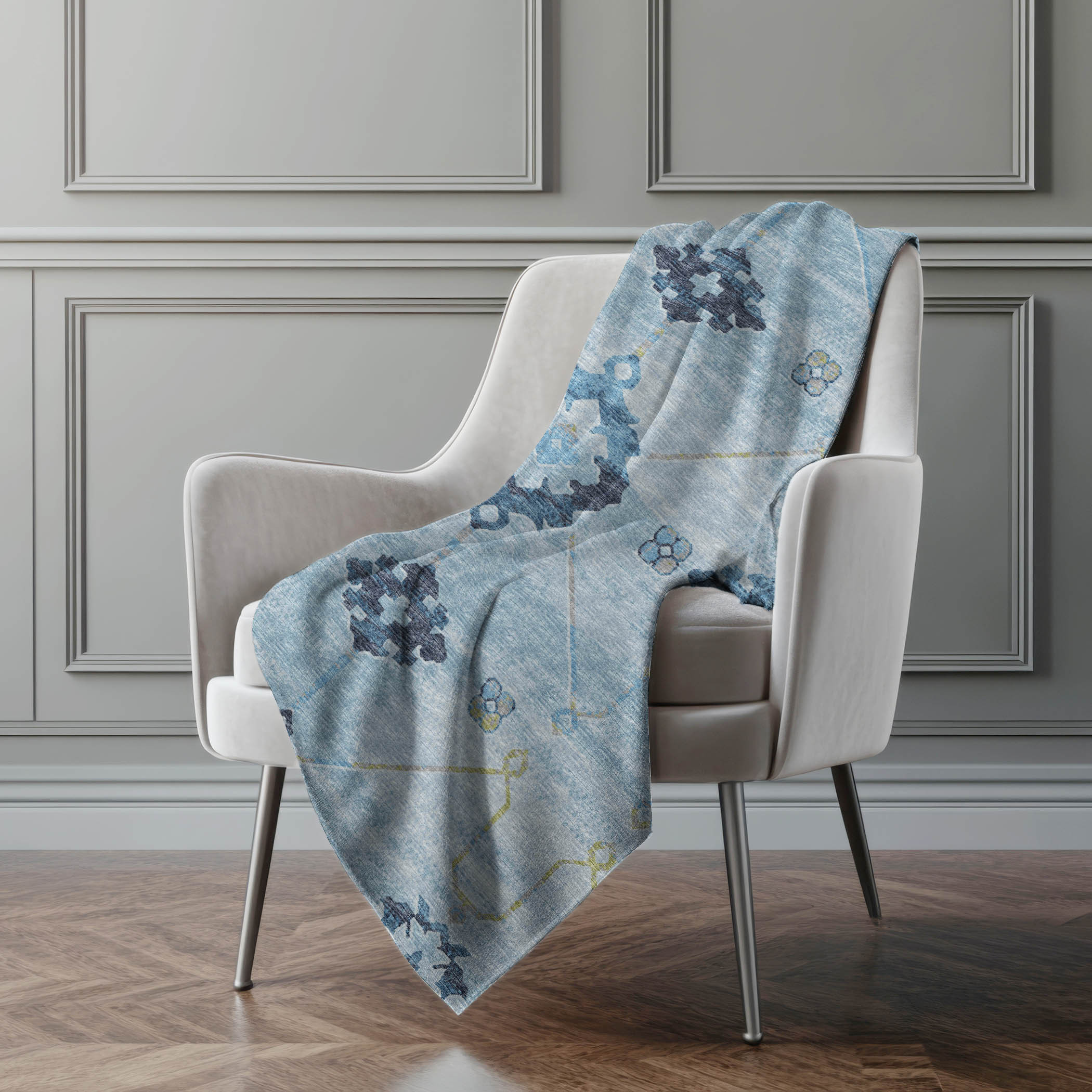 This 50-inch x 70-inch blue and light blue floral polyester woven plush throw blanket is the perfect accent you've been searching for. This ultra-soft plush blanket is designed for ultimate softness. Features a woven floral design that offers sumptuous softness and texture that you'll cherish for years to come. Made from polyester this blanket will make a great addition to any room it's added to. Add extra texture to your decor and turn your room into an inviting space. Perfect for your favorite chair, bed or lounging on the couch, this blanket helps bring a warm and fashionable flair to your space. 70.00-inch h x 50.00-inch w x 0.50-inch d.