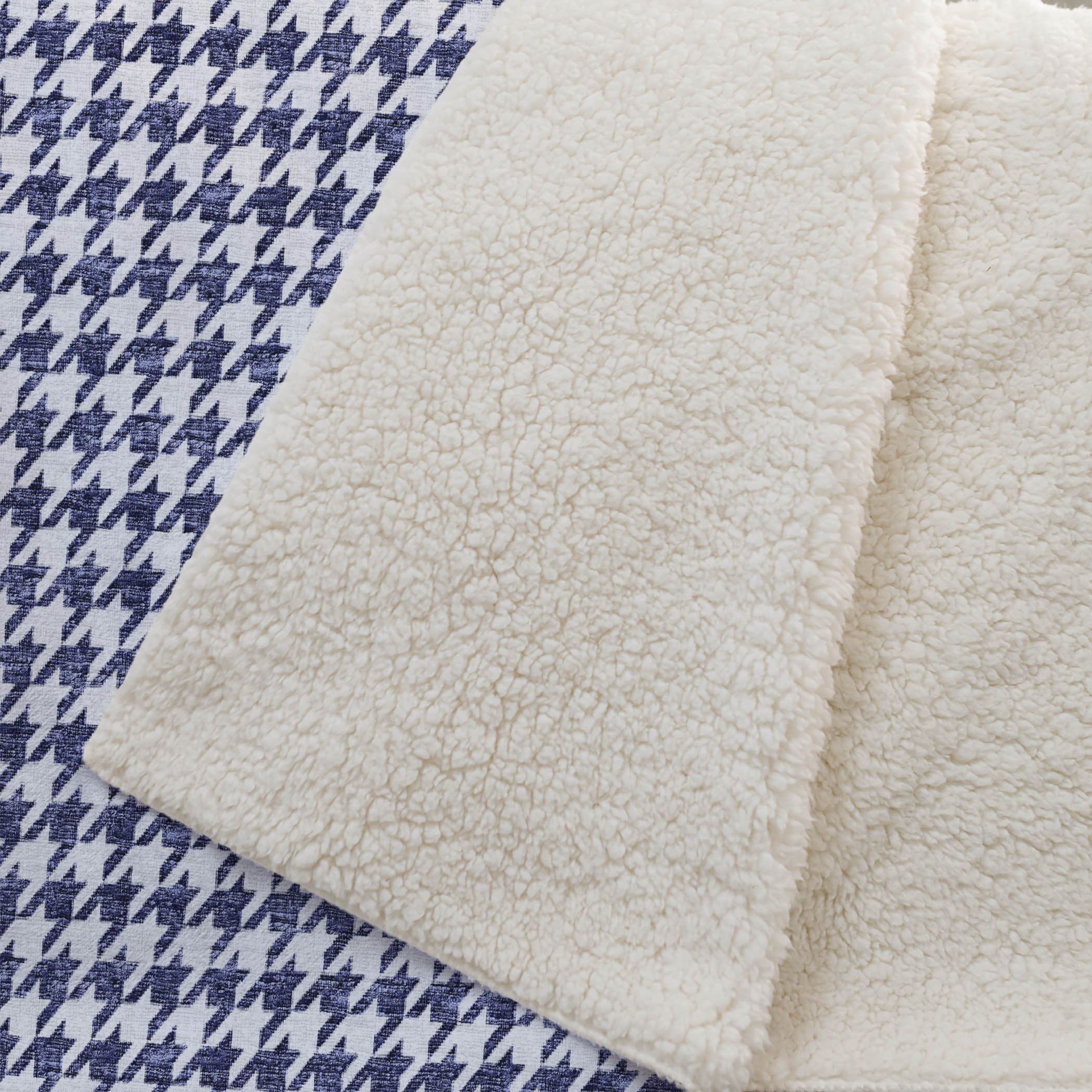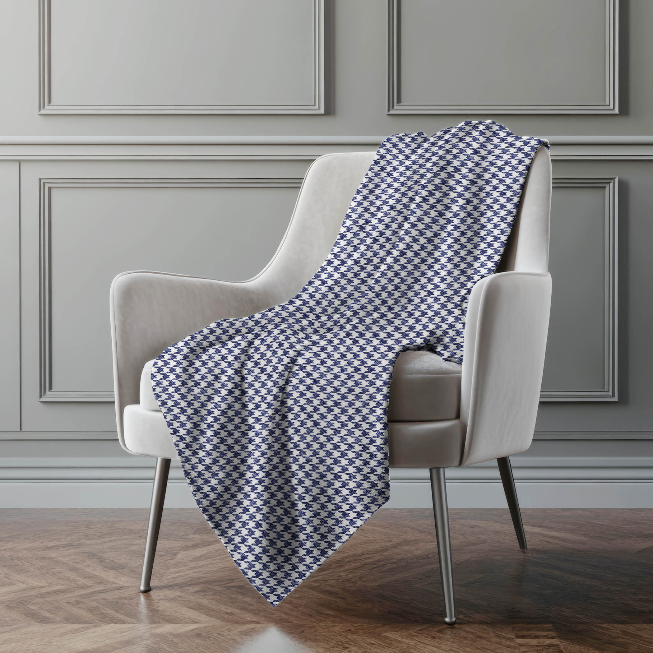 Whether you're curling up for movie night or you need an extra layer of warmth as you drift off to sleep, this 50-inch x 70-inch navy blue and white houndstooth polyester woven plush throw blanket is the perfect solution. This plush throw is cozy soft beyond belief and oh-so-giftable. Features a woven houndstooth design that offers sumptuous softness and texture that you'll cherish for years to come. Made from polyester this blanket will make a great addition to any room it's added to. Add extra texture to your decor and turn your room into an inviting space. Perfect for your favorite chair, bed or lounging on the couch, this blanket helps bring a warm and fashionable flair to your space. 70.00-inch h x 50.00-inch w x 0.50-inch d.