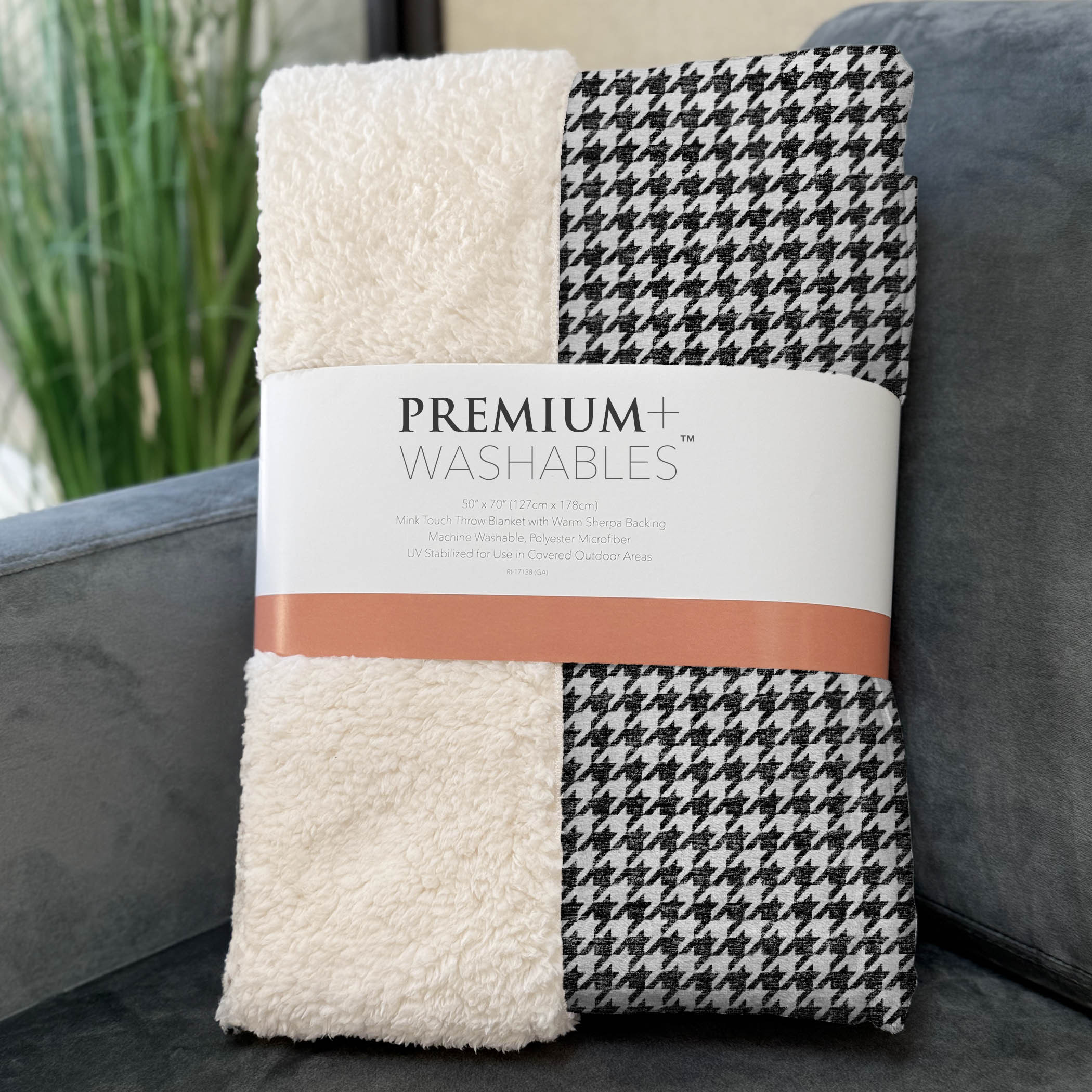 This 50-inch x 70-inch black and white houndstooth polyester woven plush throw blanket brings a classic, refined style to your space. This plush throw is cozy soft beyond belief and oh-so-giftable. Features a woven houndstooth design that offers sumptuous softness and texture that you'll cherish for years to come. Made from polyester this blanket will make a great addition to any room it's added to. Add extra texture to your decor and turn your room into an inviting space. This cozy throw blanket is sure to become your go-to couch companion. 70.00-inch h x 50.00-inch w x 0.50-inch d.