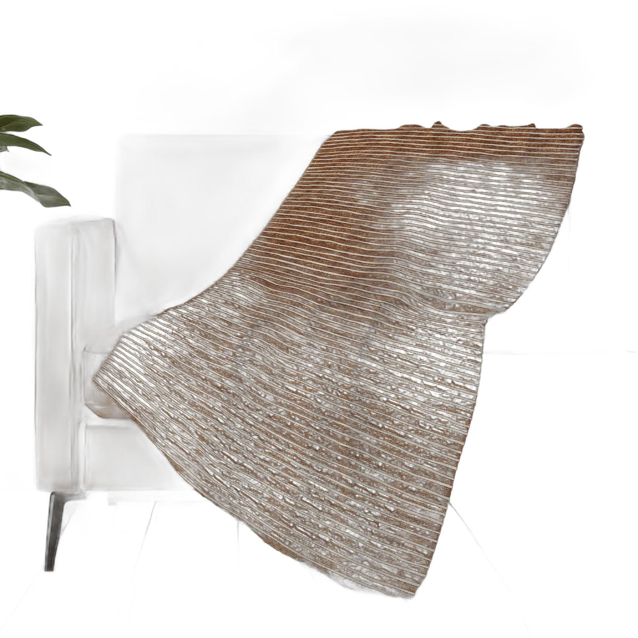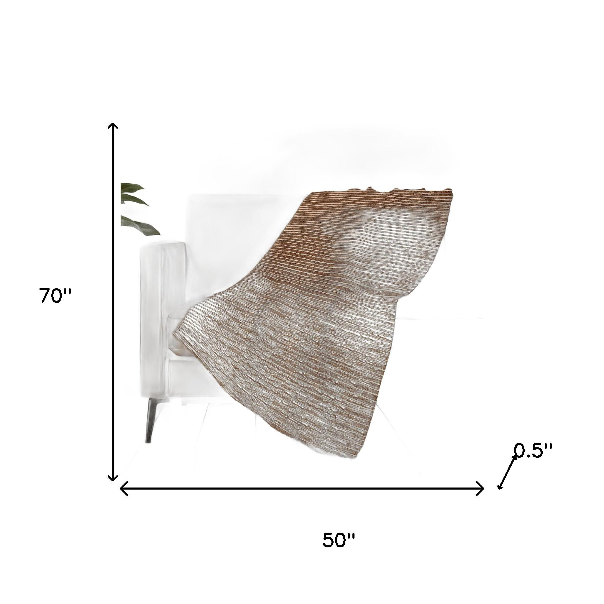 This 50-inch x 70-inch rust and beige striped polyester woven plush throw blanket is the best (and most stylish) way to wrap you and your loved ones in the epitome of cozy all year long. This plush throw is cozy soft beyond belief and oh-so-giftable. Features a woven striped design that offers sumptuous softness and texture that you'll cherish for years to come. Made from polyester this blanket will make a great addition to any room it's added to. Layering your furnishings with a decorative throw has the ability to awaken a tired living room or elevate the design of your bedroom simply by providing elements of color and texture that weren't there before. Perfect for your favorite chair, bed or lounging on the couch, this blanket helps bring a warm and fashionable flair to your space. 70.00-inch h x 50.00-inch w x 0.50-inch d.