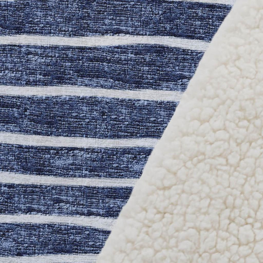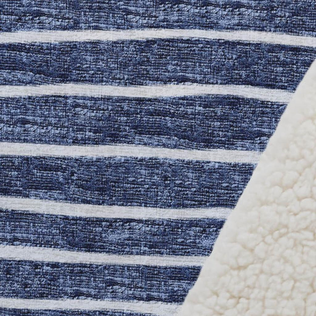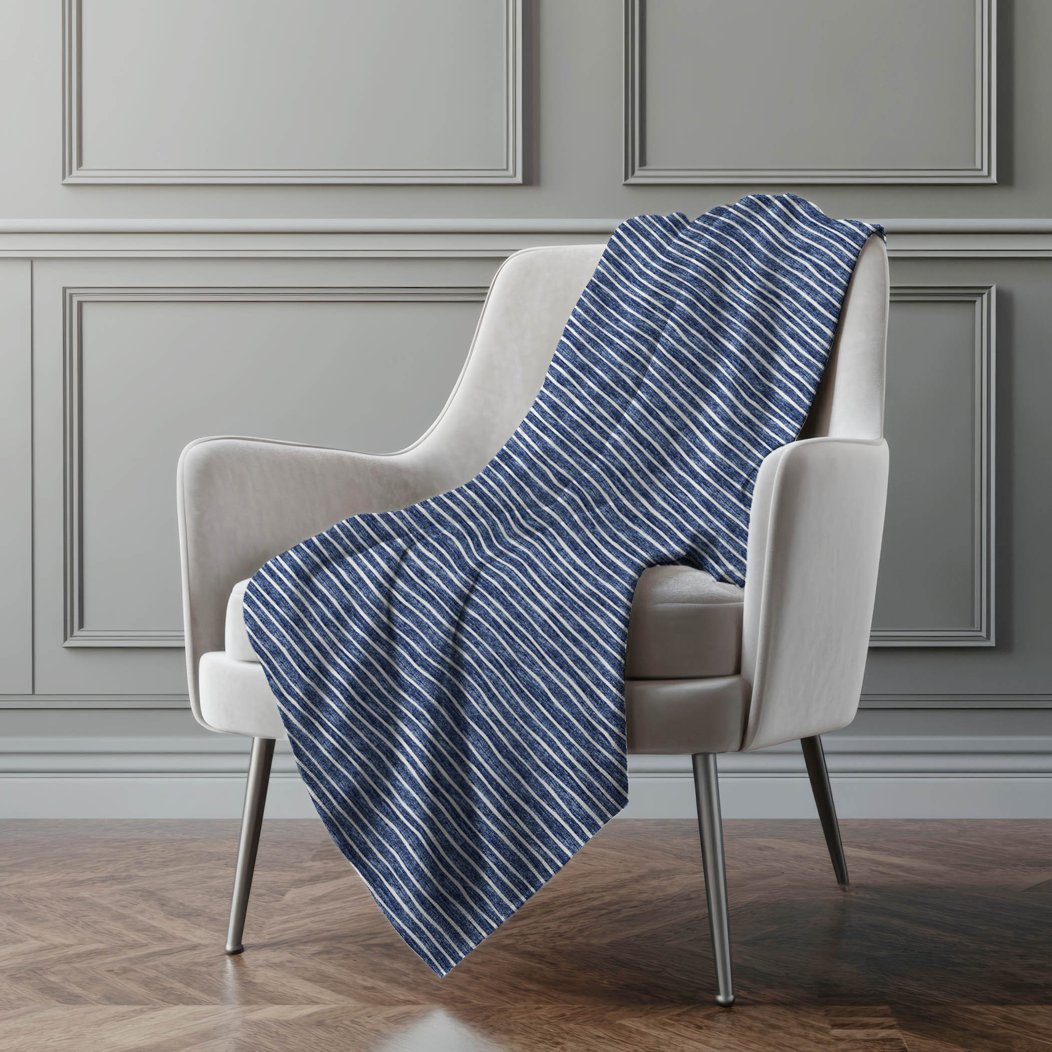 This 50-inch x 70-inch navy blue and ivory striped polyester woven plush throw blanket is an essential for any cozy abode. This ultra-soft plush blanket is designed for ultimate softness. Features a woven striped design that offers sumptuous softness and texture that you'll cherish for years to come. Made from polyester this blanket will make a great addition to any room it's added to. Add extra texture to your decor and turn your room into an inviting space. This cozy throw blanket makes the perfect add-on to movie nights and lazy afternoons. 70.00-inch h x 50.00-inch w x 0.50-inch d.